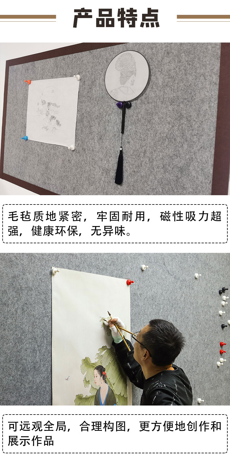 毛毡墙 桔舍书画磁性毛毡墙强磁吸磁书画毛毡墙贴宣纸国画书法作品展示教学墙贴固定加强磁力书画毛毡墙