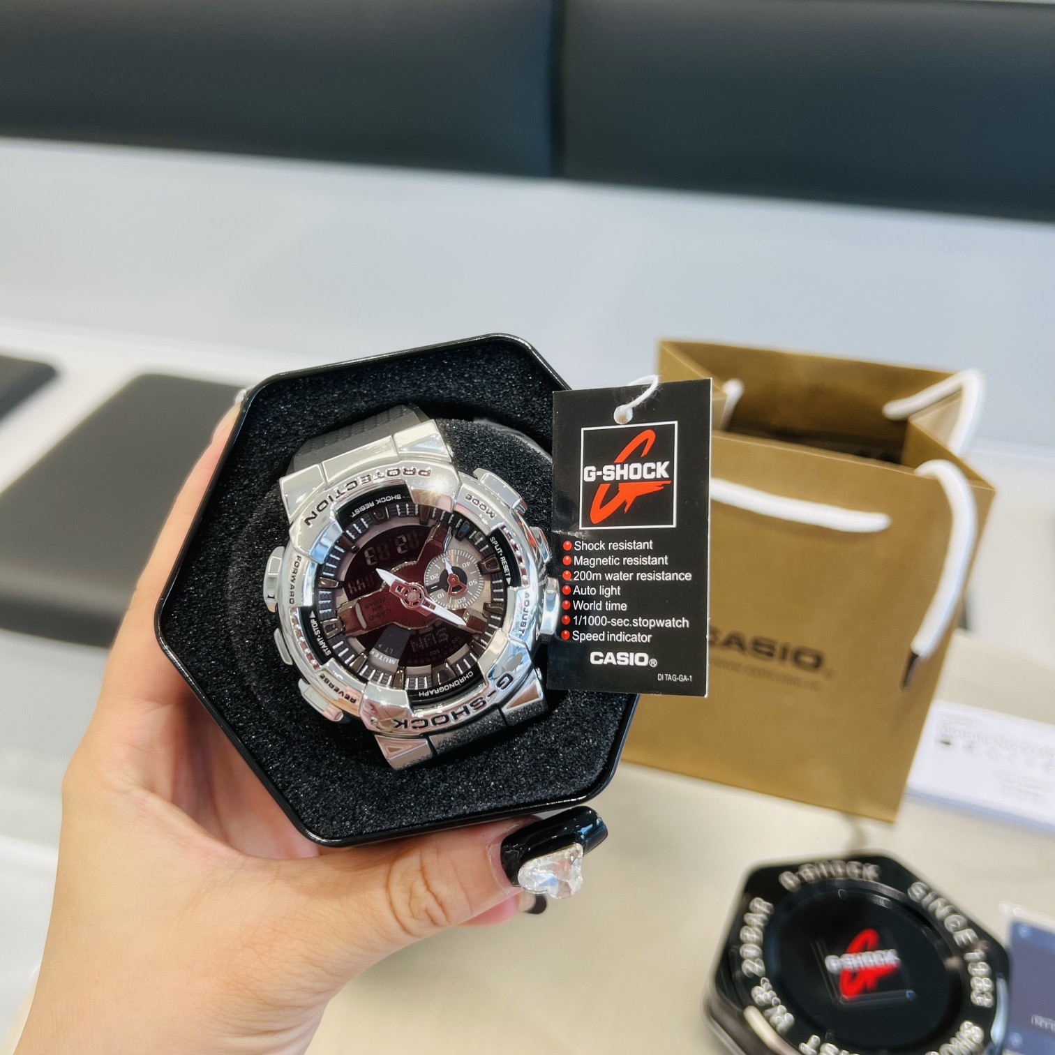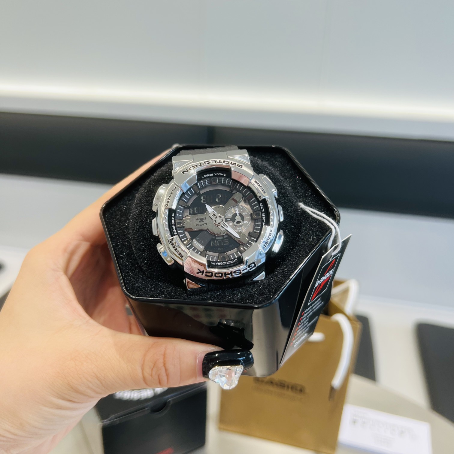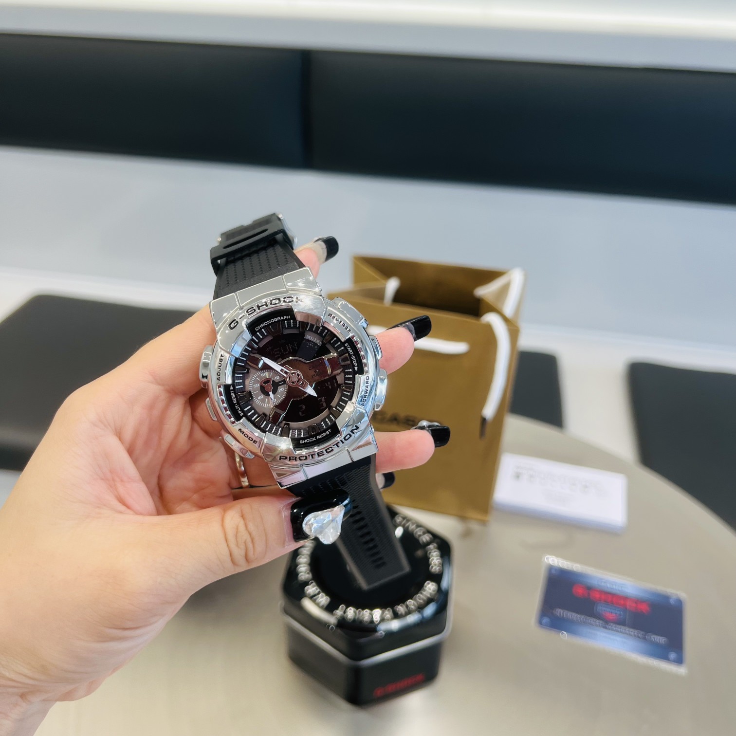 CASIO卡西欧G-SHOCK 系列金属表头防水运动小钢炮手表,王一博同款GM-110金属战甲系列运动潮流小钢炮手表 情侣款