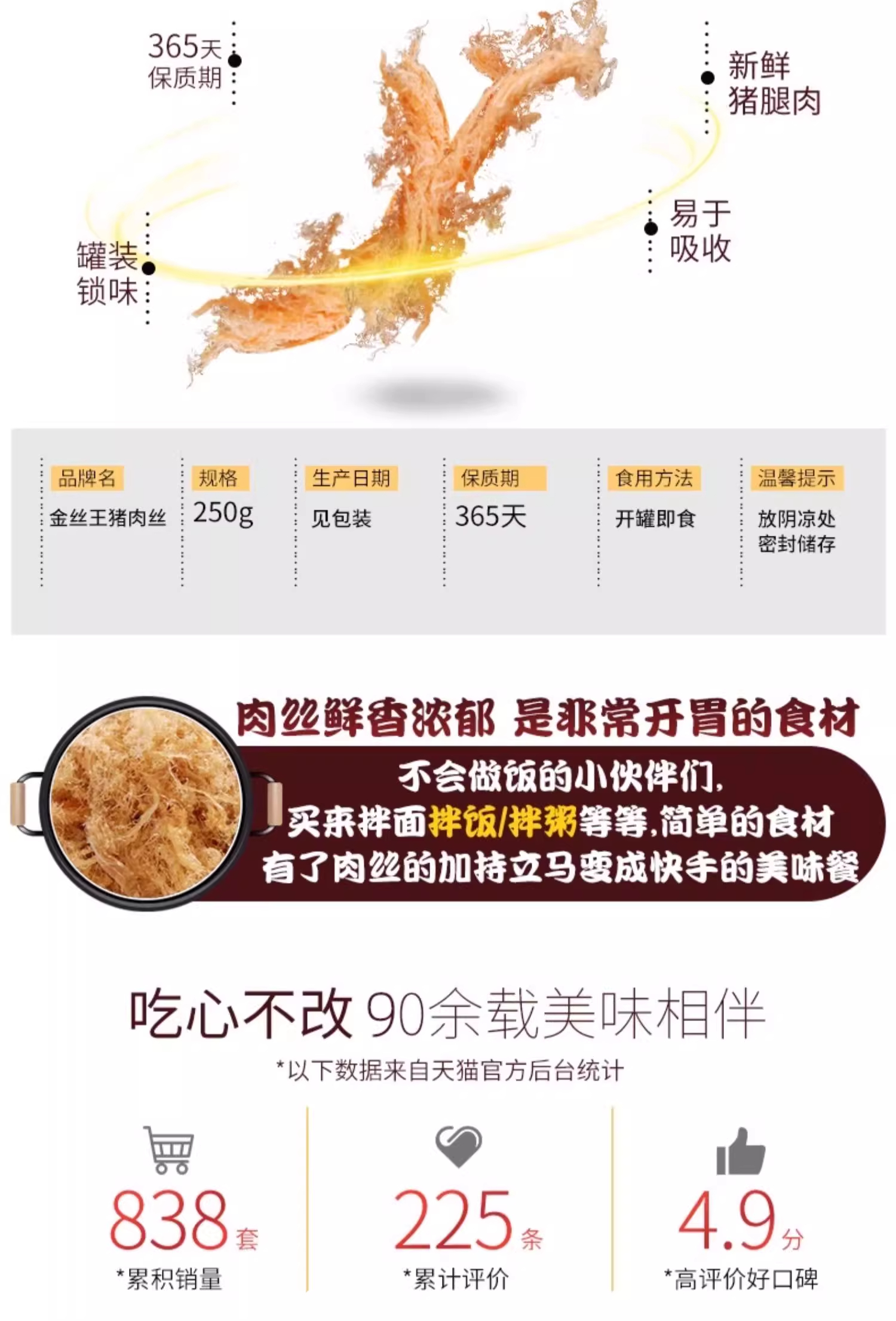 美珍香金丝王(猪肉丝)250g保留肉质纤维有嚼劲佐餐拌粥寿司零食