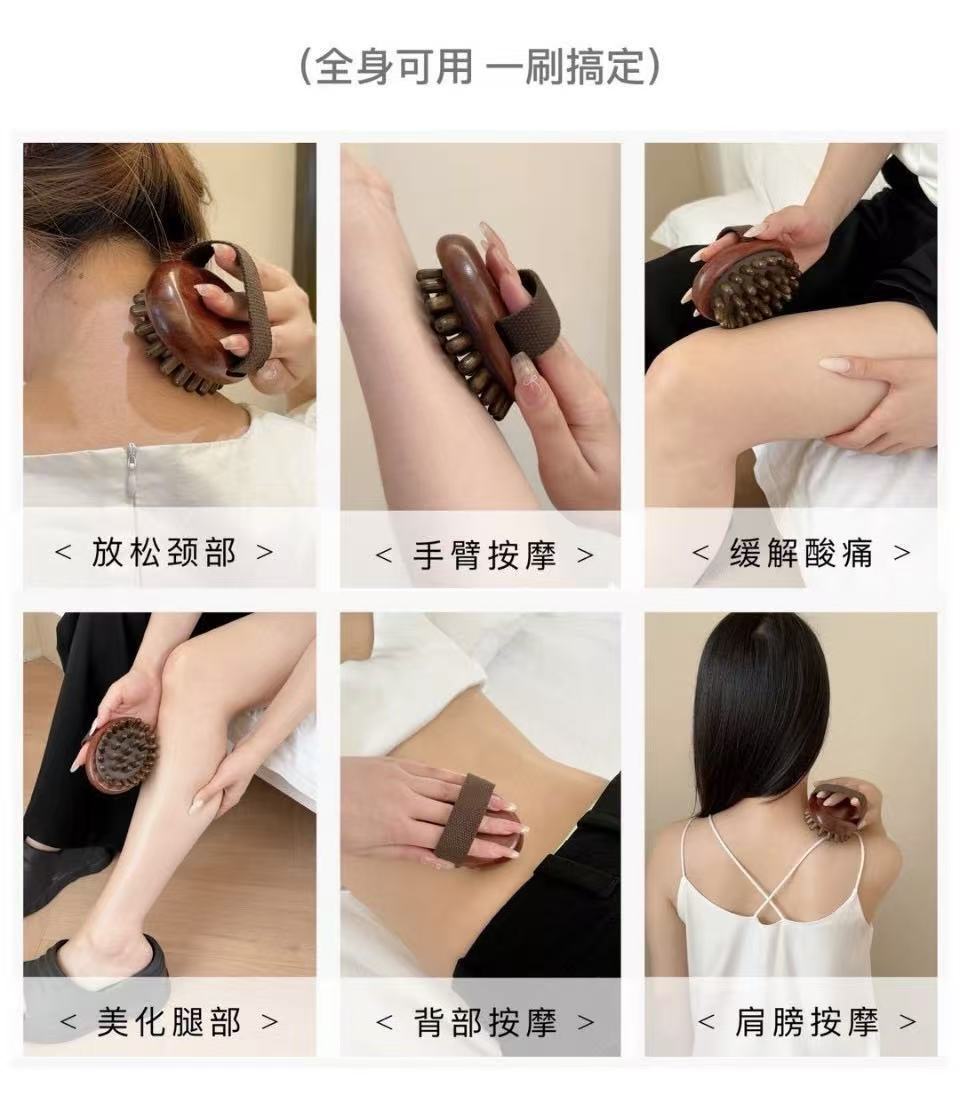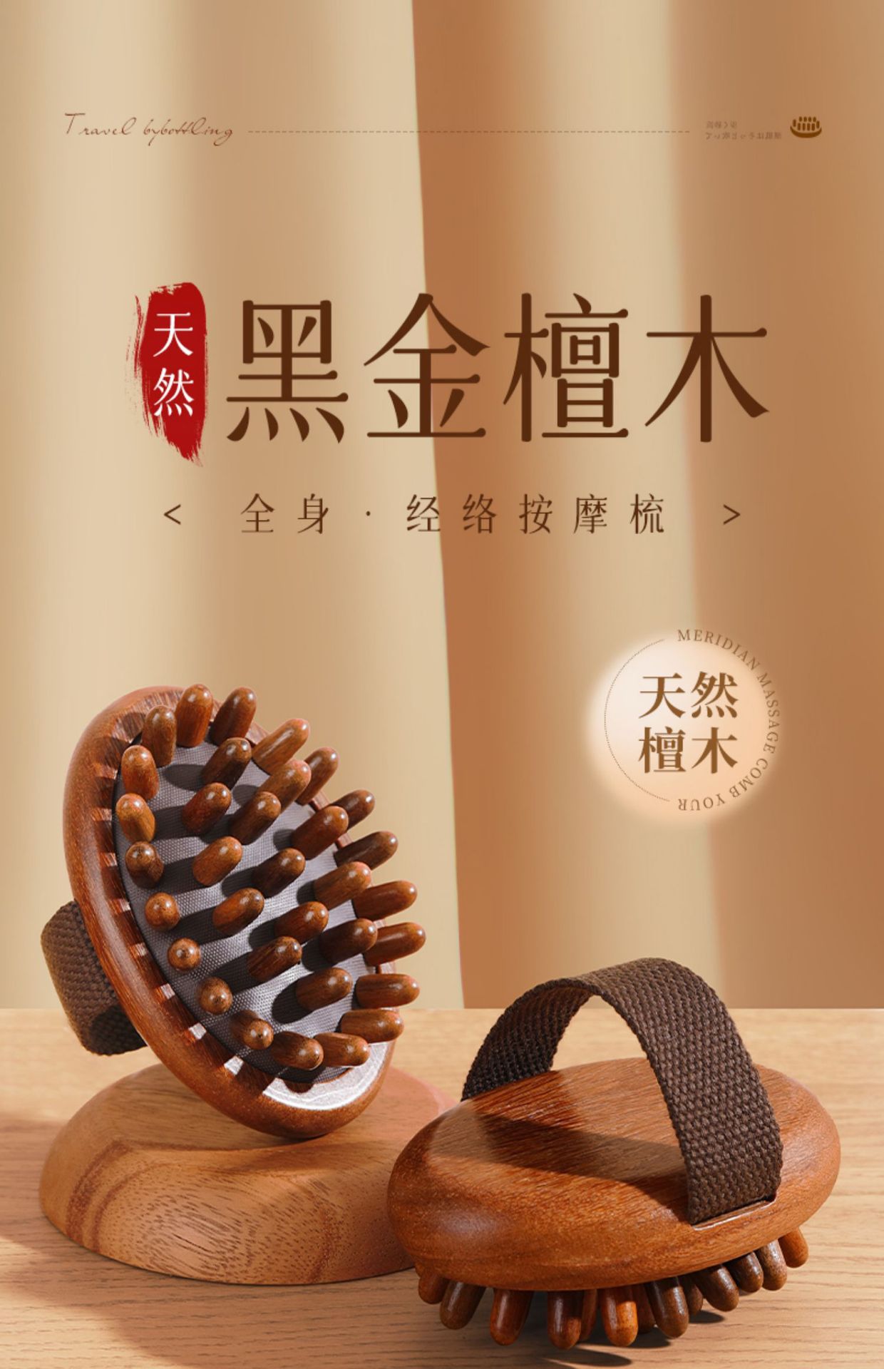 黑金檀木经络按摩刷,气囊设计,缓冲放松缓解肌肉酸痛,按摩促进代谢,疏通淤堵,久坐/疲劳全身放松可用,赠精油*2