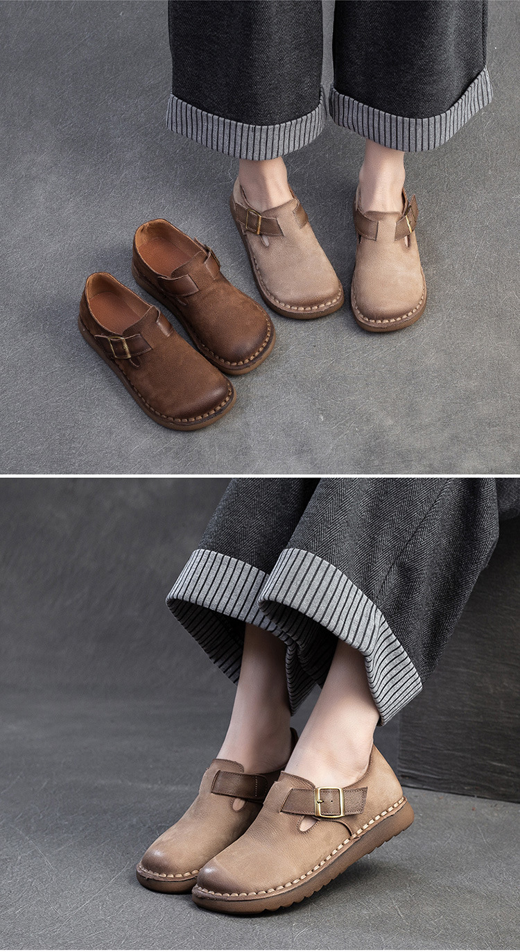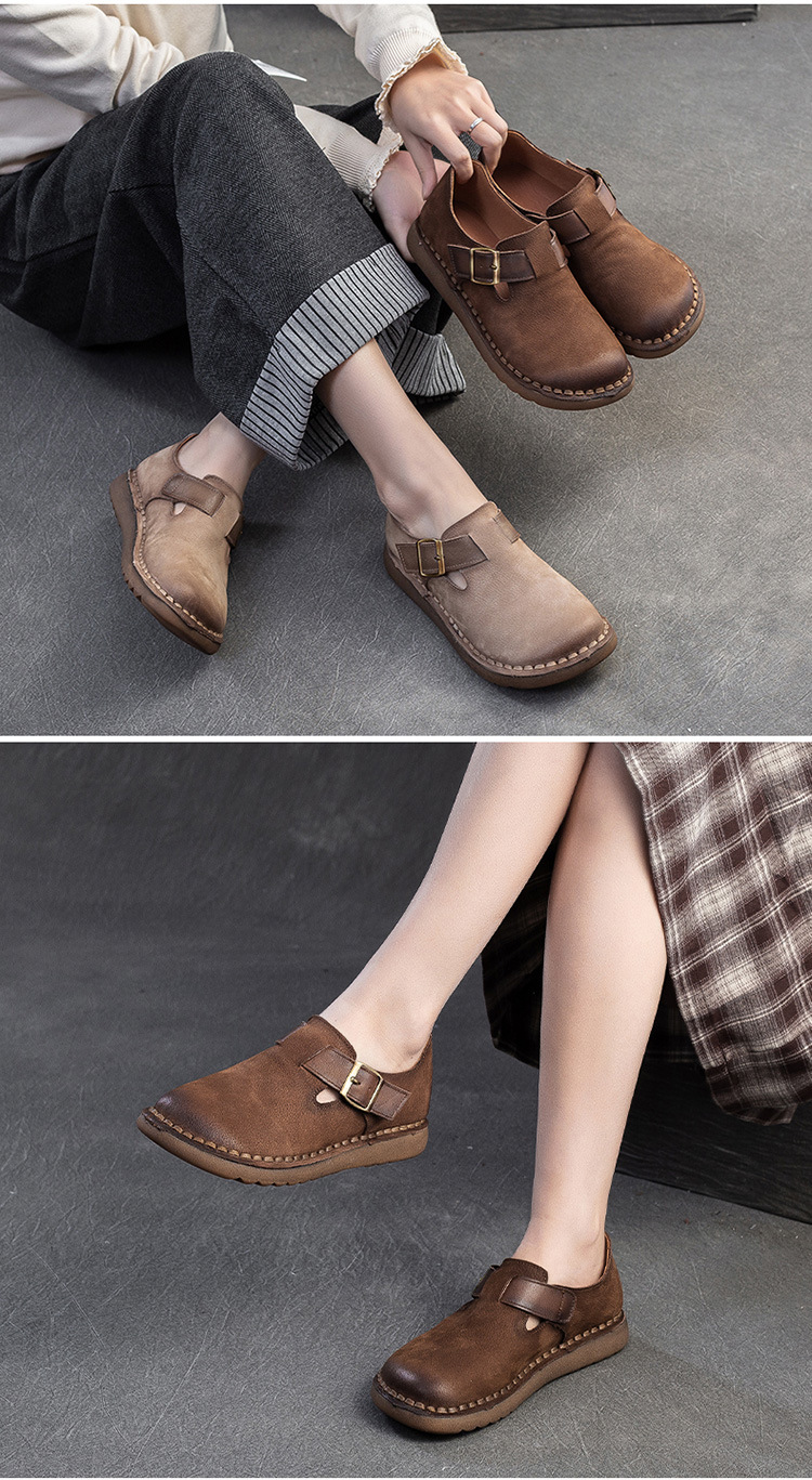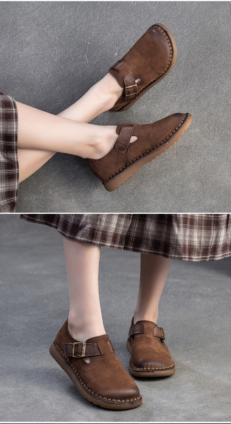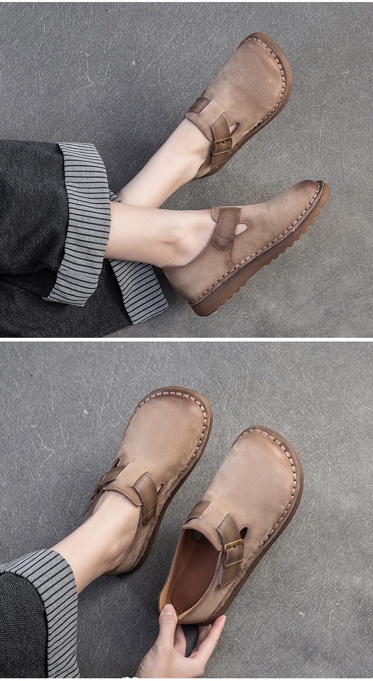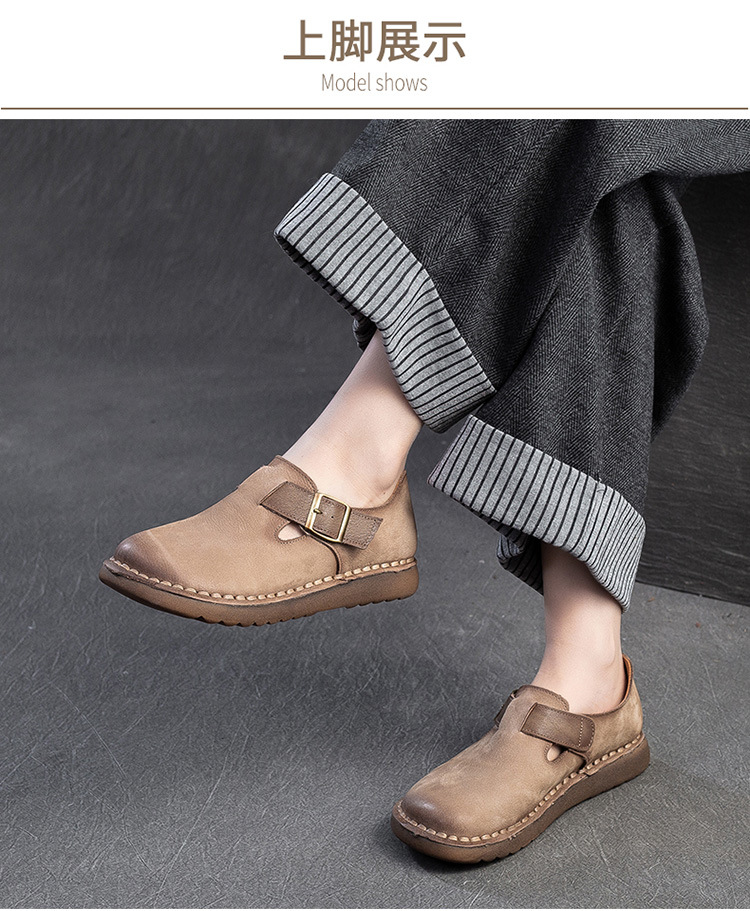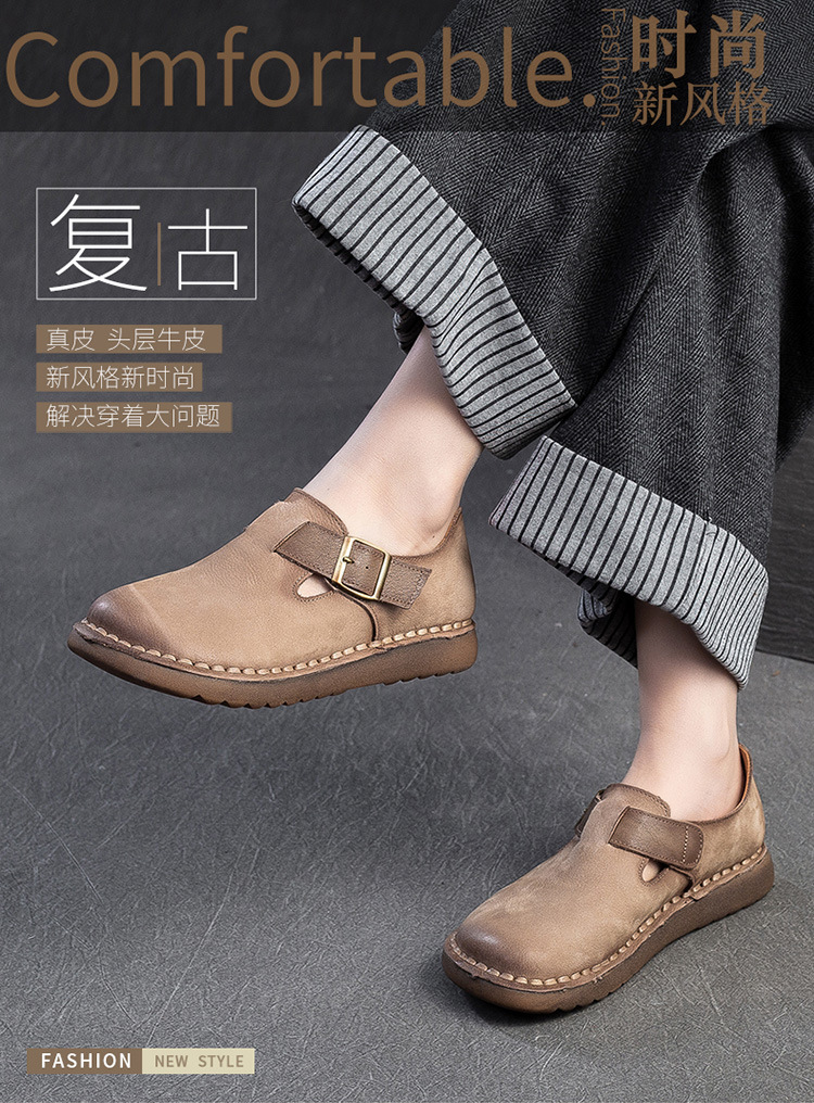 JZ9686 2025春夏新款软面英伦风勃肯单鞋车缝线韩版舒适头层牛皮女鞋