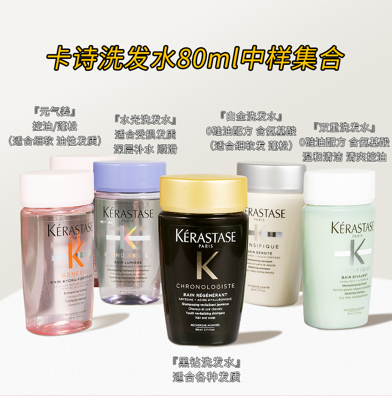 价值160 2瓶装 卡诗洗发水80ml 国内专柜中样