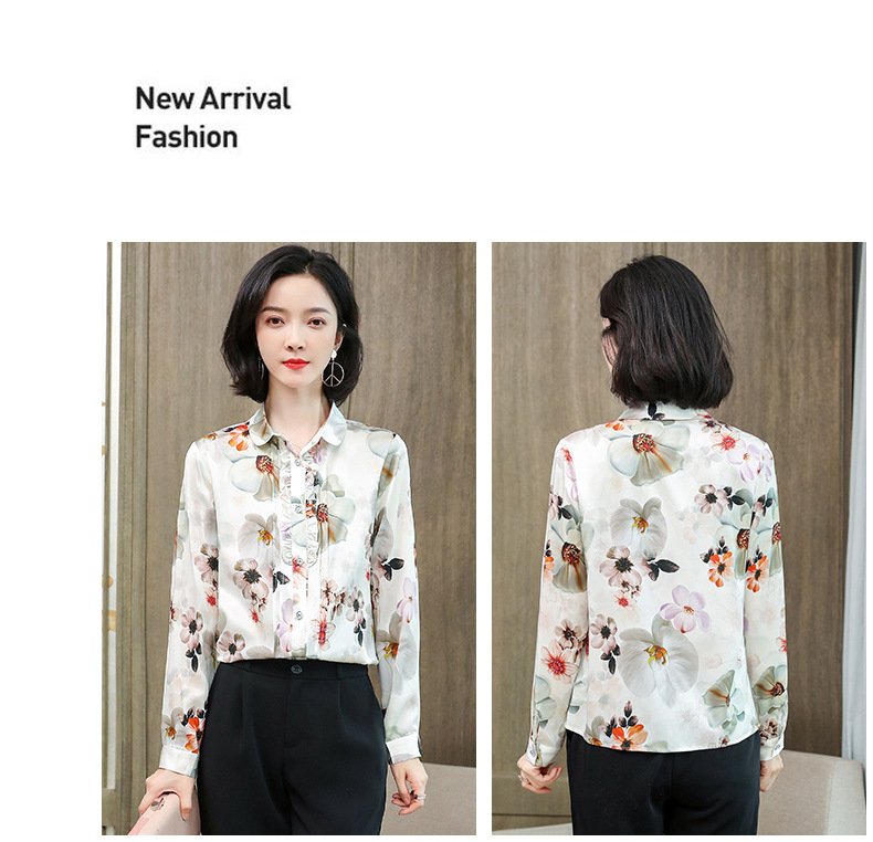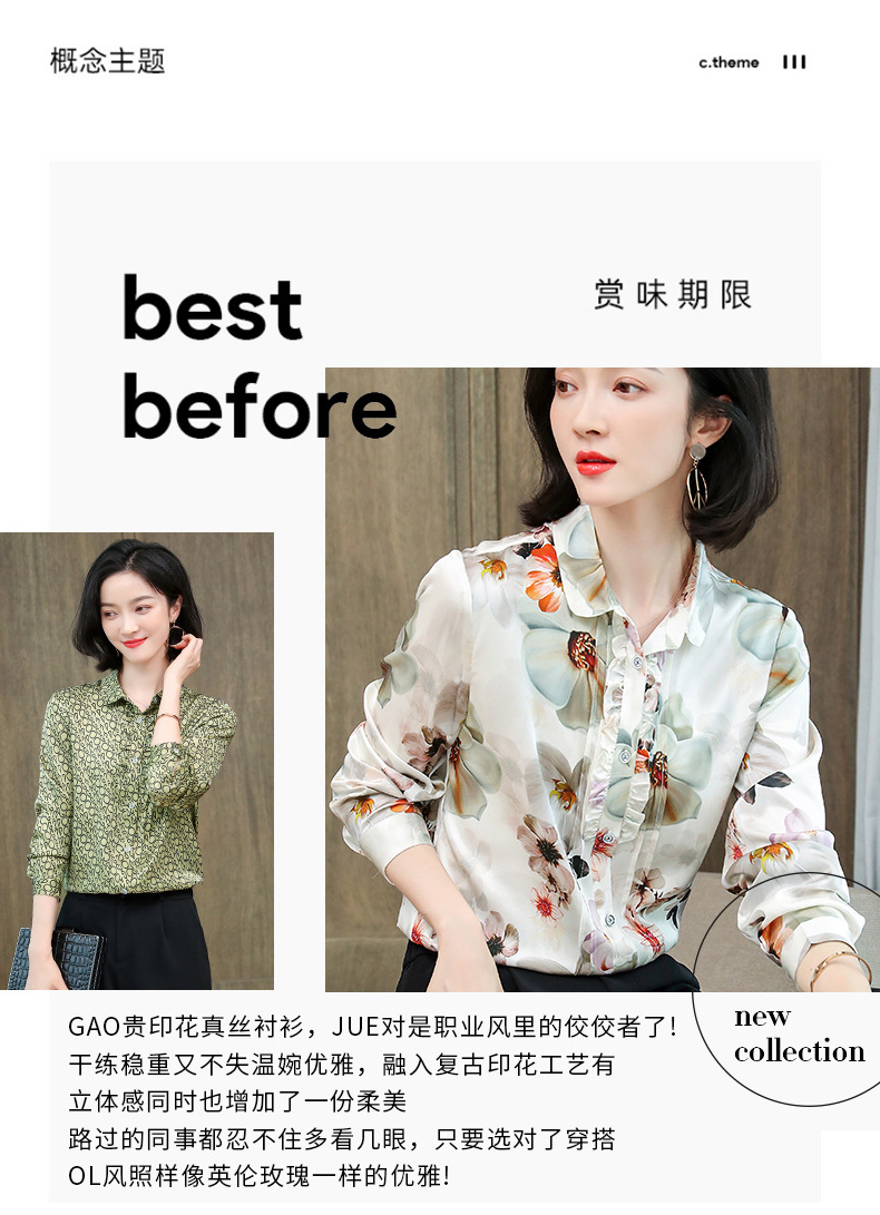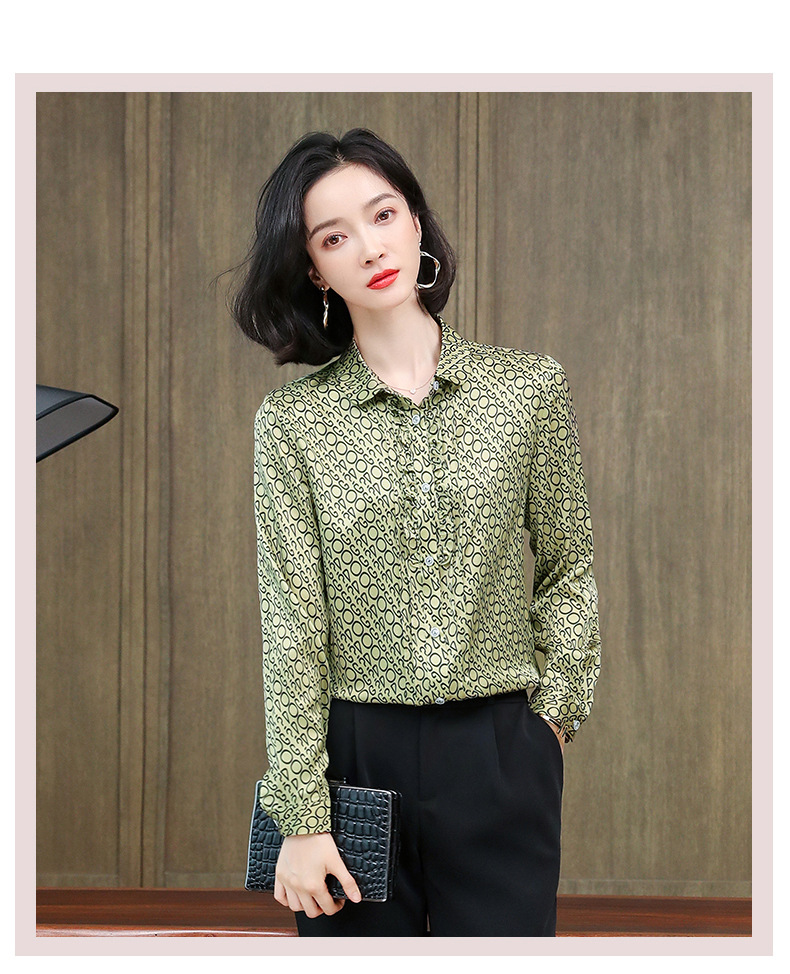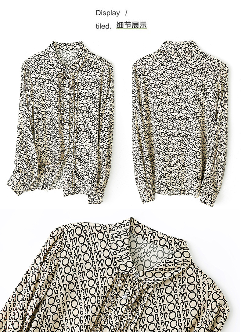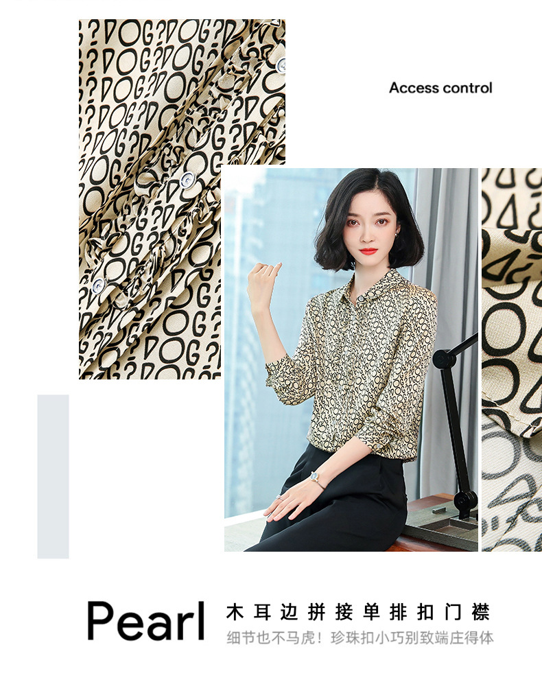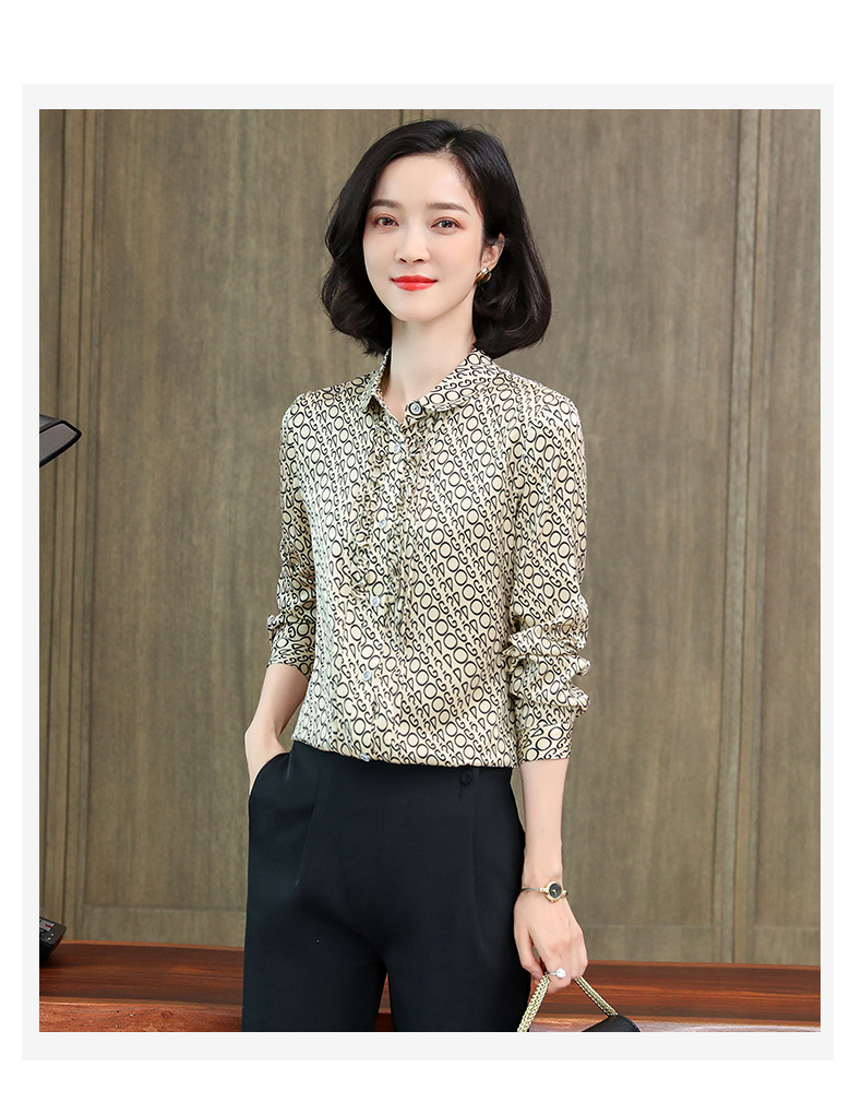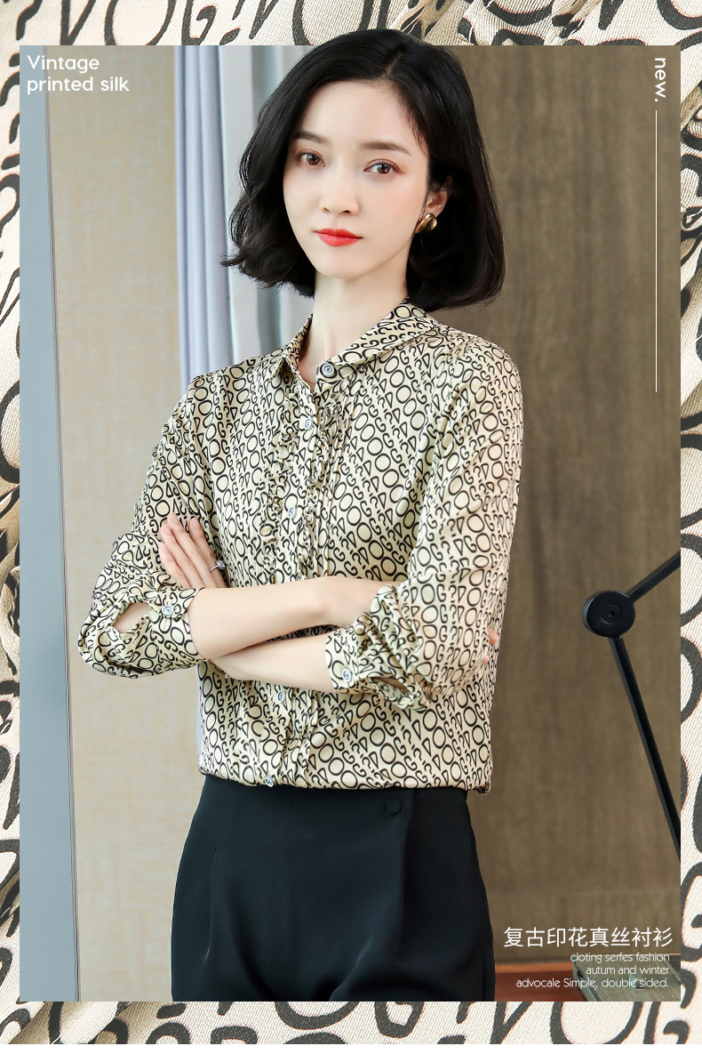 ASE-3398重磅真丝衬衫女2021秋新款气质木耳边长袖格纹印花桑蚕丝衬衣