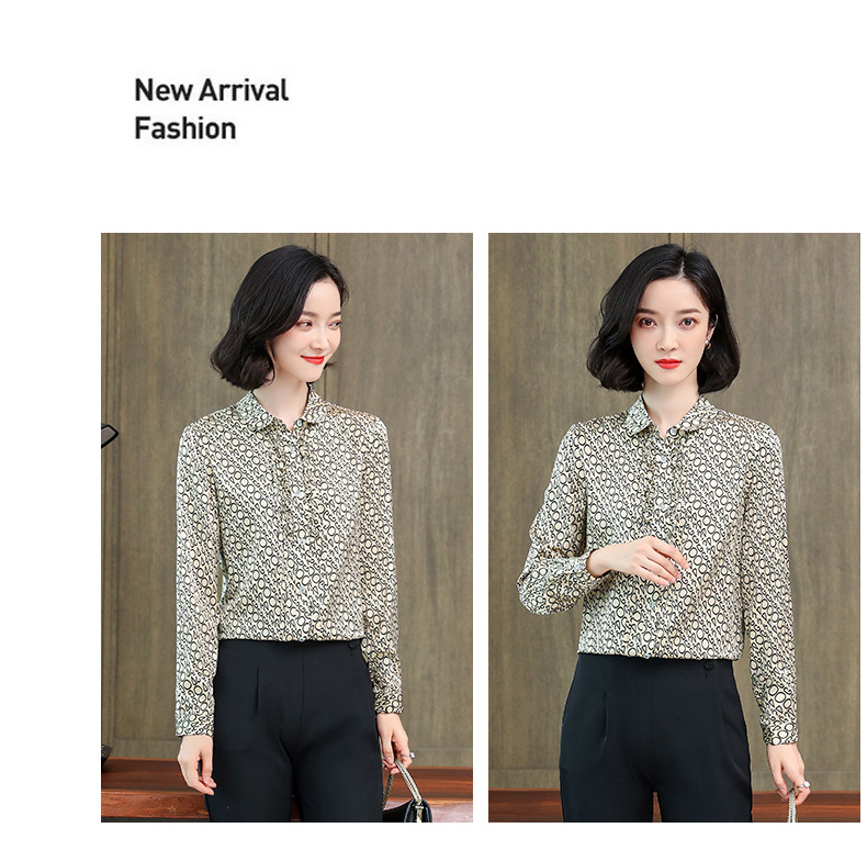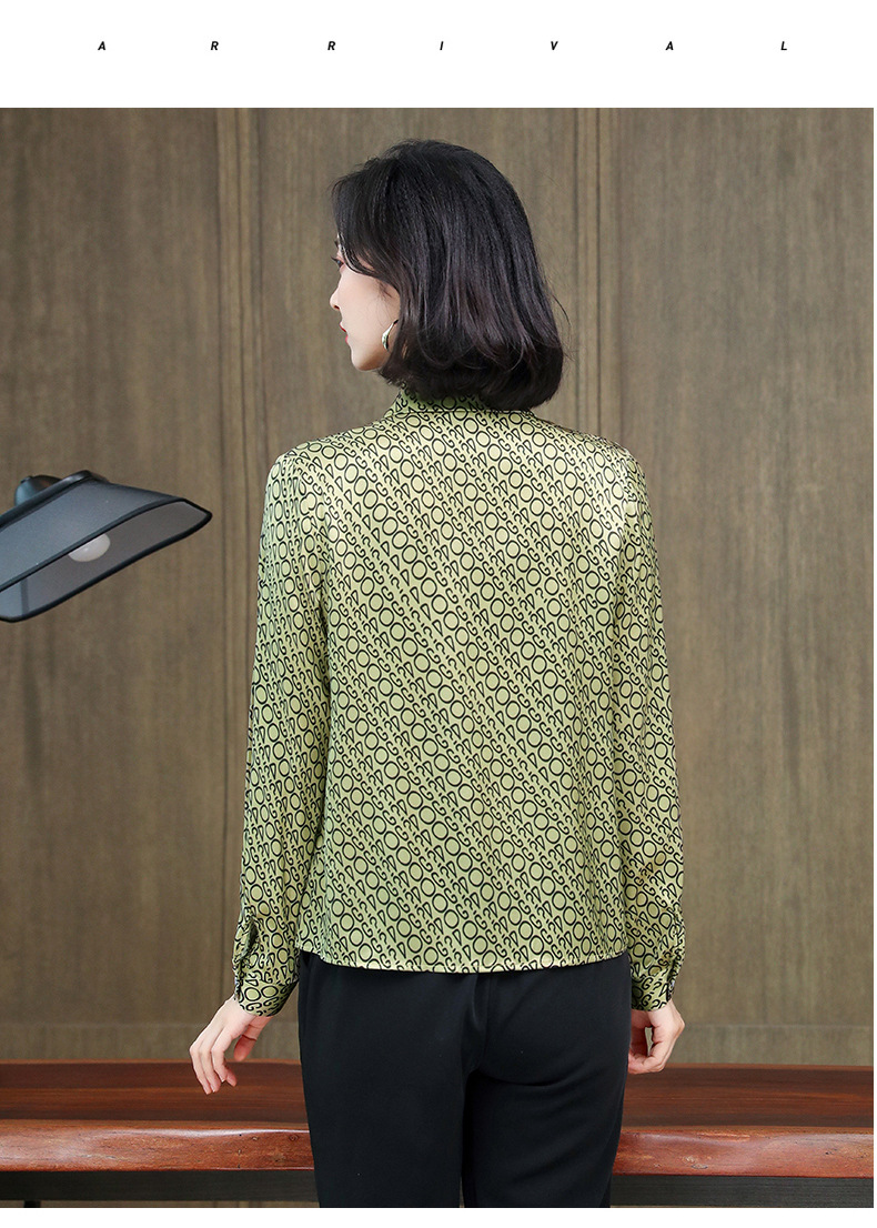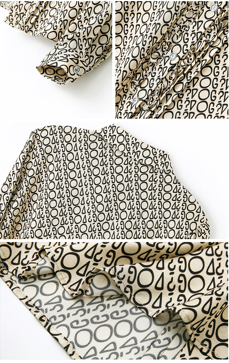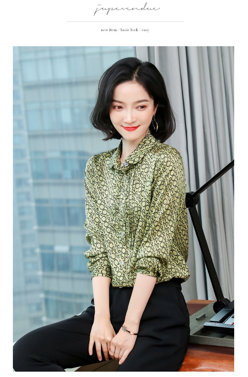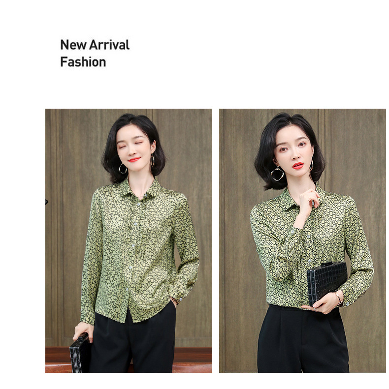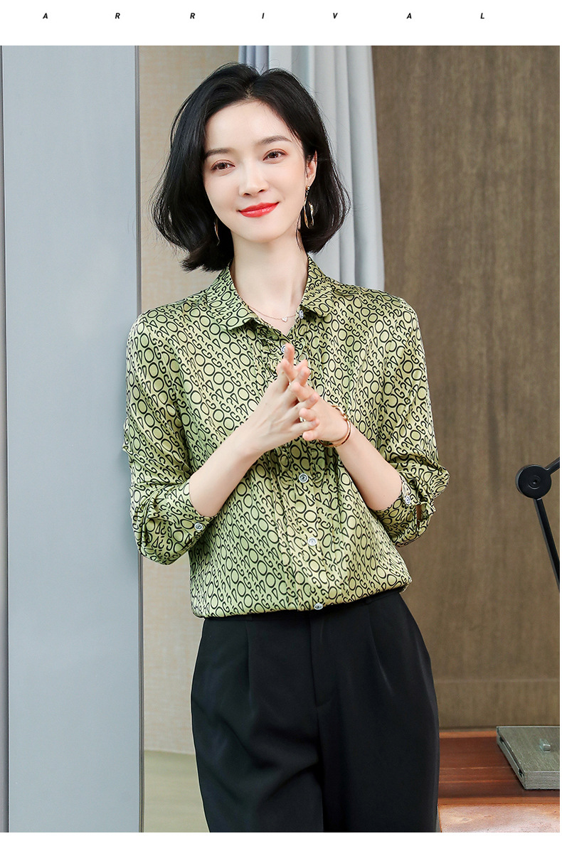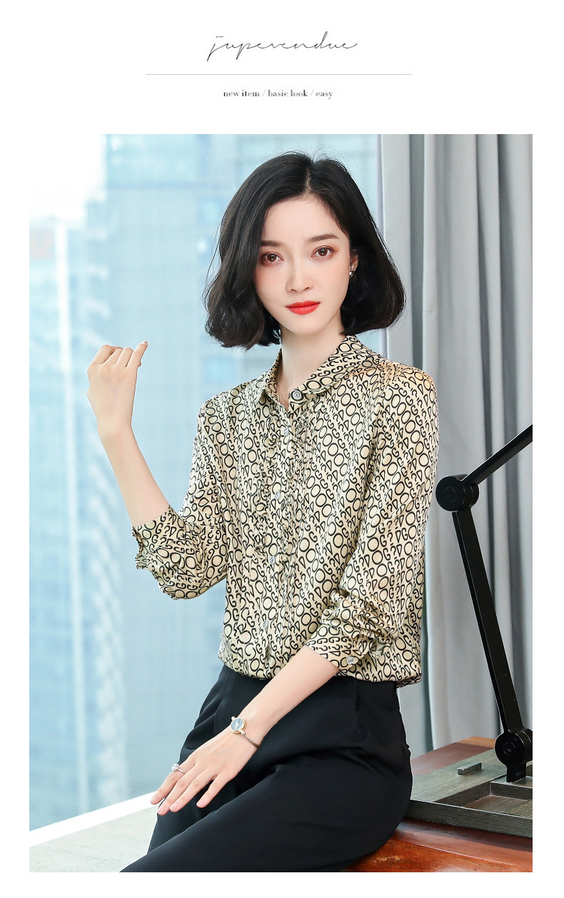 ASE-3398重磅真丝衬衫女2021秋新款气质木耳边长袖格纹印花桑蚕丝衬衣