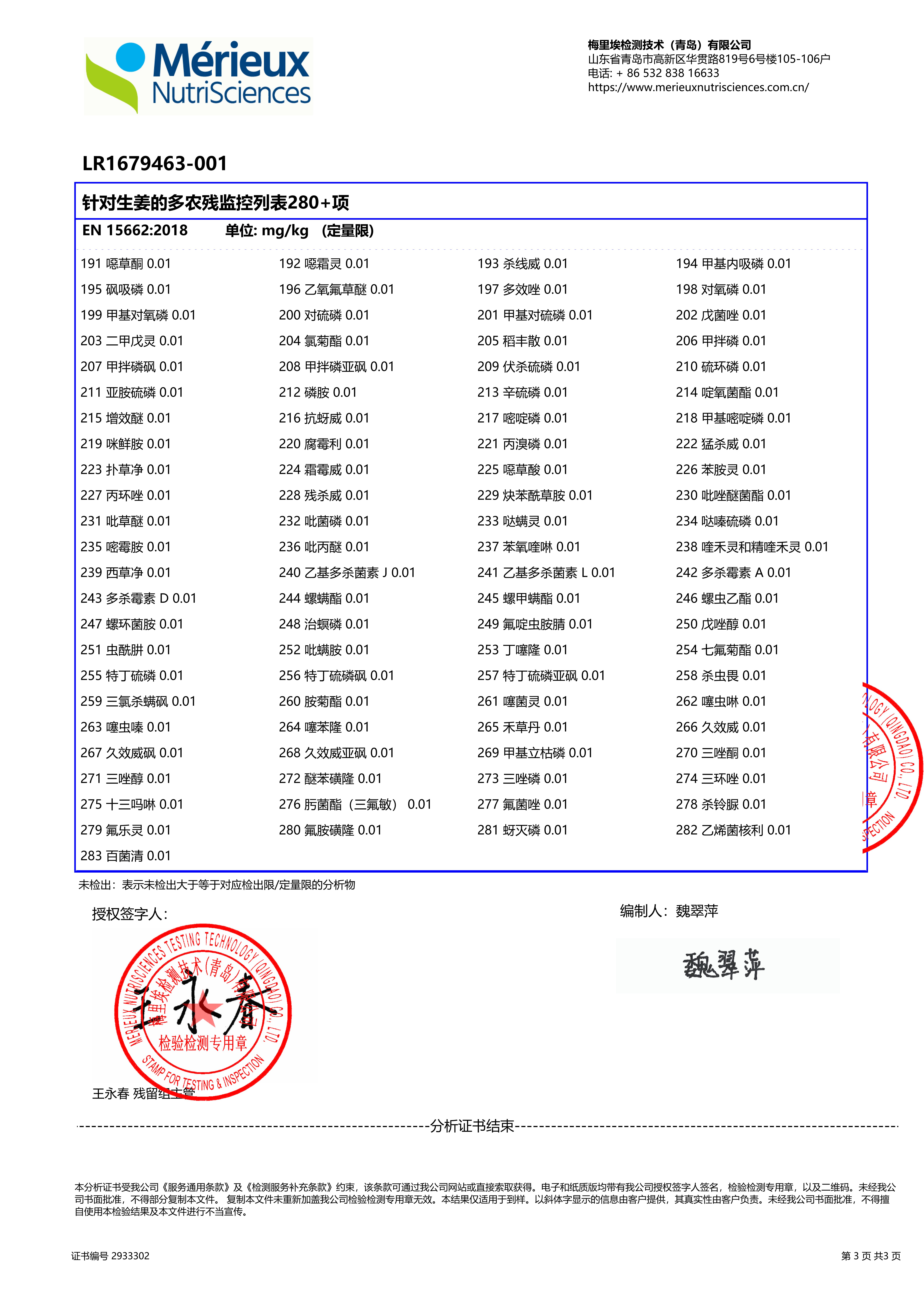 今年的姜也做了检测报告,无检出。
