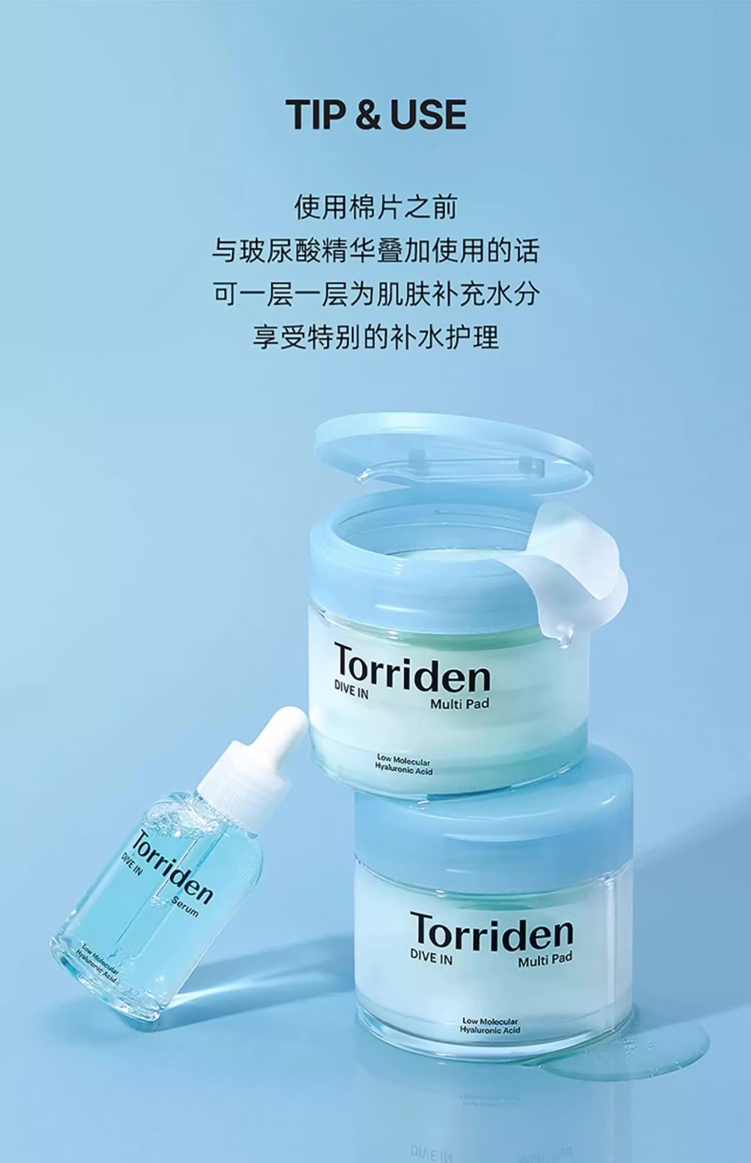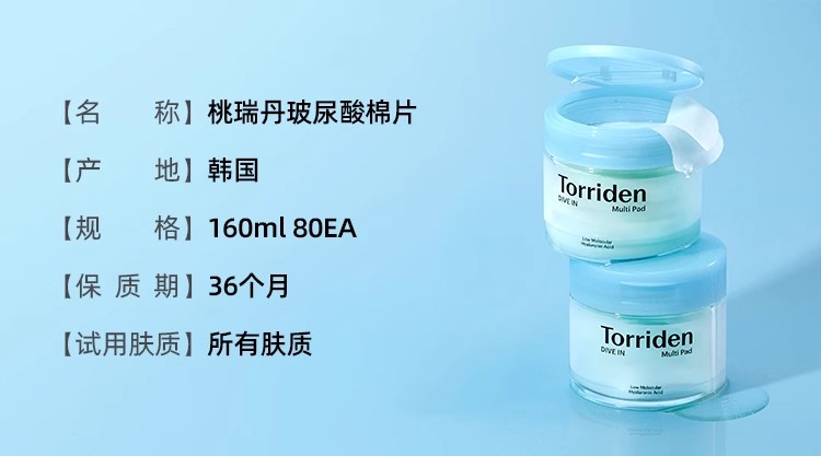 Torriden桃瑞丹玻尿酸爽肤棉片160ml/80片 【保税直发】