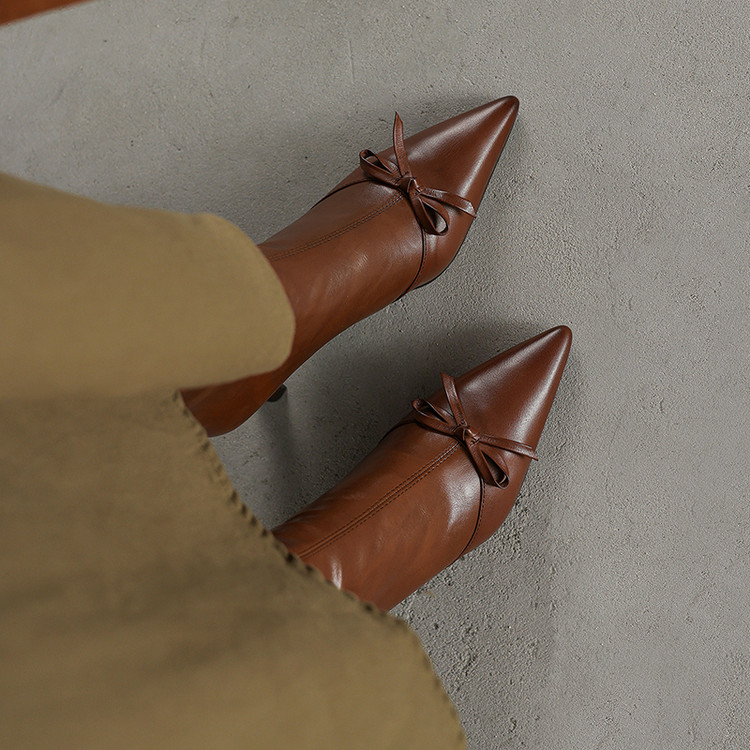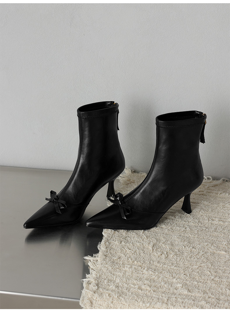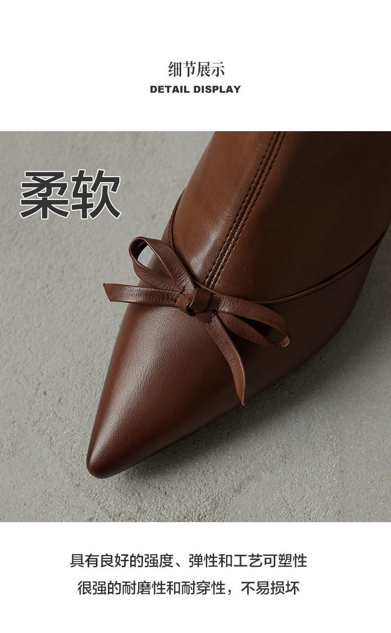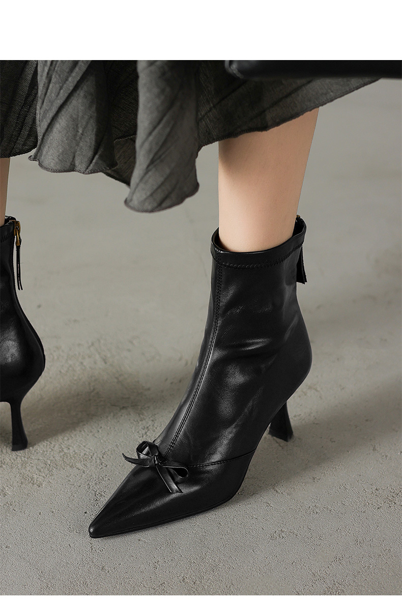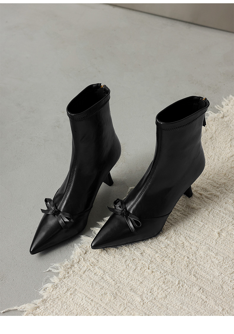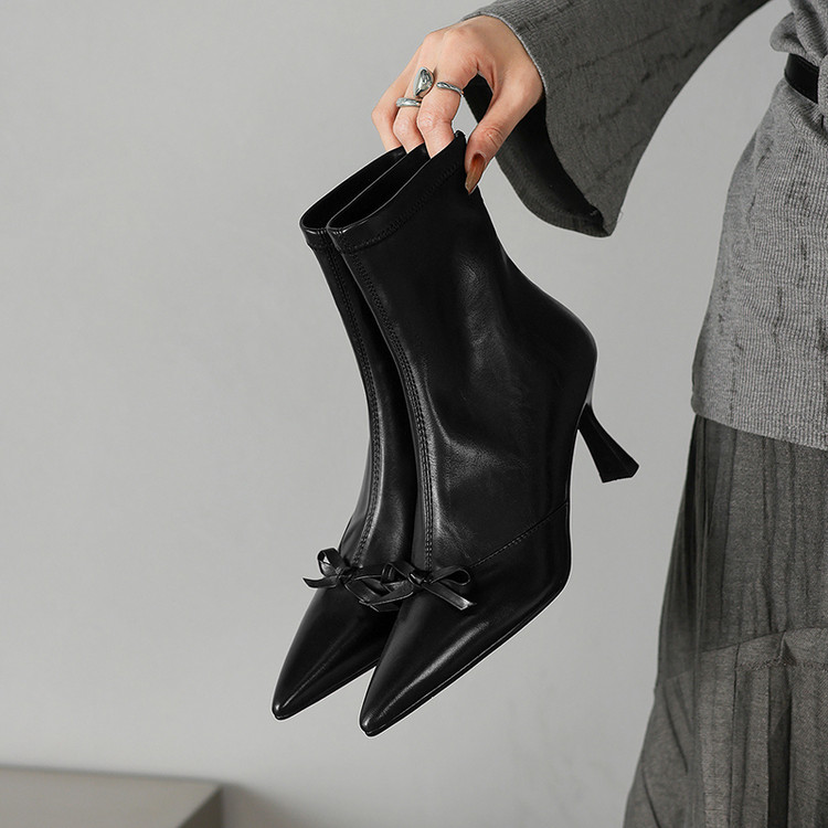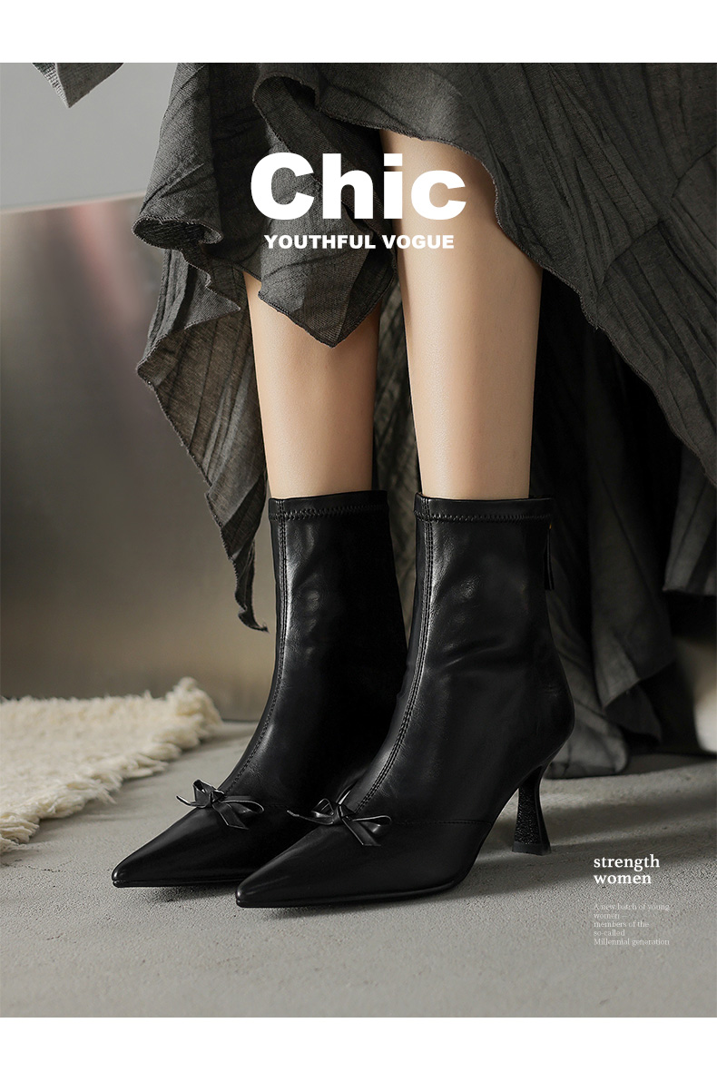 【预售5天】法式棕色蝴蝶结高跟短靴尖头弹力靴秋冬显瘦气质瘦瘦靴子WC&M3496