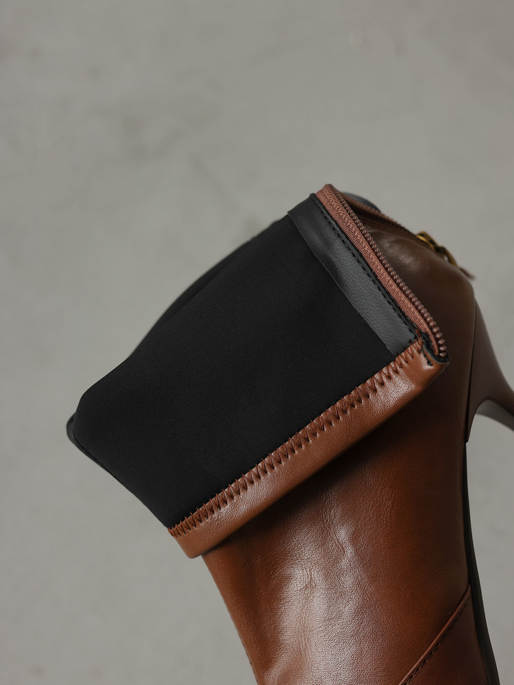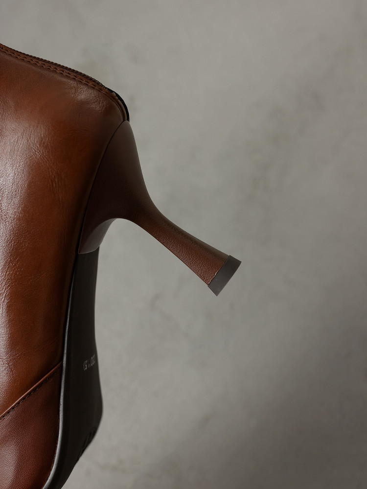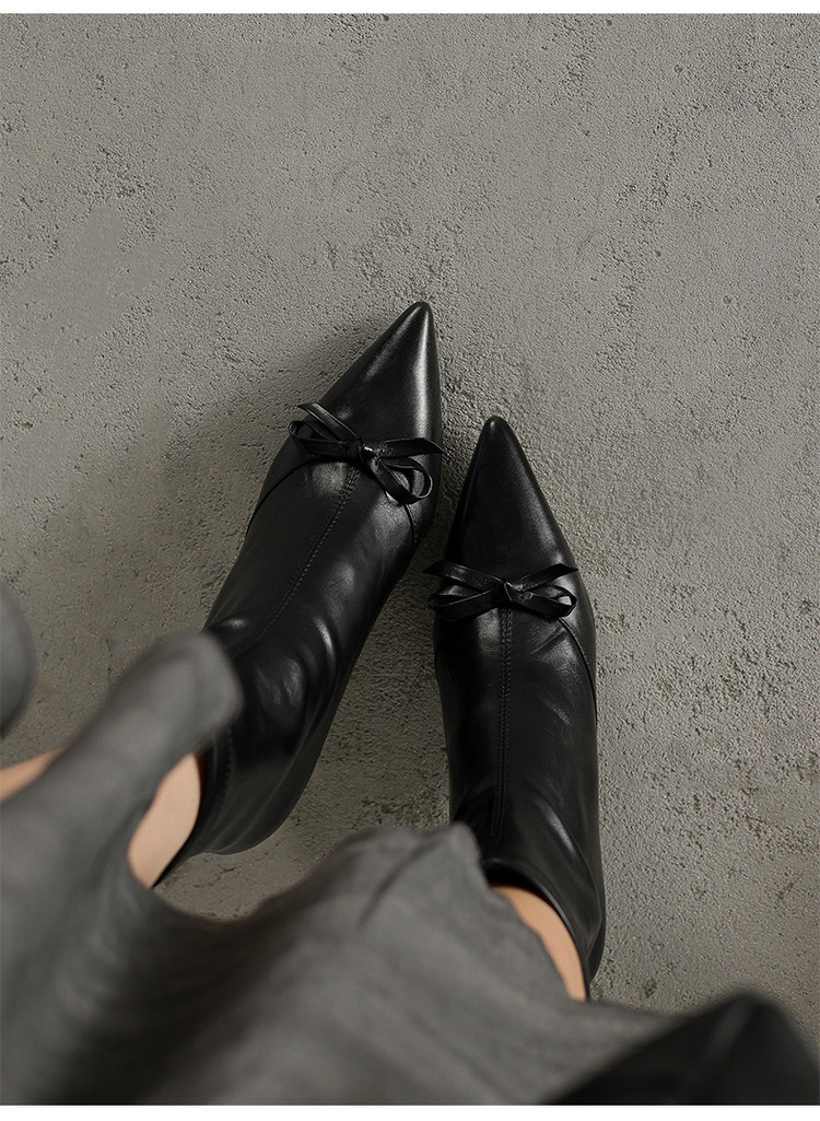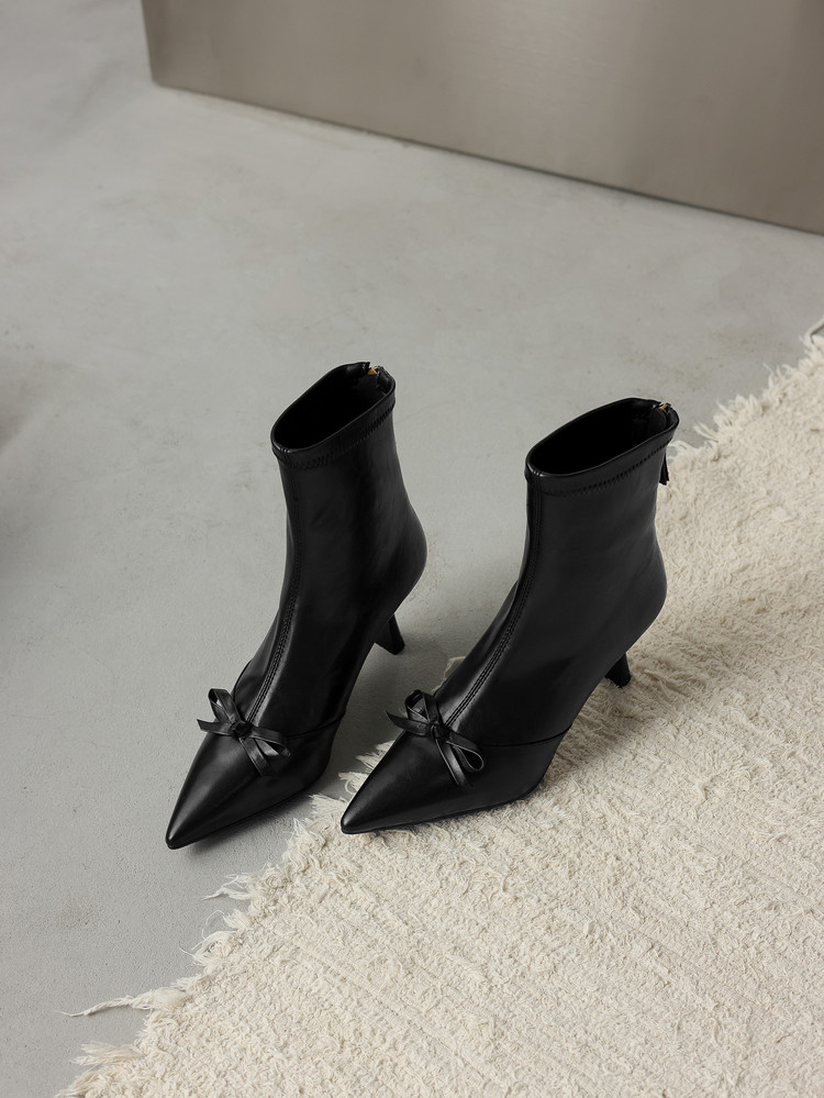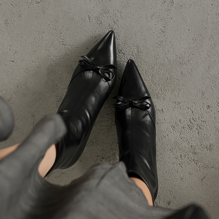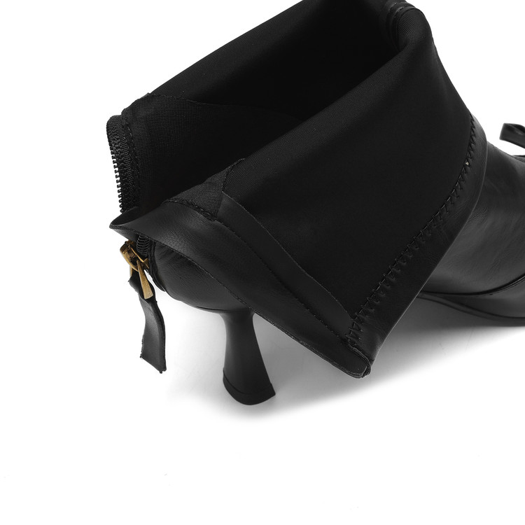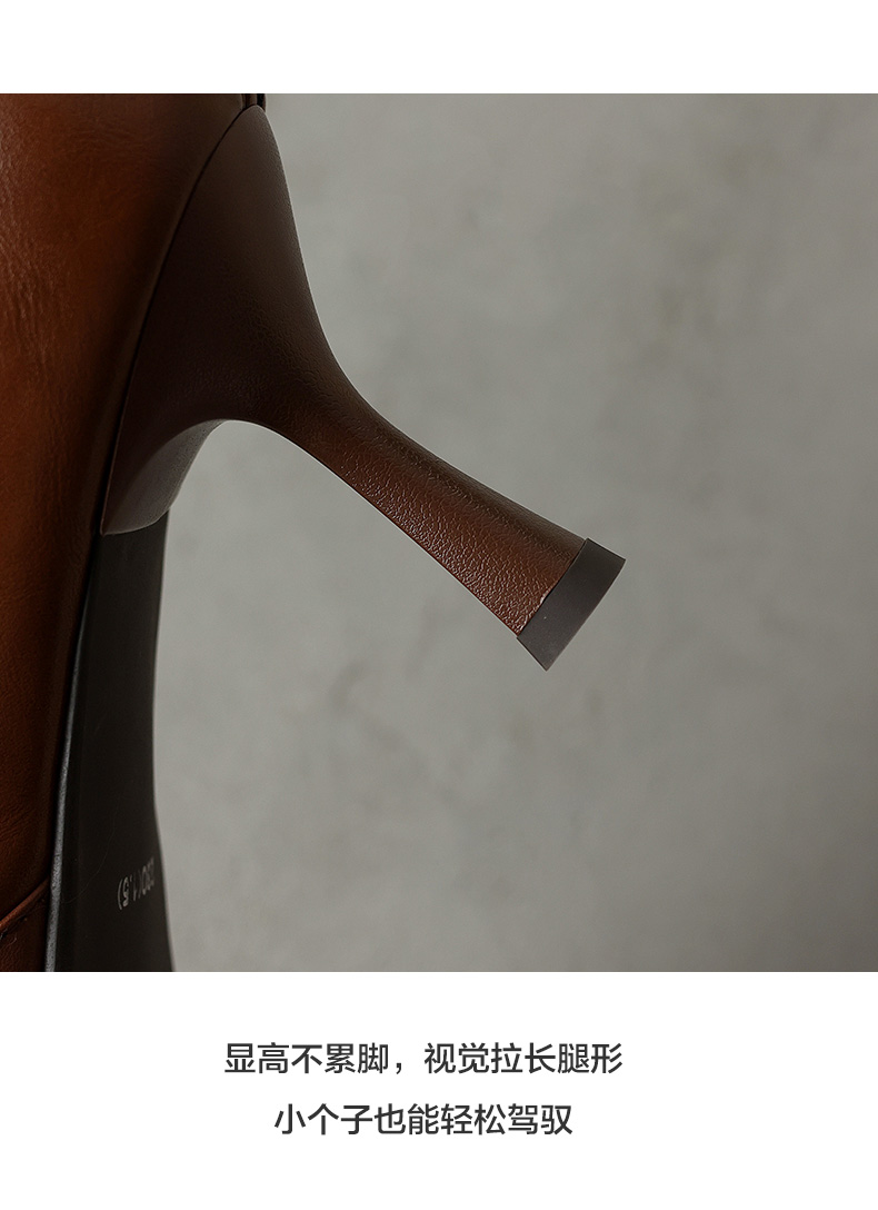 【预售5天】法式棕色蝴蝶结高跟短靴尖头弹力靴秋冬显瘦气质瘦瘦靴子WC&M3496