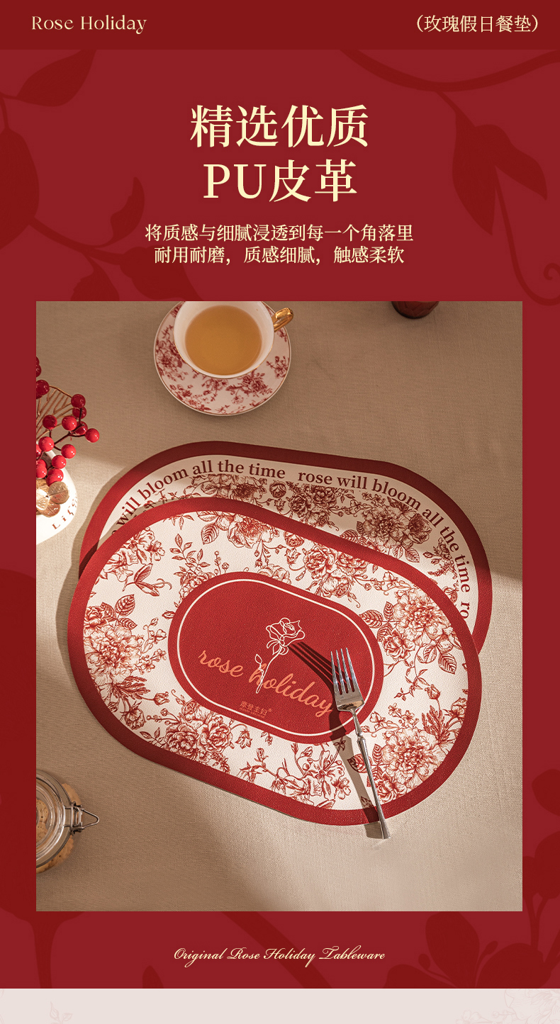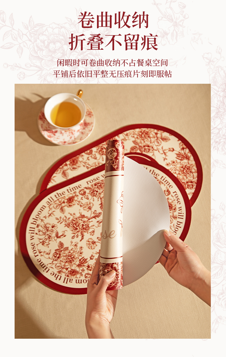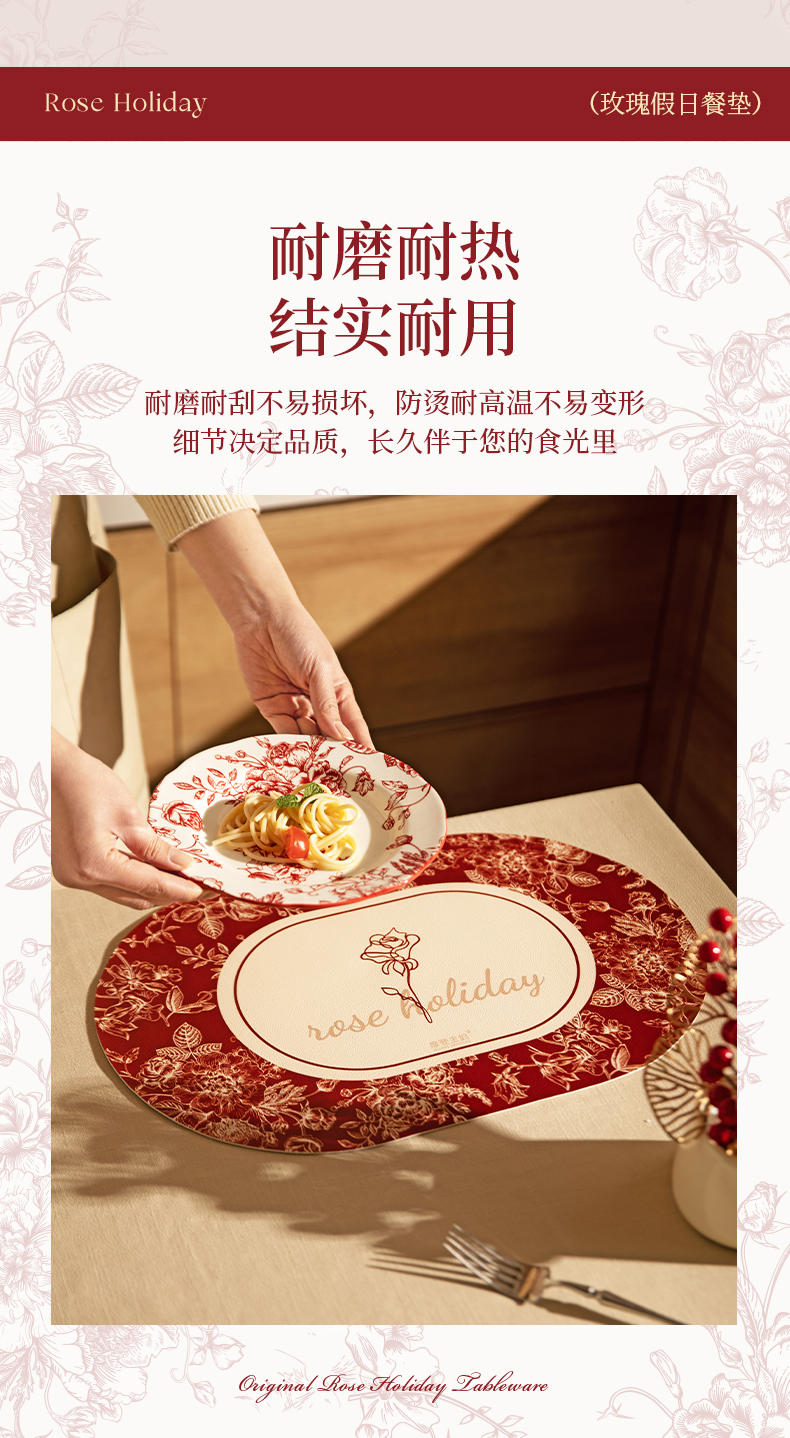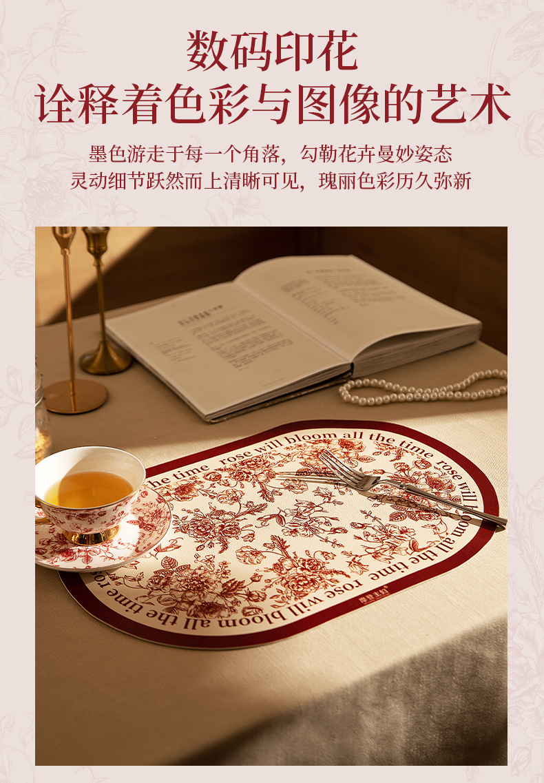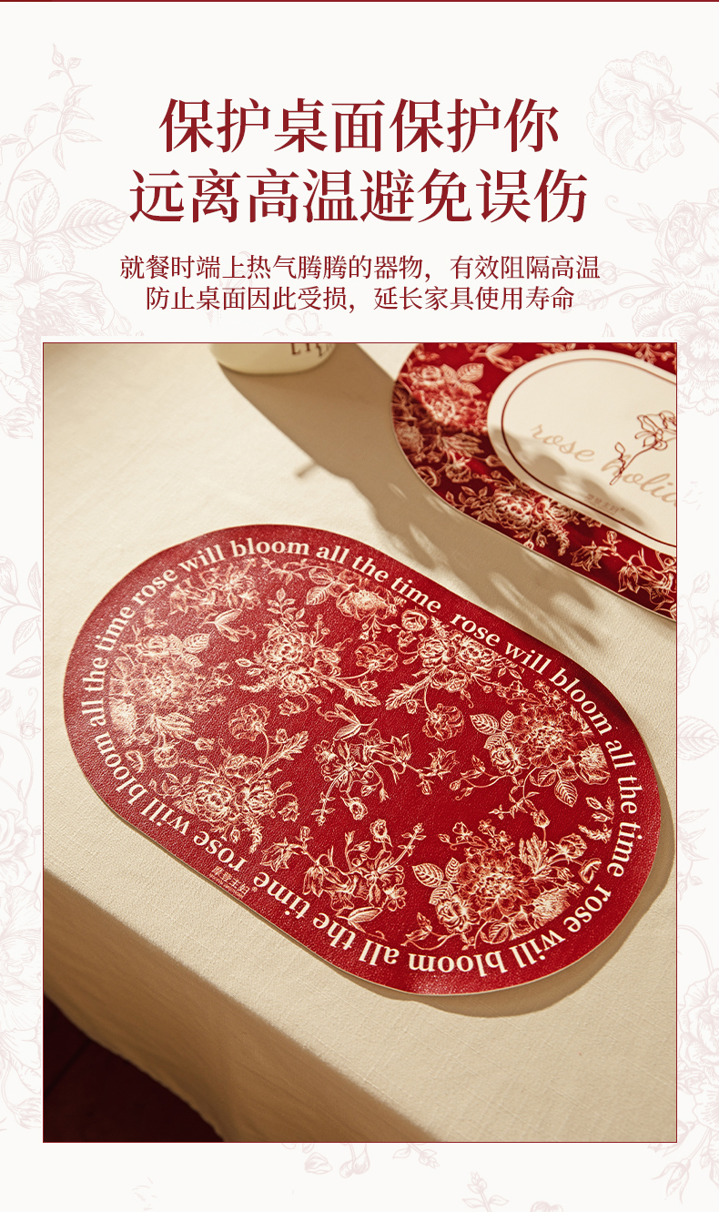 摩登主妇玫瑰假日西餐餐垫高级感轻奢高颜值桌垫耐高温防烫隔热垫