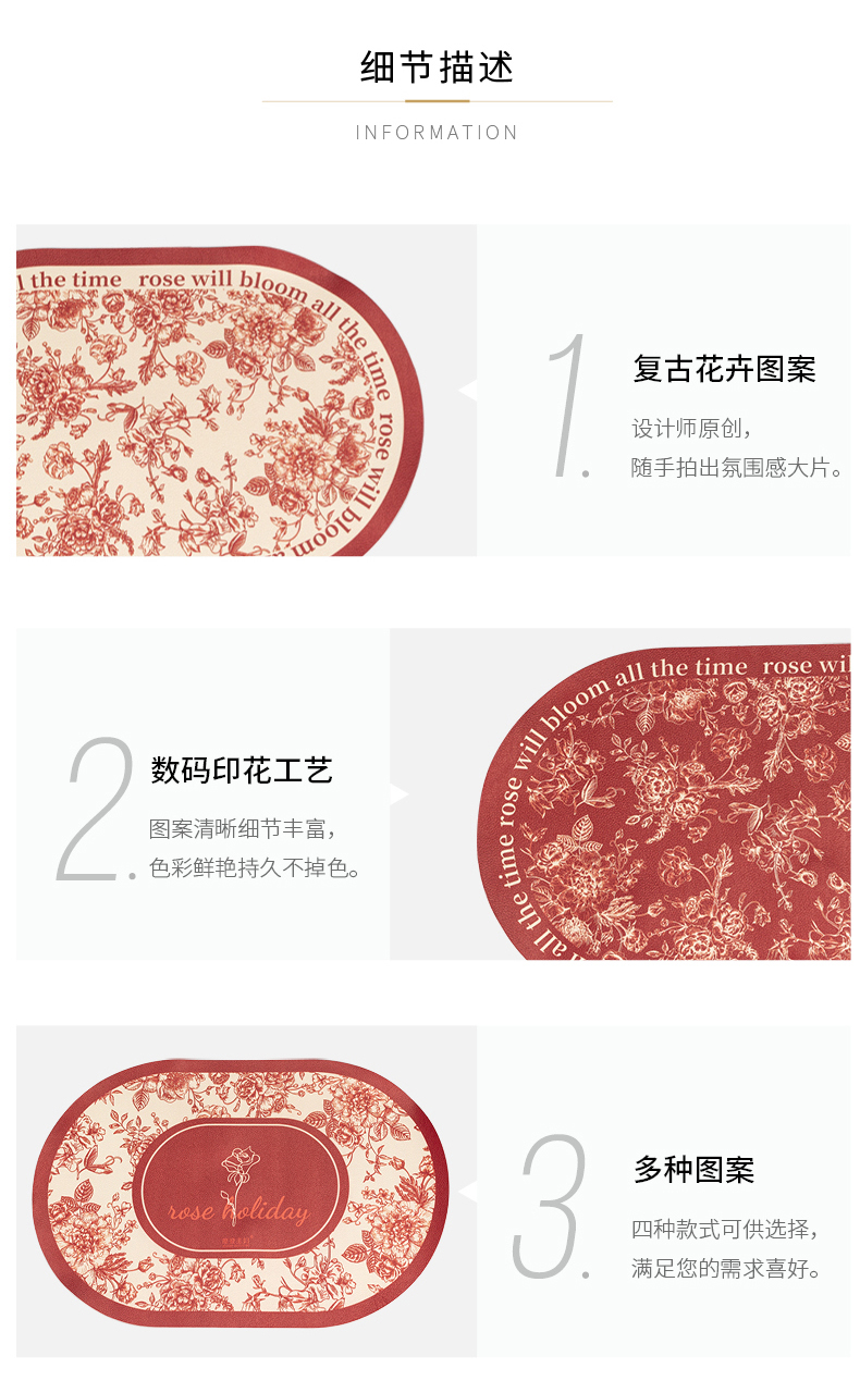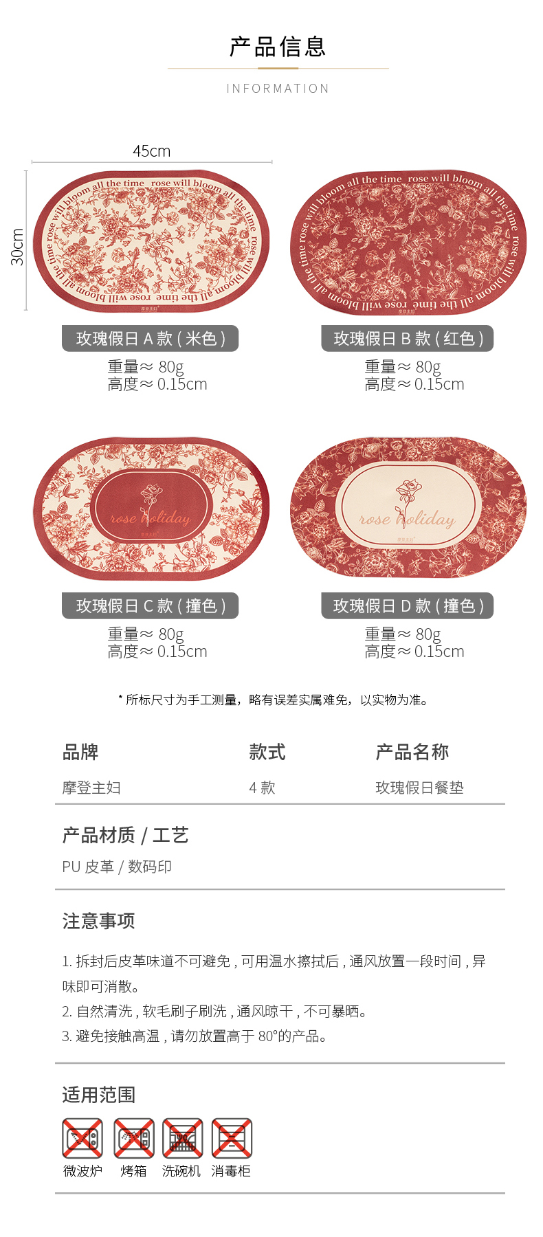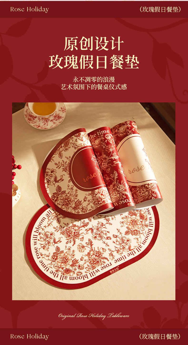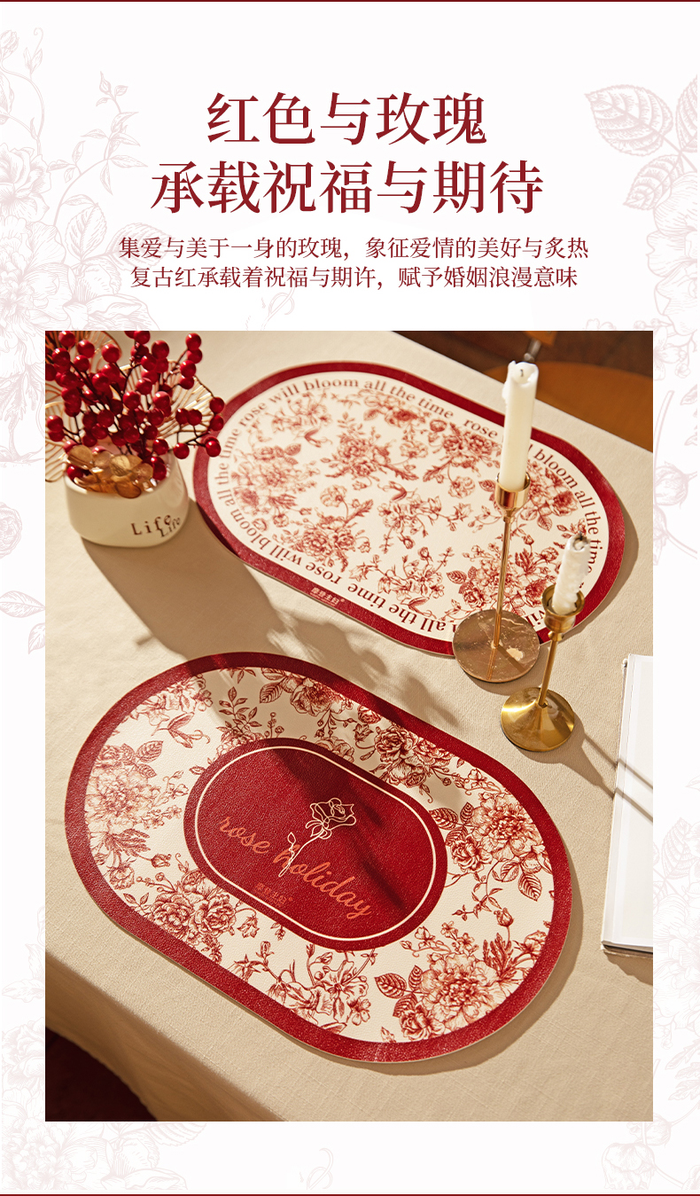 摩登主妇玫瑰假日西餐餐垫高级感轻奢高颜值桌垫耐高温防烫隔热垫