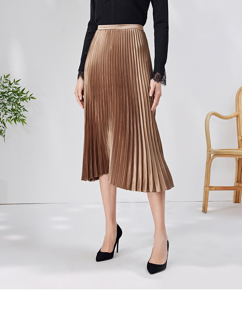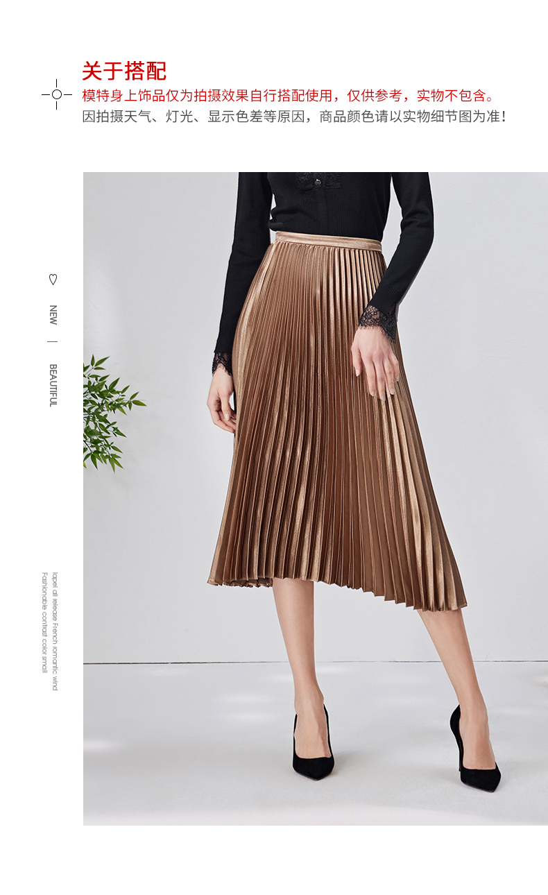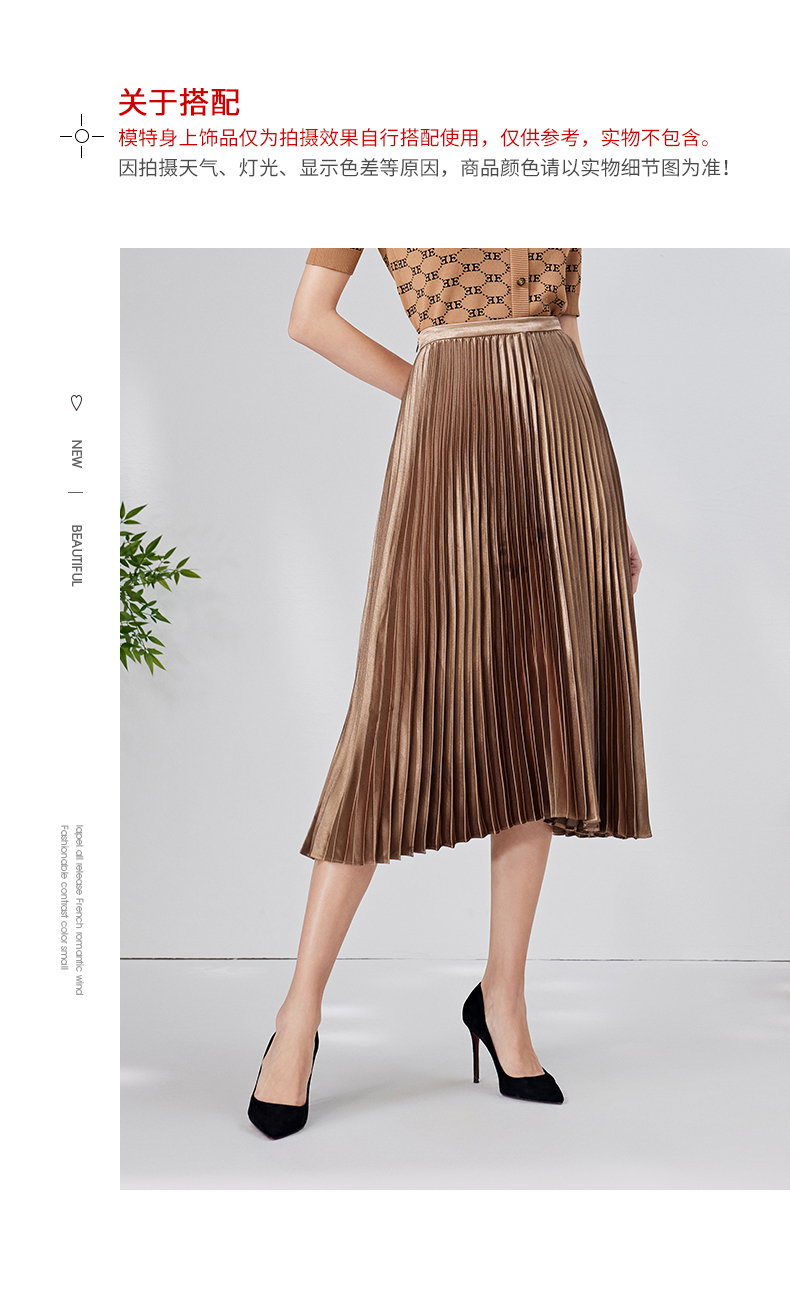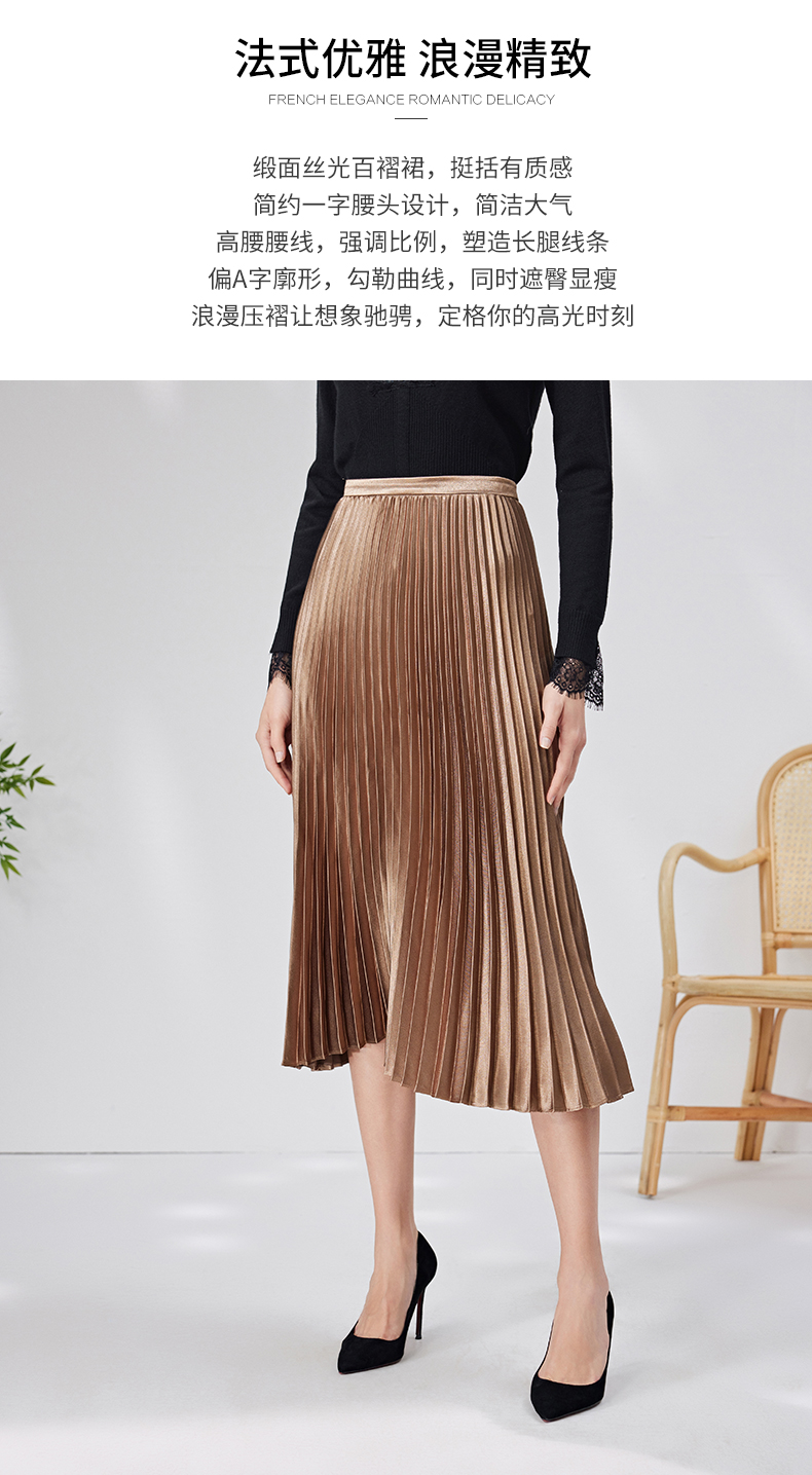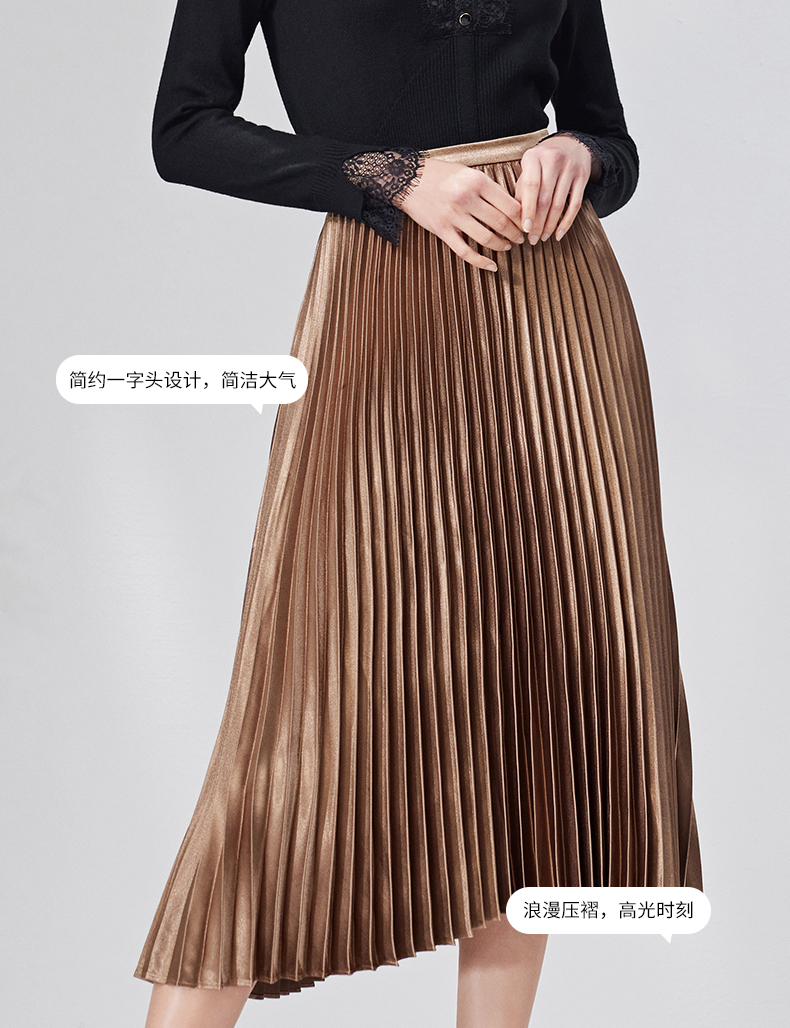 EITIE爱特爱秋季新款时尚气质通勤显瘦百搭百褶半身裙7106801