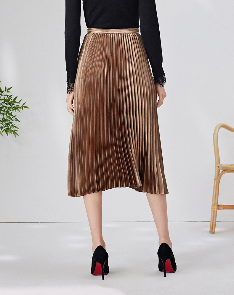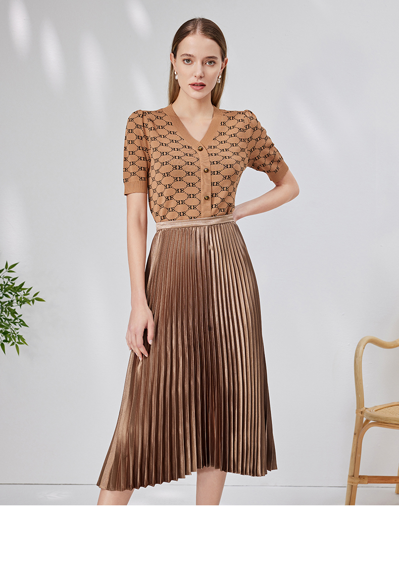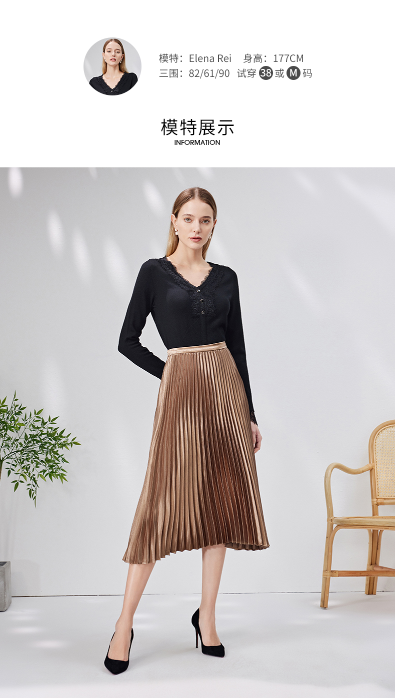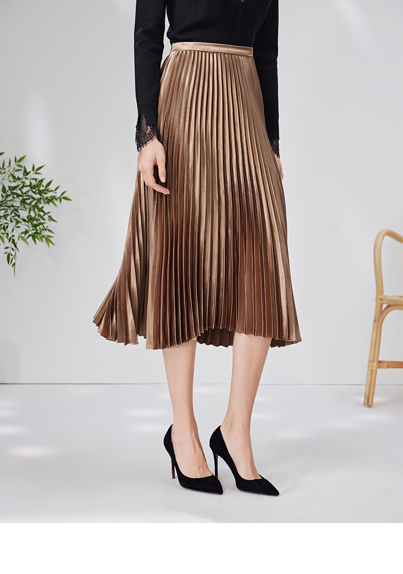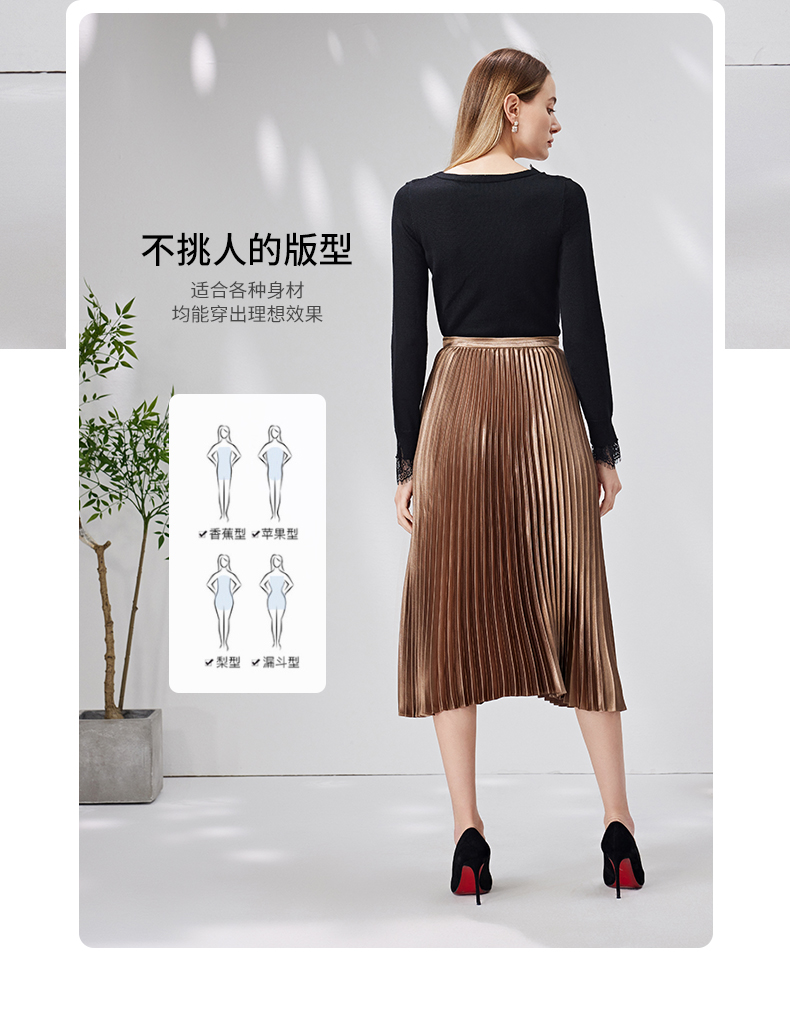 EITIE爱特爱秋季新款时尚气质通勤显瘦百搭百褶半身裙7106801