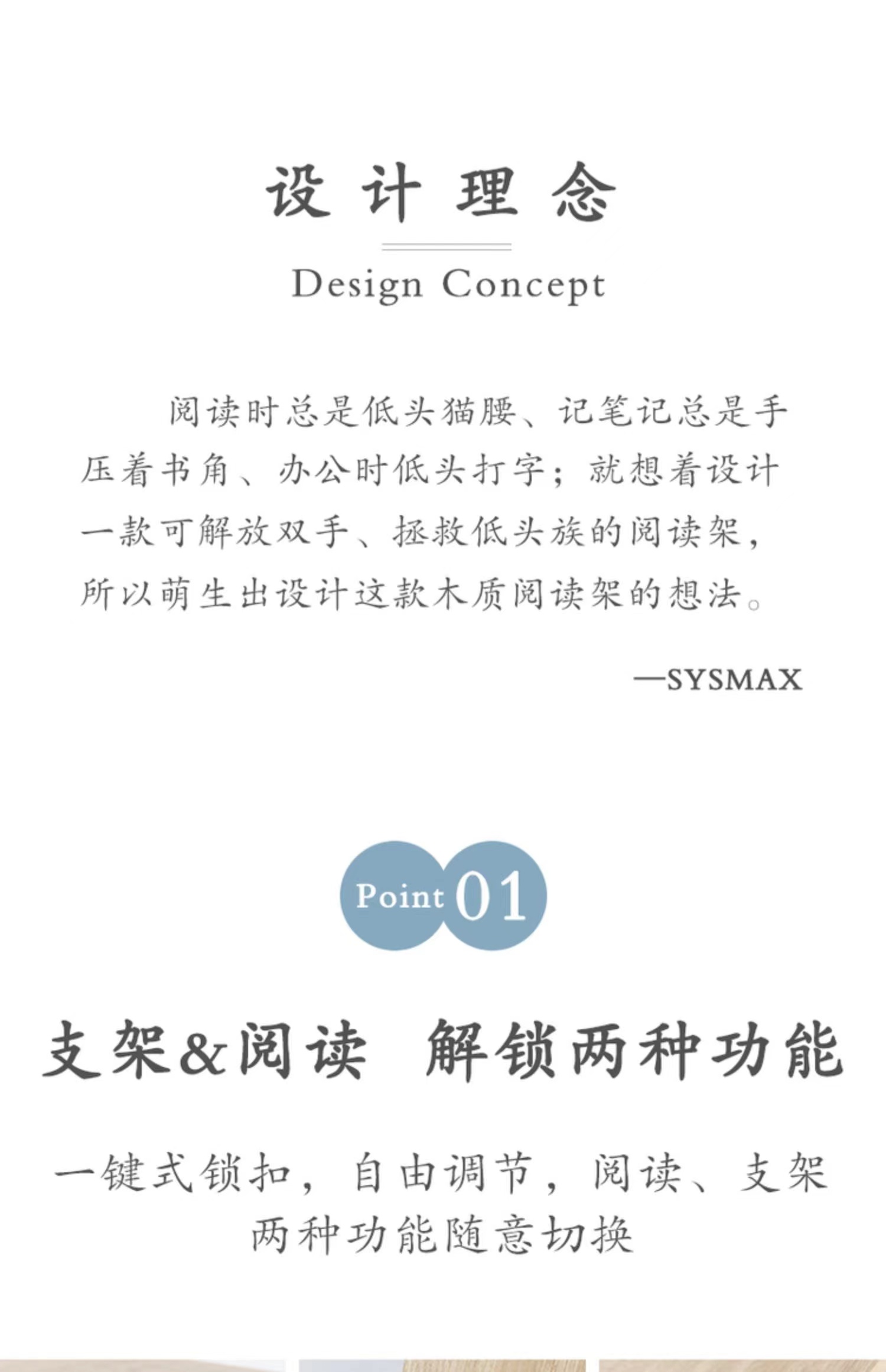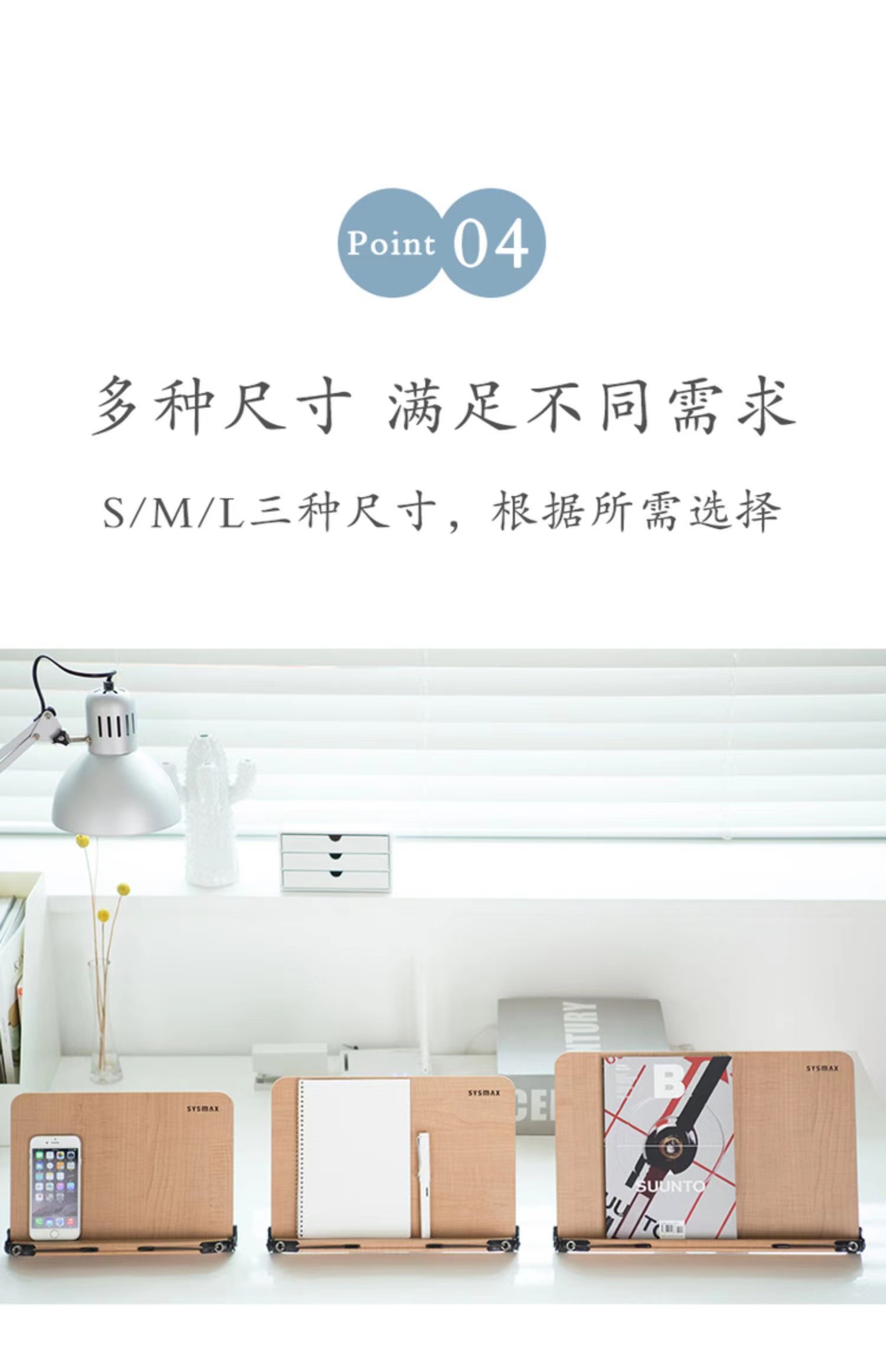 在ins拥有众多粉丝的Sysmax 阅读书架有1档到13档任意调节的倾斜角度,改变低头猫腰的不良姿势。全家人都可以用,书架放IPAD、A3尺寸的书、笔记本都没有问题,孩子学习,爸妈办公,一个阅读架全搞定!