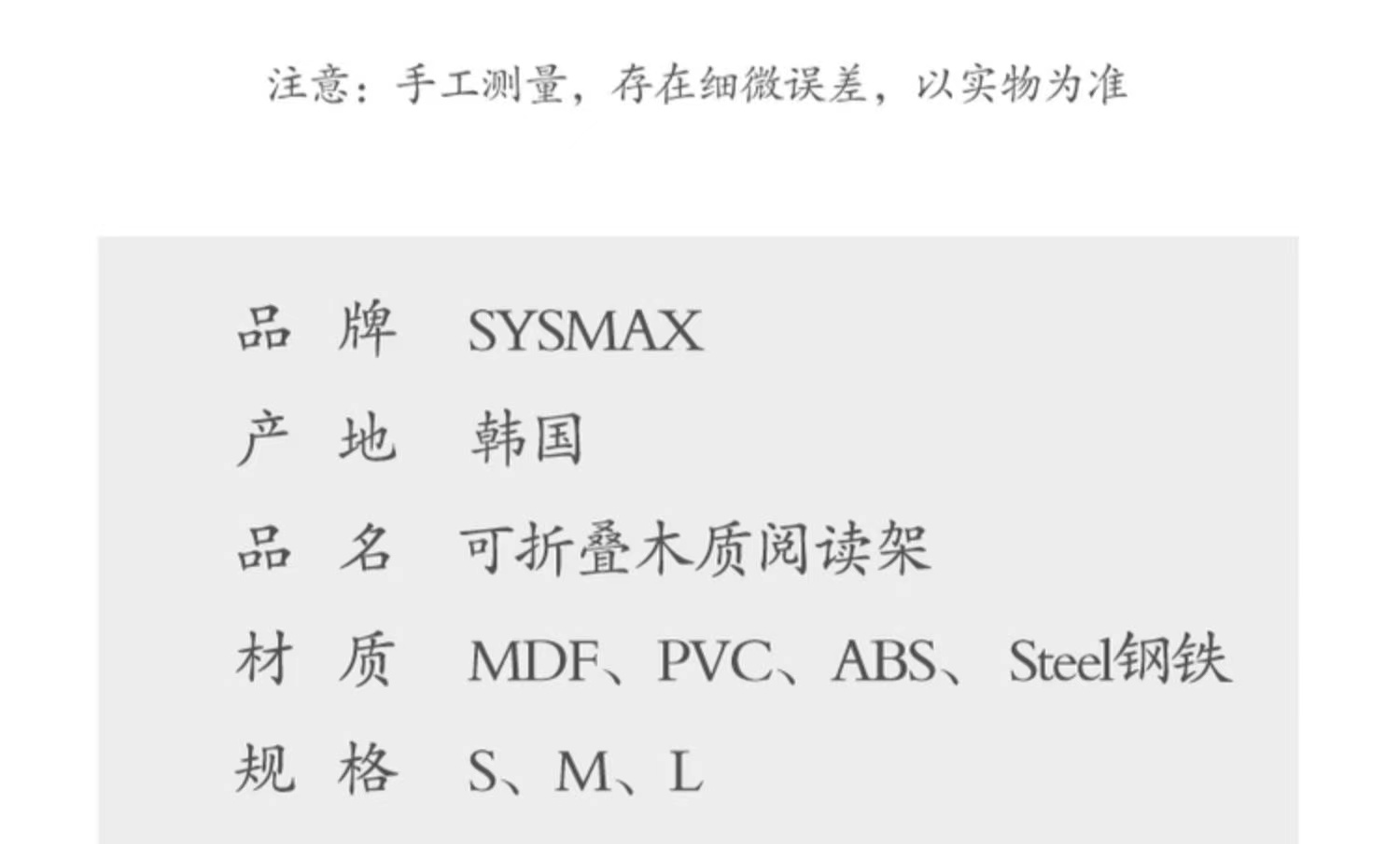 积分兑换 韩国产SYSMAX MYROOM可折叠读书架阅读架电脑支架支撑架 预防近视 拯救脊椎 改变弯腰驼背的阅读姿势