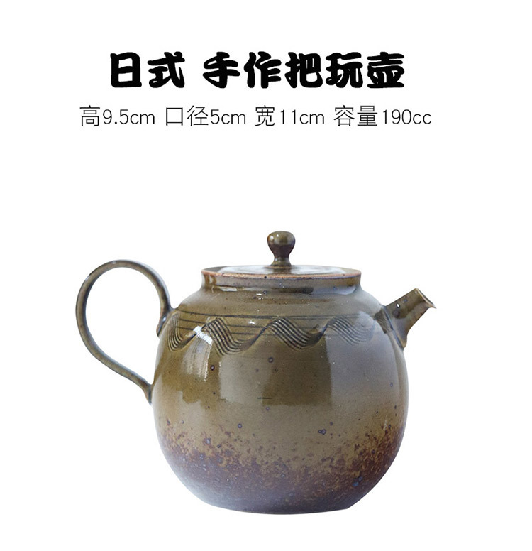 「景德镇手拉坯小茶壶」复古粗陶酱色高温窑变釉手作雕刻小号球孔壶 商品图1