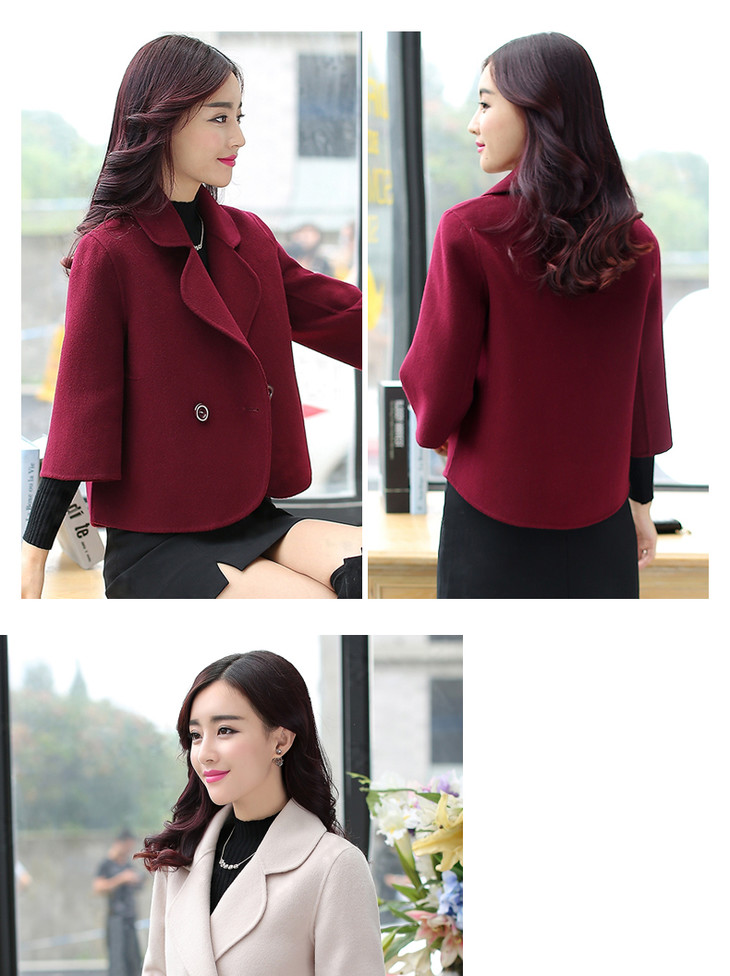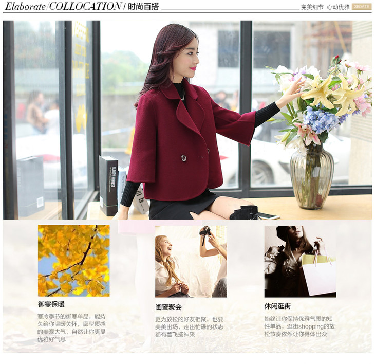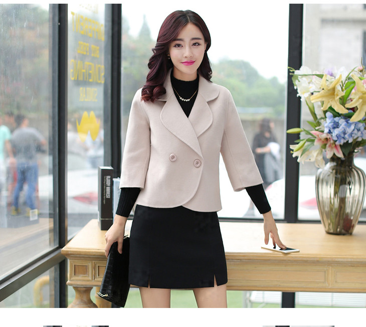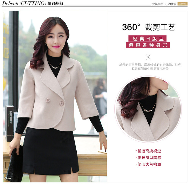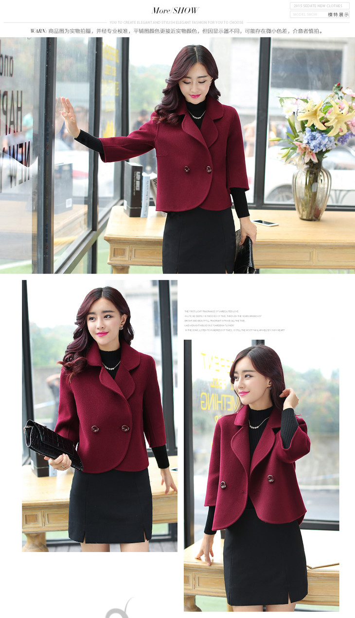 CQ ZM3123 纯色简约翻领2019春季显瘦双排扣短款毛呢外套