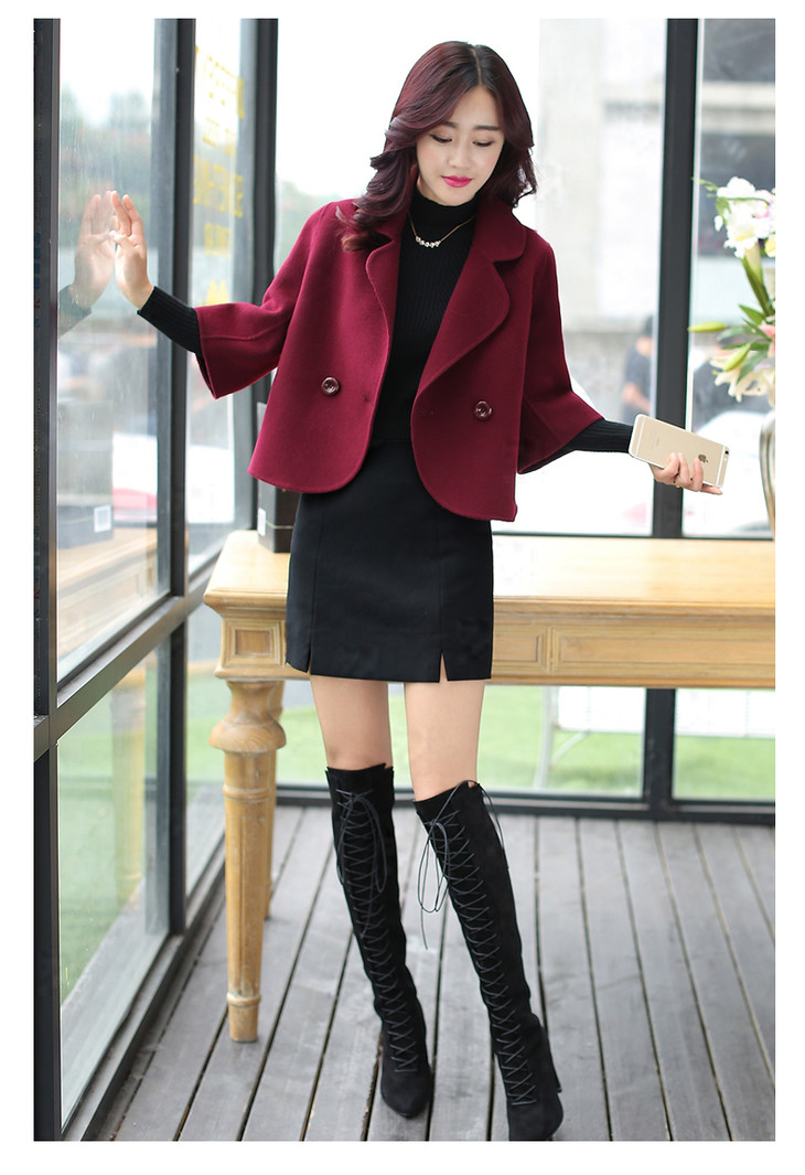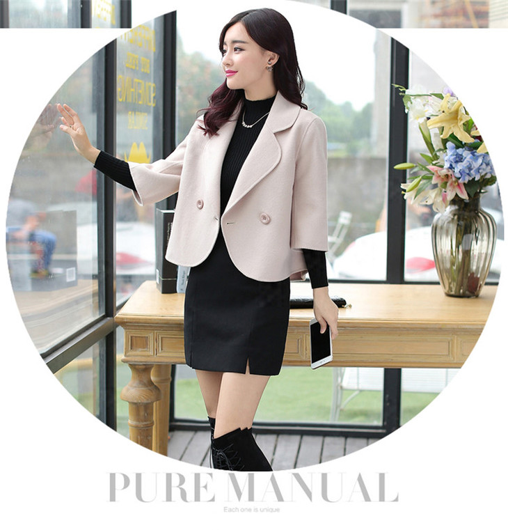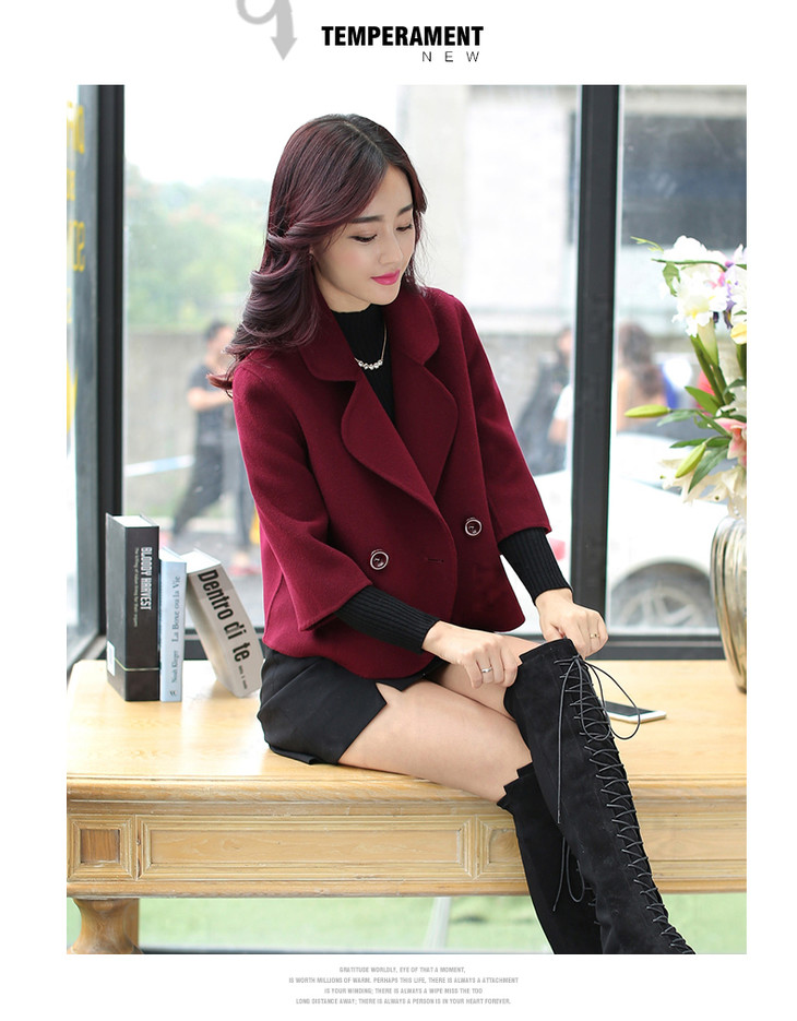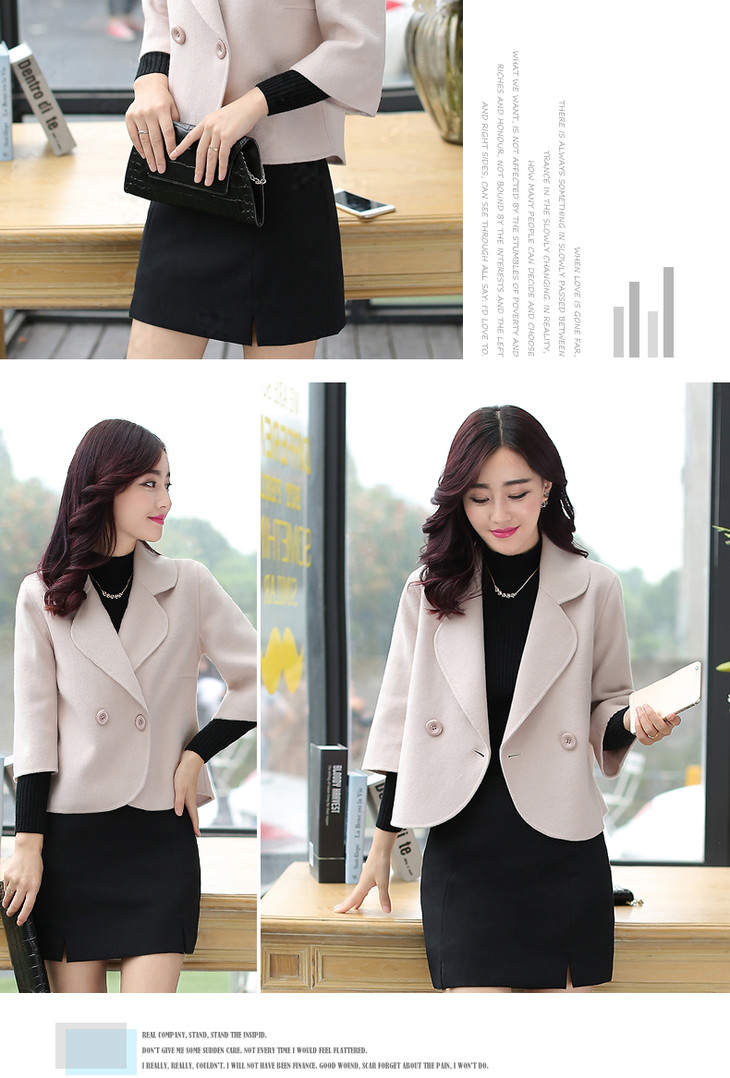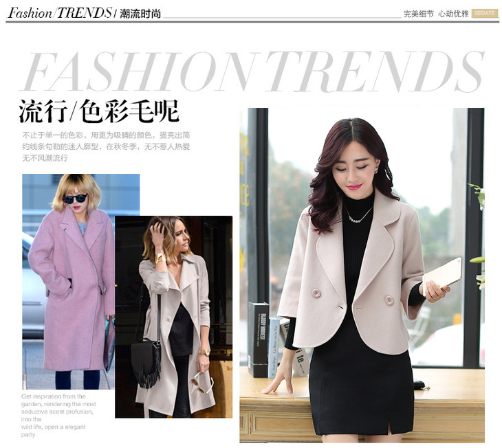 CQ ZM3123 纯色简约翻领2019春季显瘦双排扣短款毛呢外套