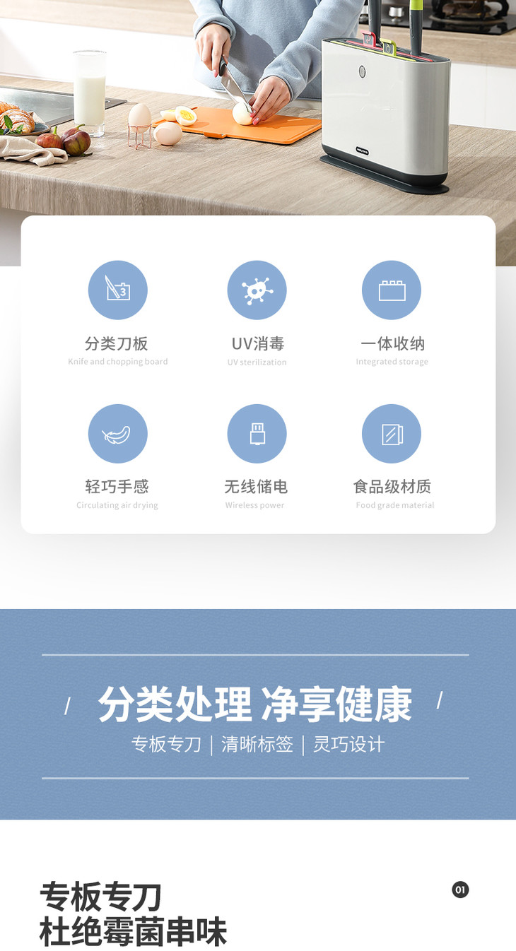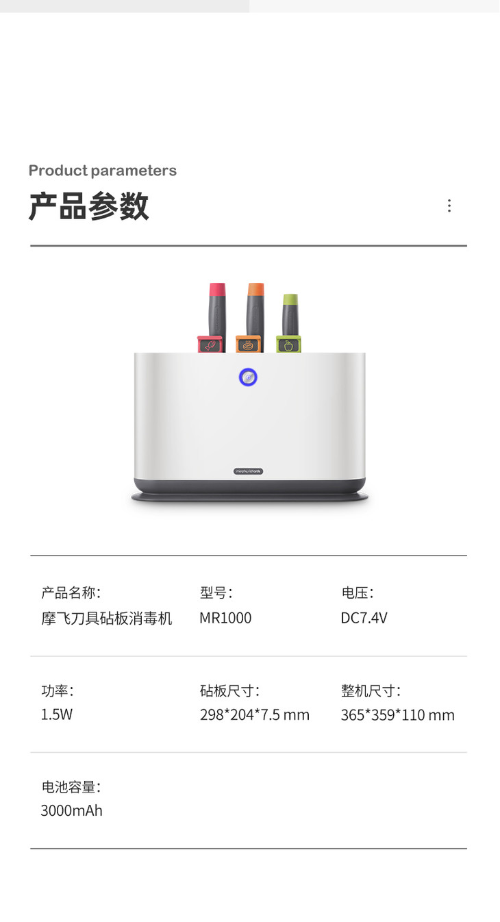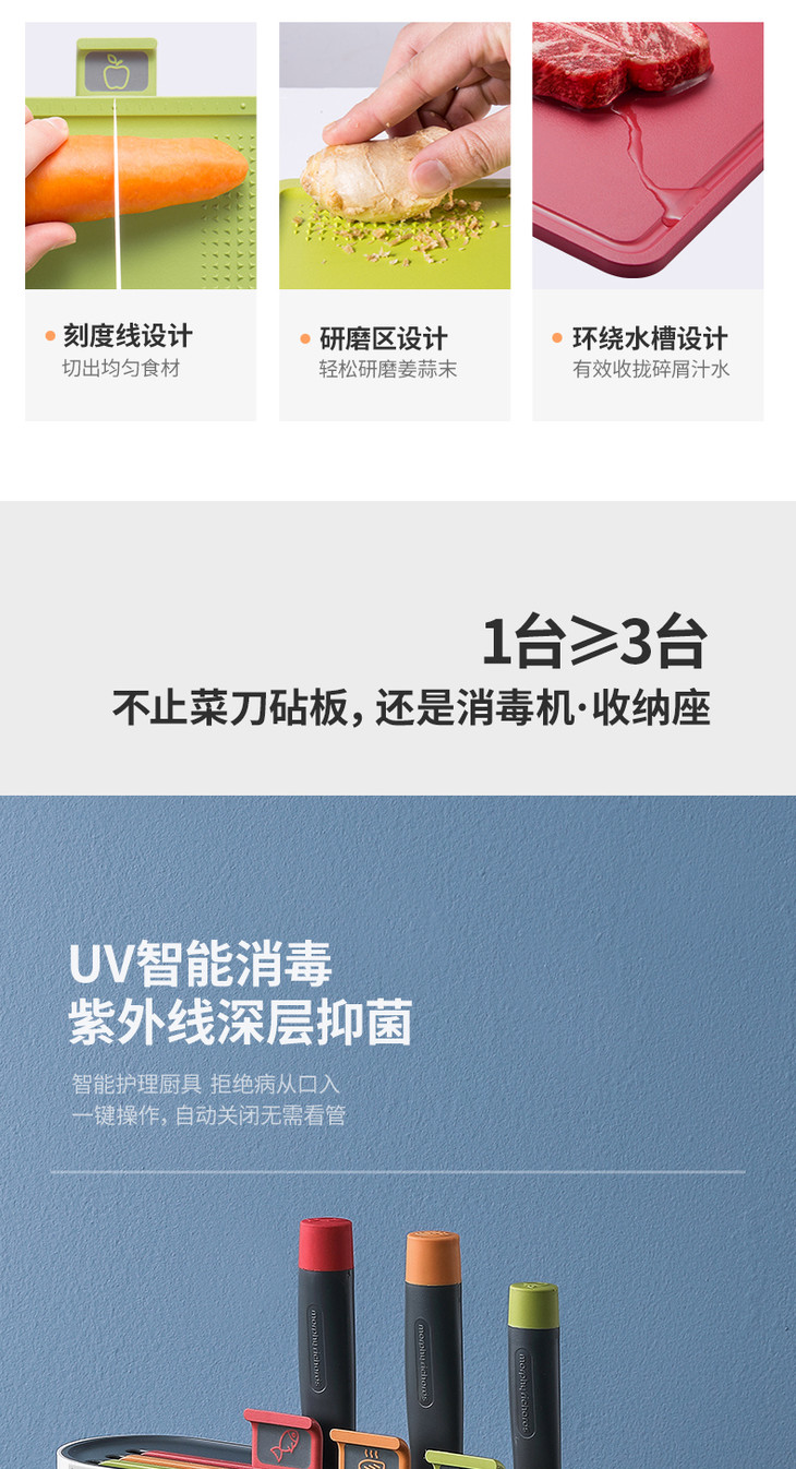 摩飞分类砧板刀具套装 分类菜板案板刀架套装 紫外线杀菌 MR1000
