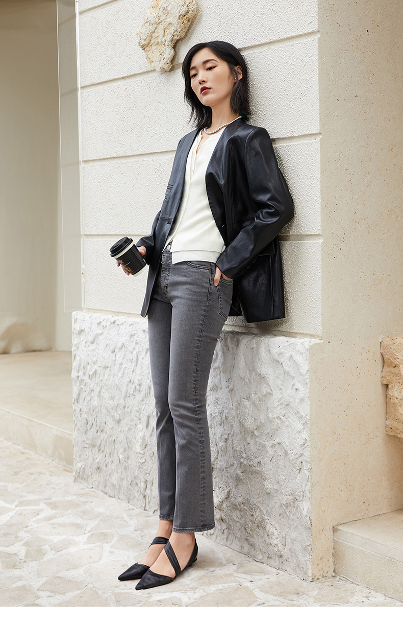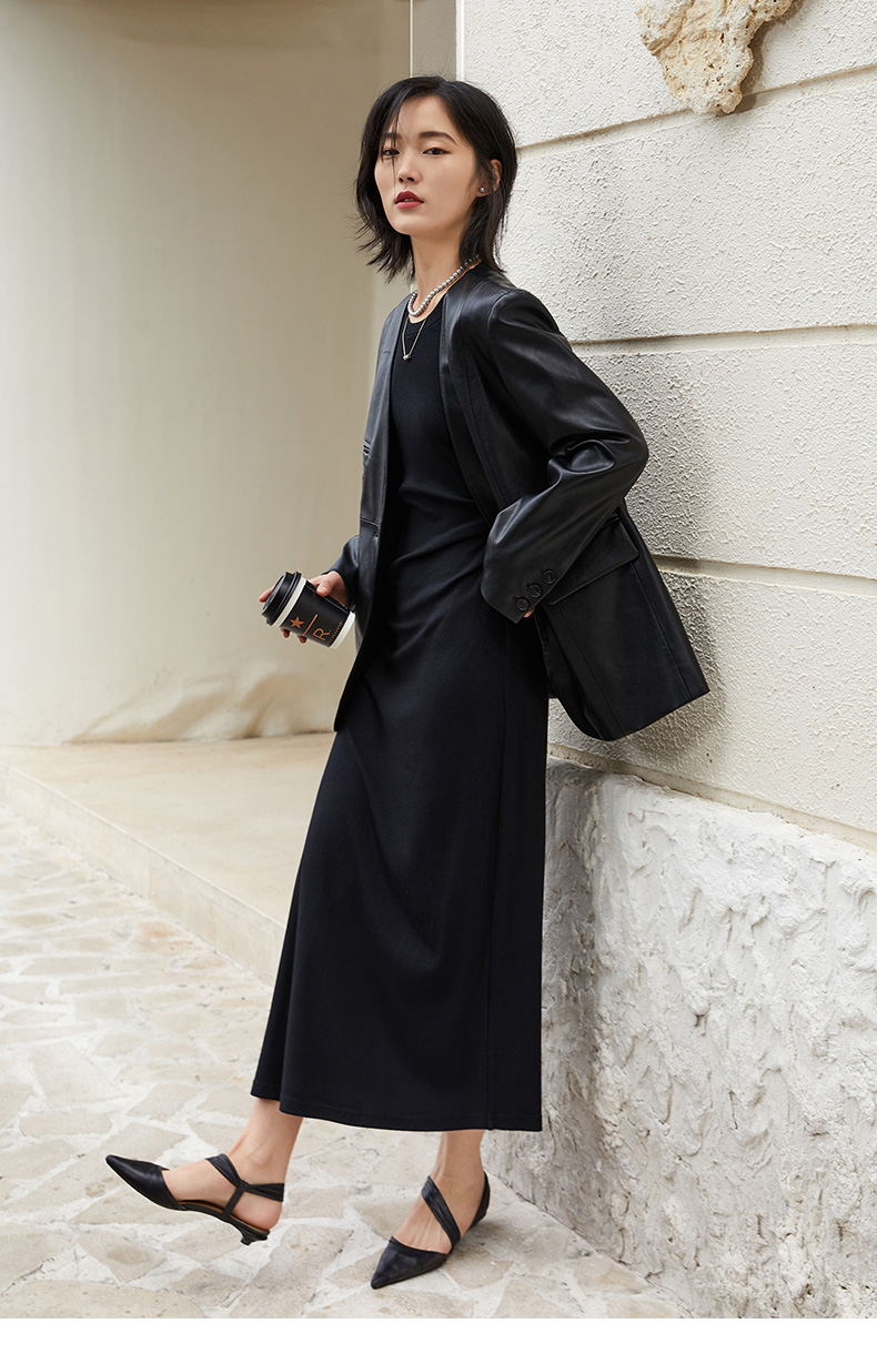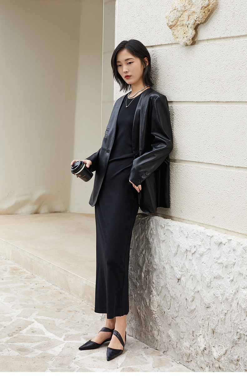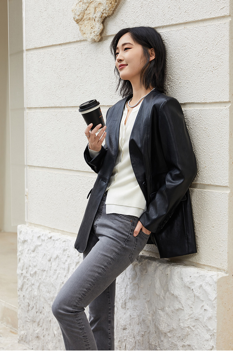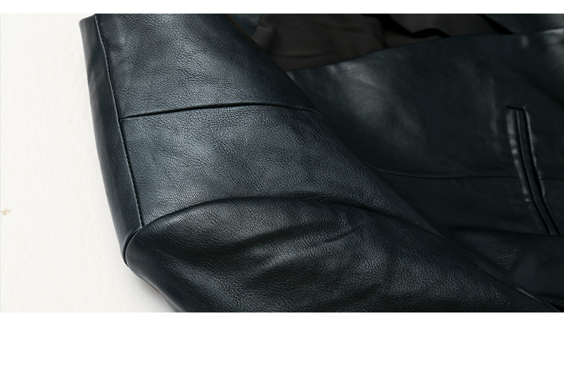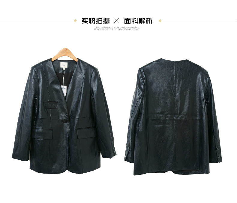 酷飒担当!V 领黑色 pu 皮西装外套 大口袋设计 宽松廓形皮衣