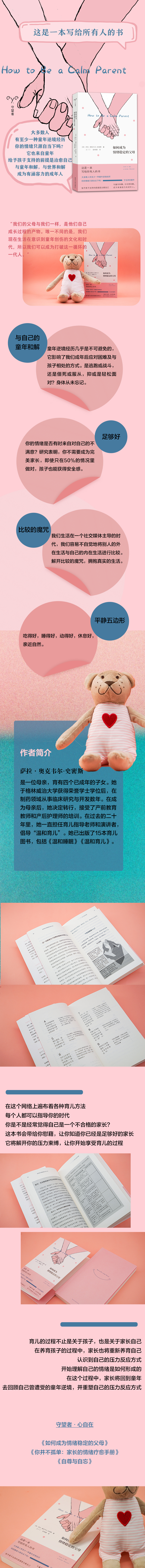 这本书提供了许多实用的方法和练习,远比那些只教人冥想、接触自然或呼吸技巧的书籍更能安抚情绪。它不会像其他育儿书那样让父母觉得自己很失败,作者也没有我读过的其他书籍里那种高高在上的说教感。内容脚踏实地且切合实际,我非常欣赏这位作者的视角、知识储备,以及她为父母提供真实帮助的真诚努力。
