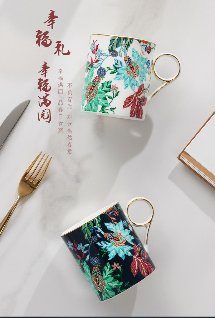 【彼达思】幸福满园茶杯(350ml)蓝