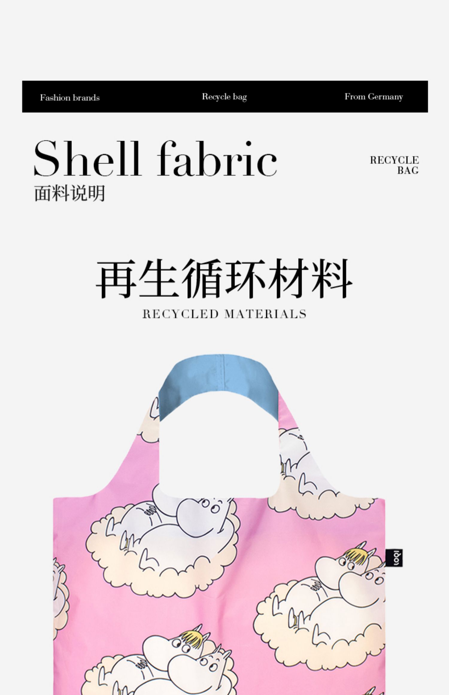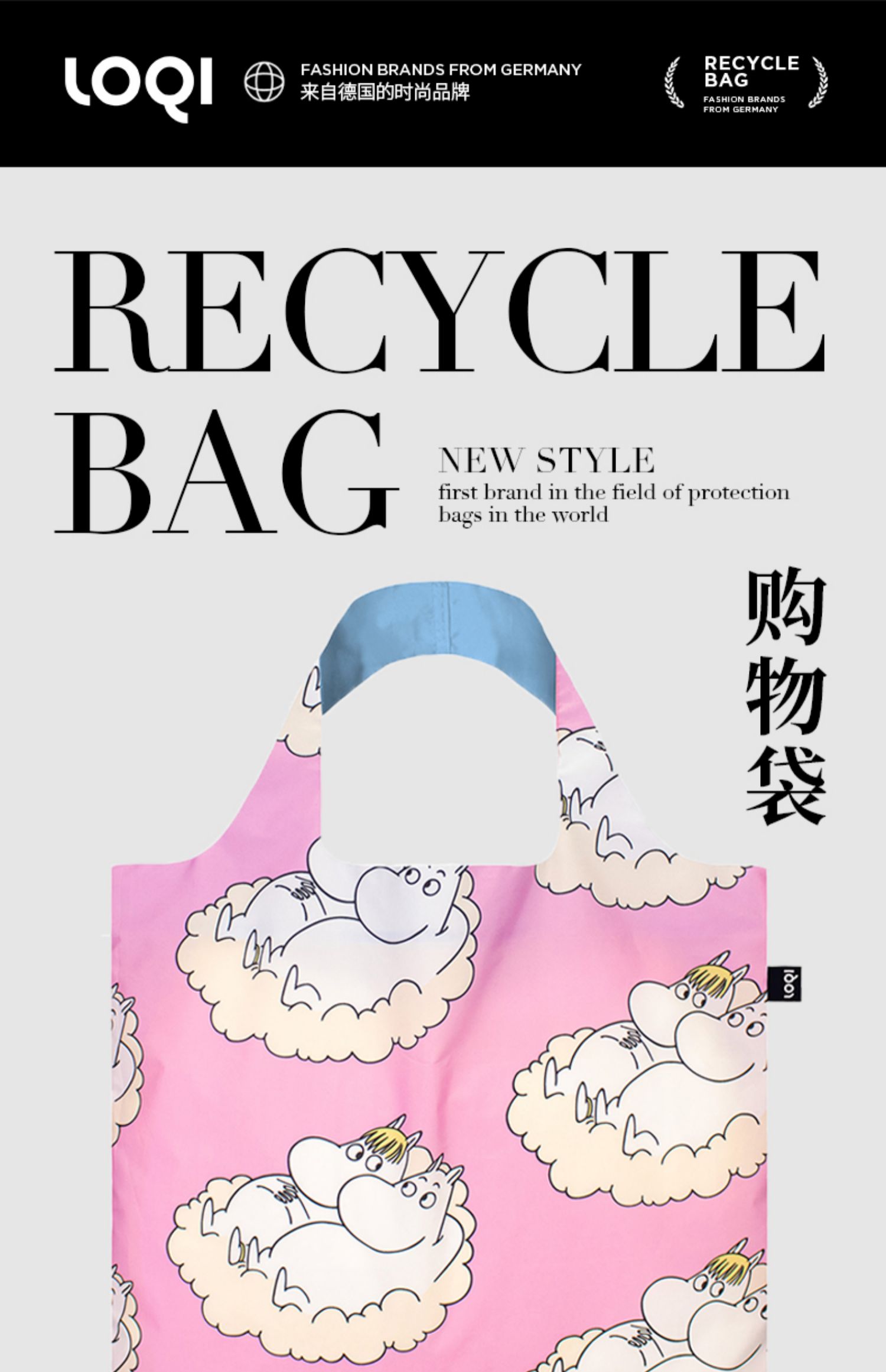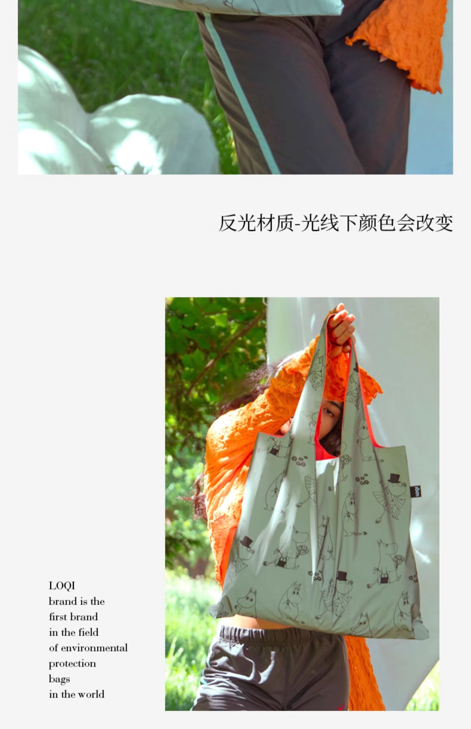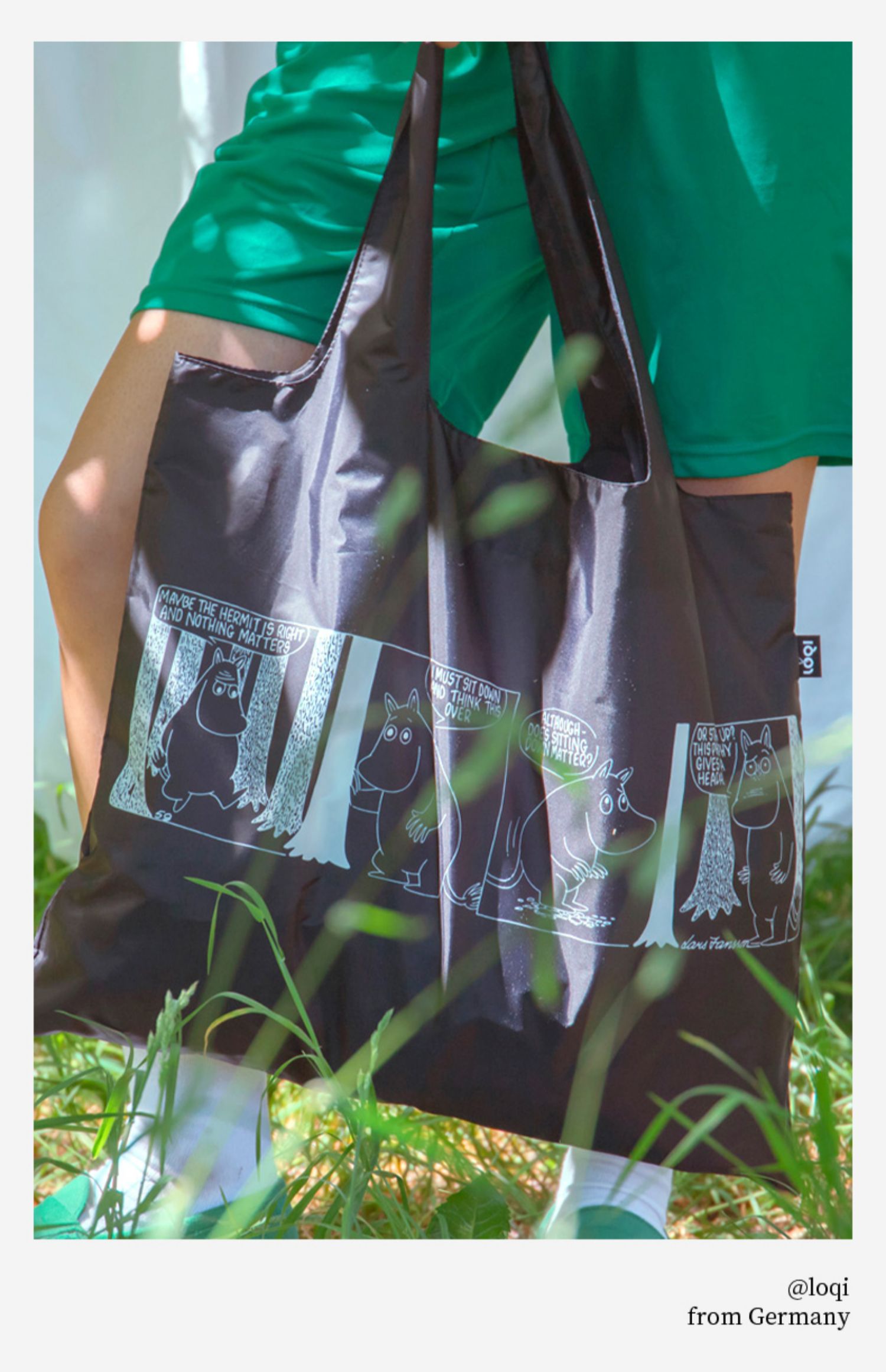 德国LOQI&MOOMIN姆明联名潮流时尚艺术环保万用袋 折叠大容量单肩手提购物袋承重40斤防泼水