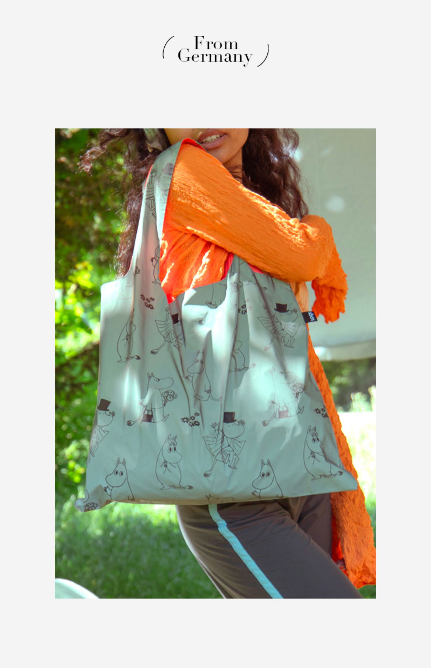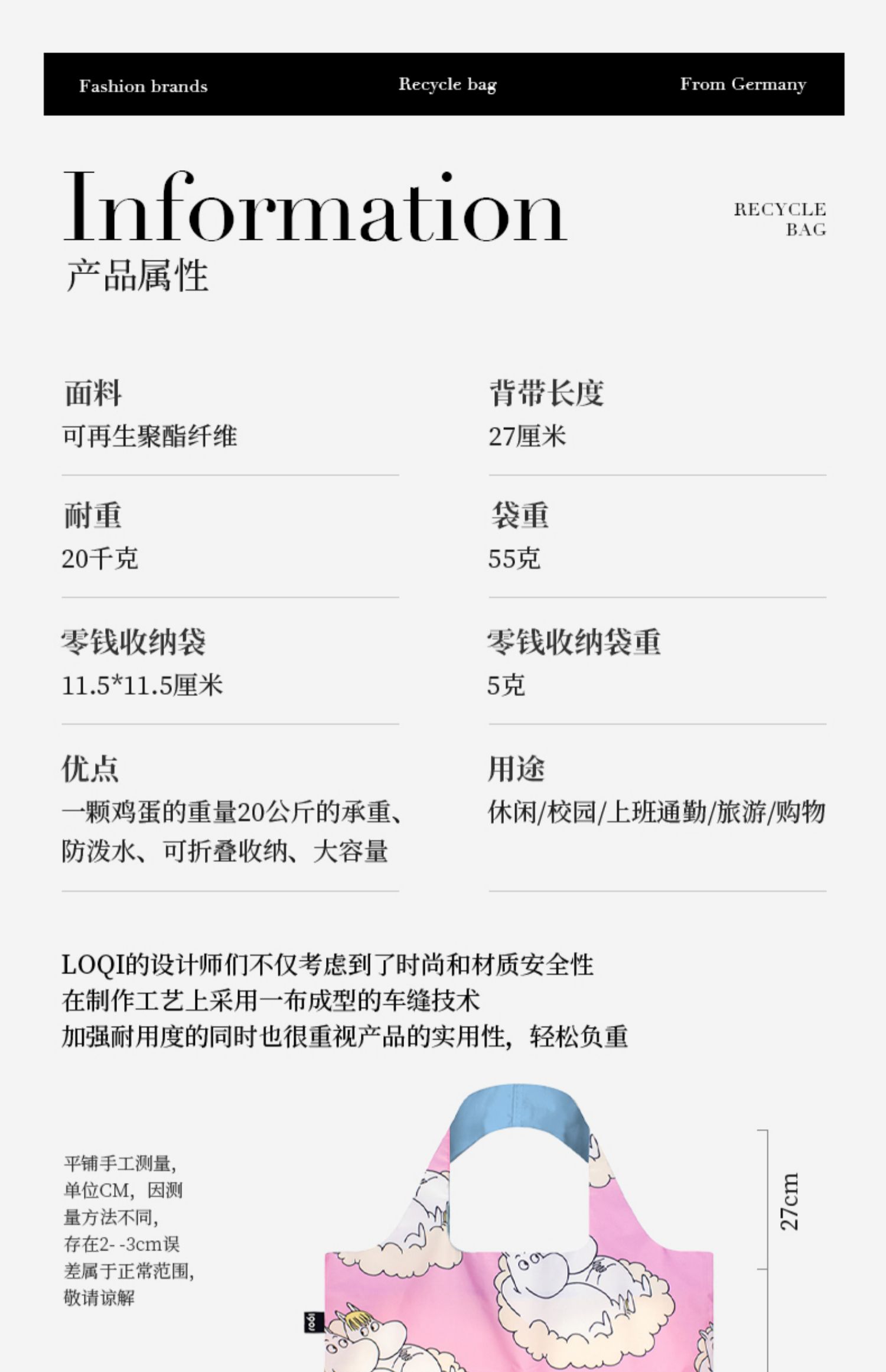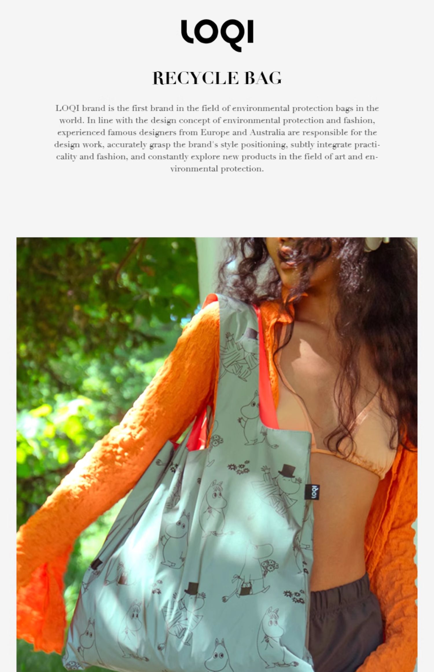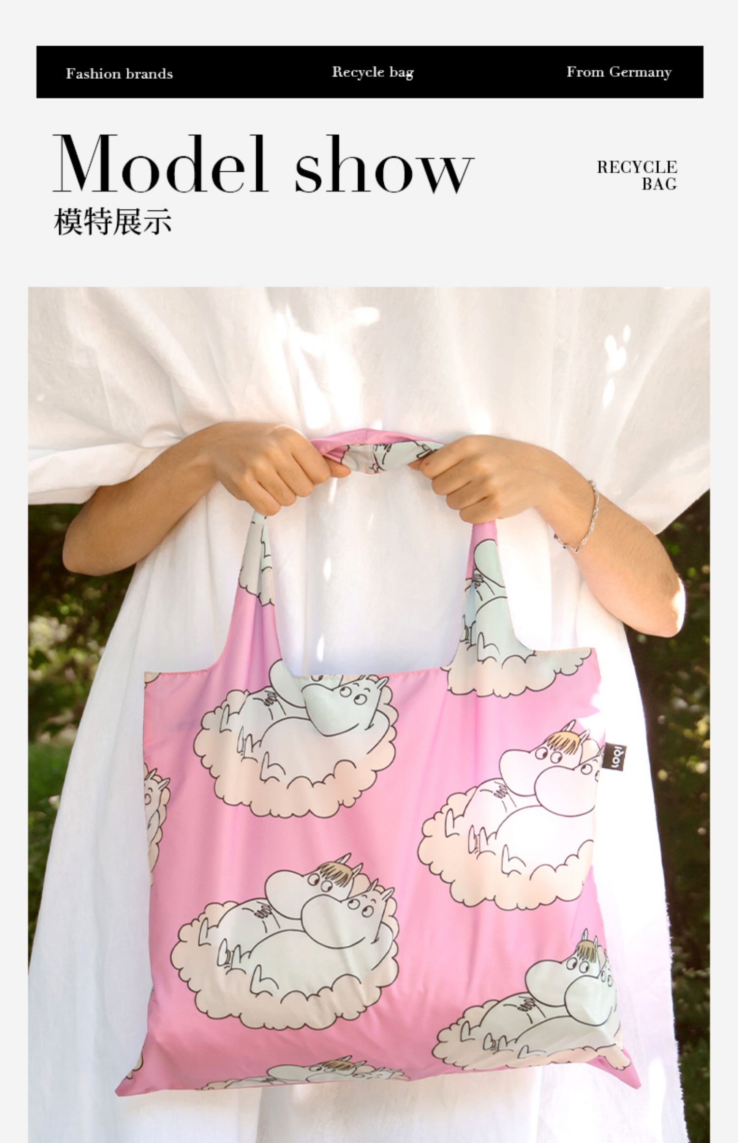 德国LOQI&MOOMIN姆明联名潮流时尚艺术环保万用袋 折叠大容量单肩手提购物袋承重40斤防泼水