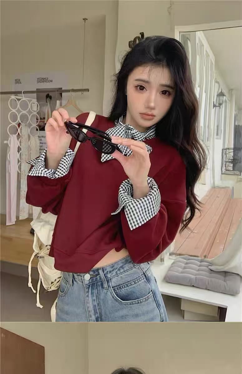 【超值特卖】7125学院风假两件短款卫衣-喜出
