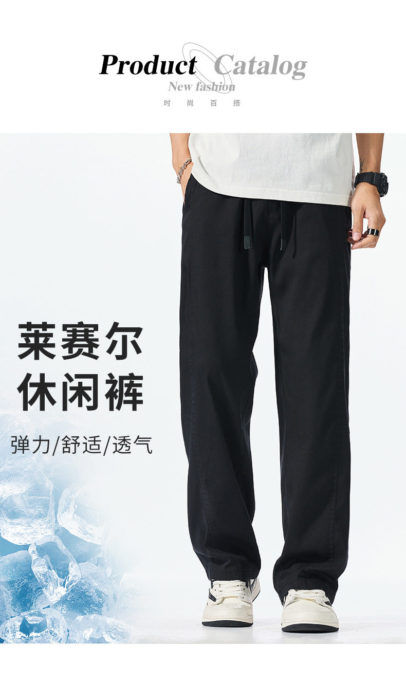 【DYG】大依优型大码男装夏季加长款莱赛尔天丝休闲裤垂感宽松阔腿长裤