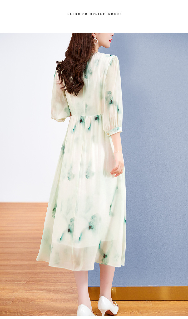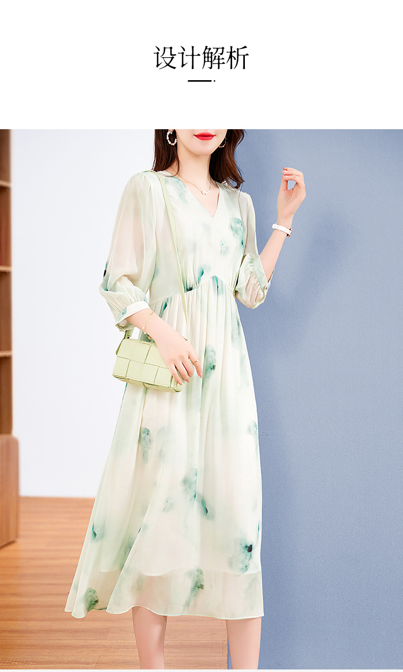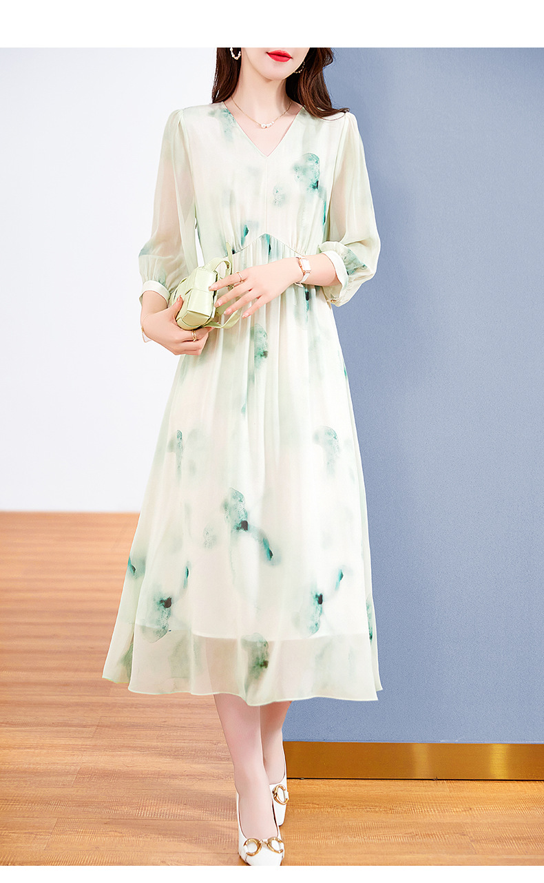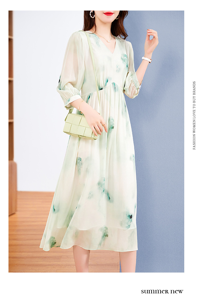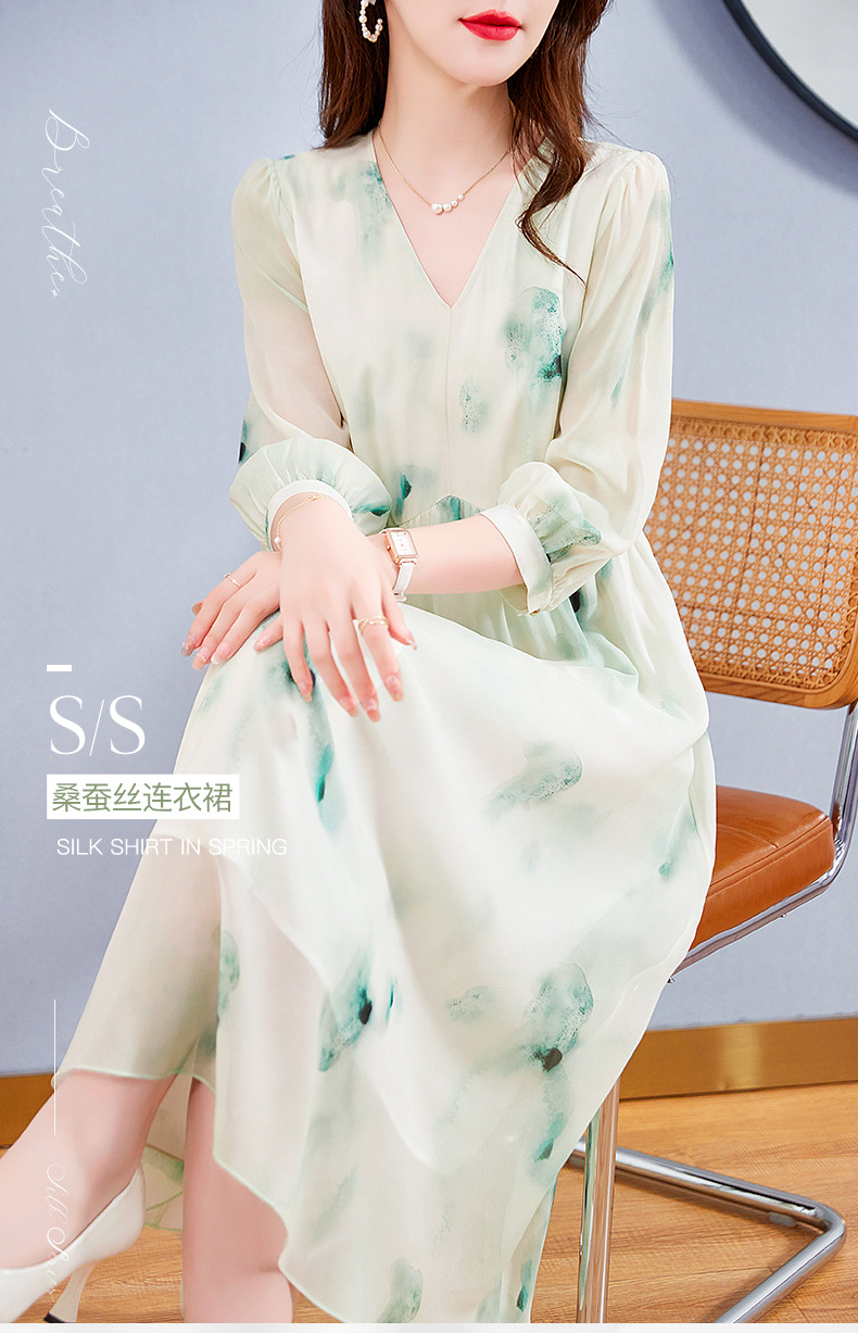 宽松法式仙女薄款,桑蚕丝水墨印花中长裙SM-82395162