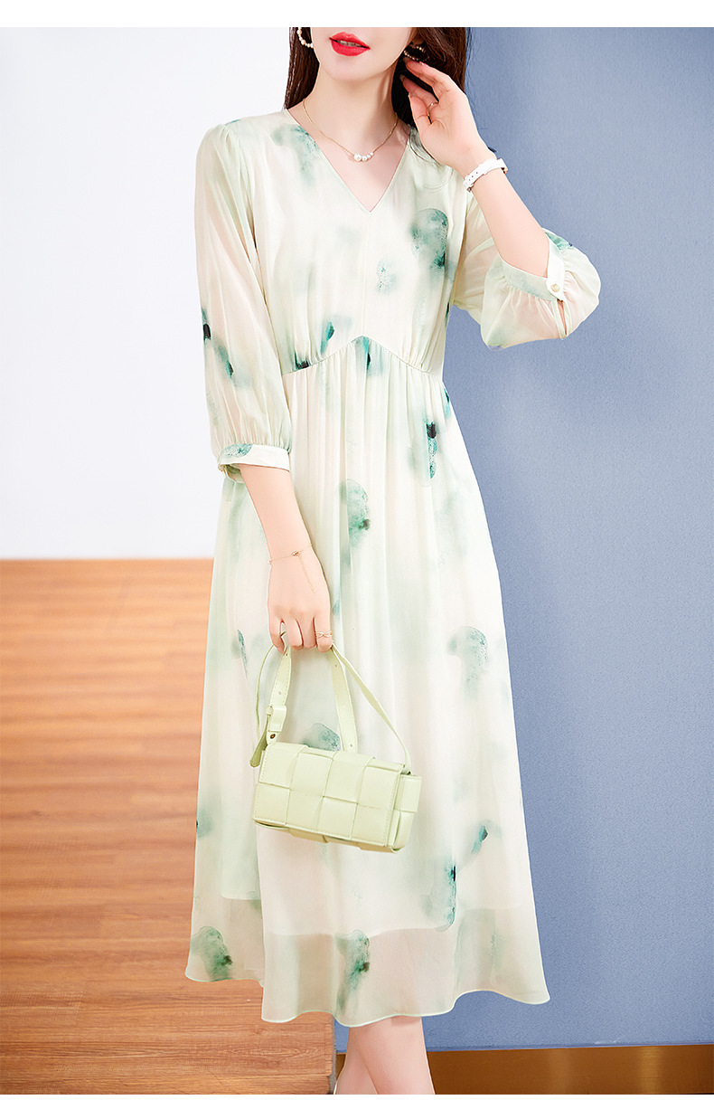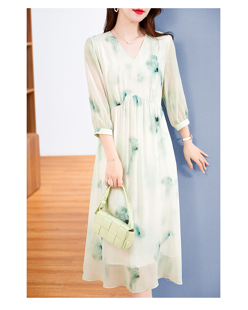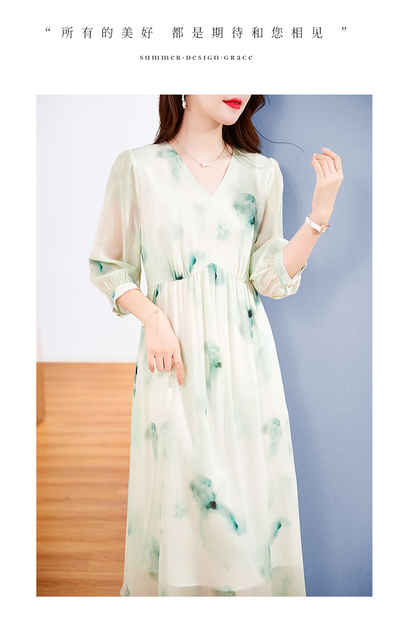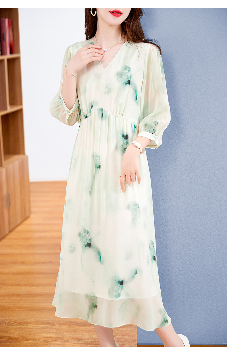 宽松法式仙女薄款,桑蚕丝水墨印花中长裙SM-82395162