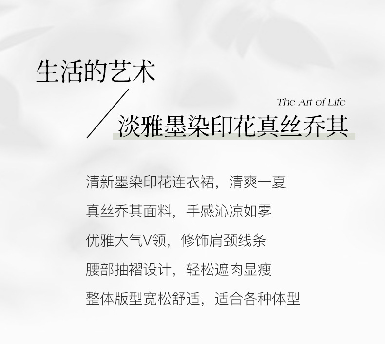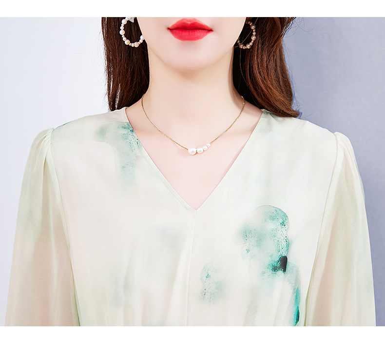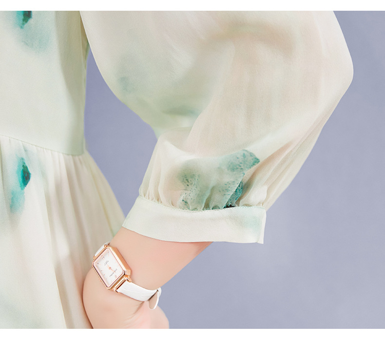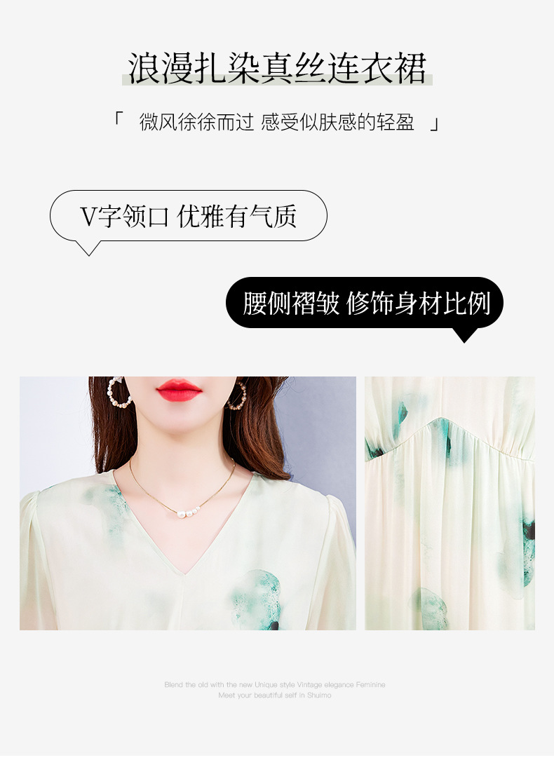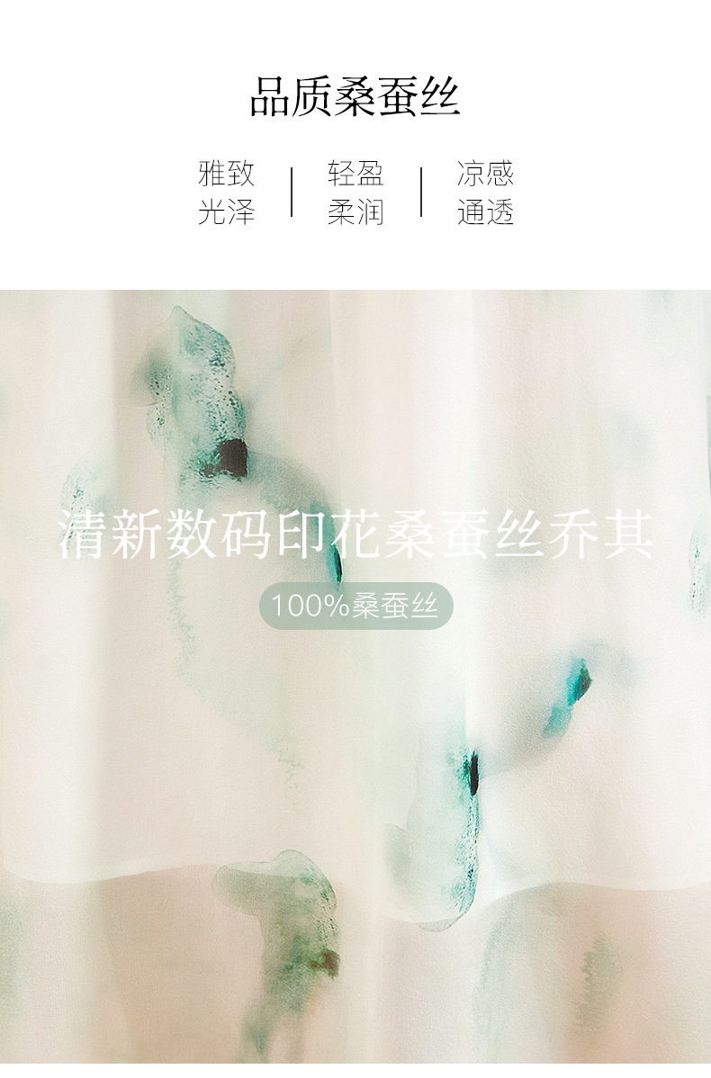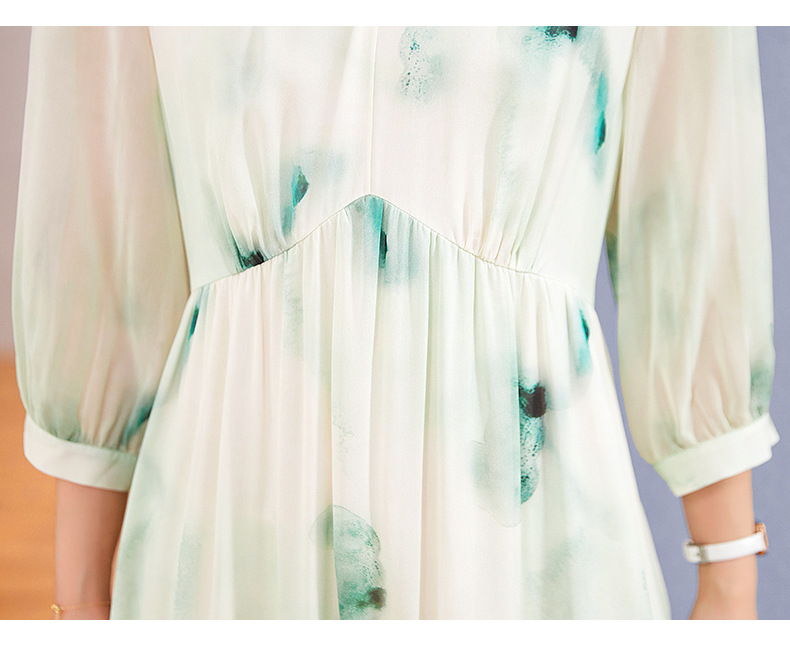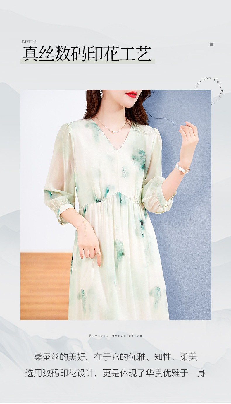 宽松法式仙女薄款,桑蚕丝水墨印花中长裙SM-82395162