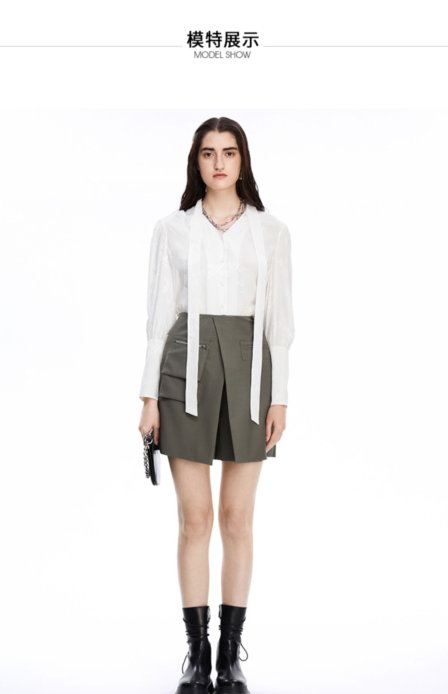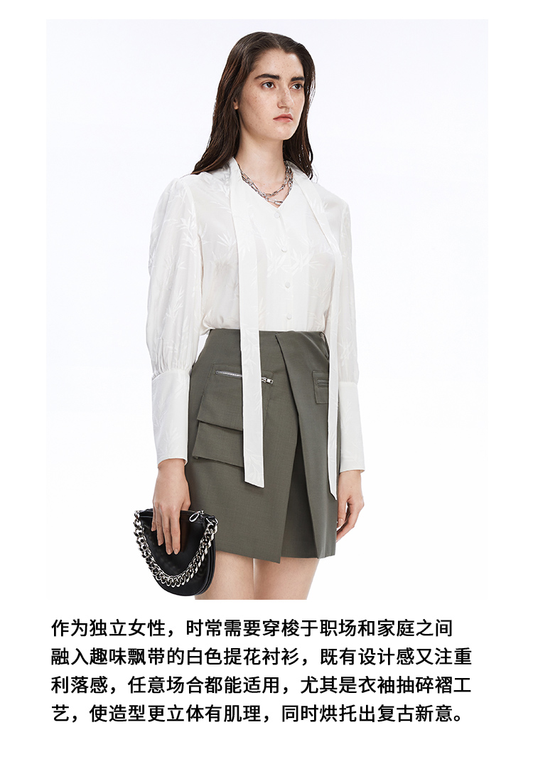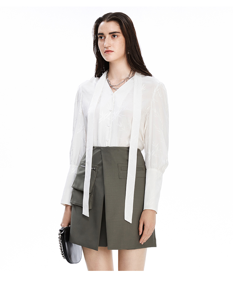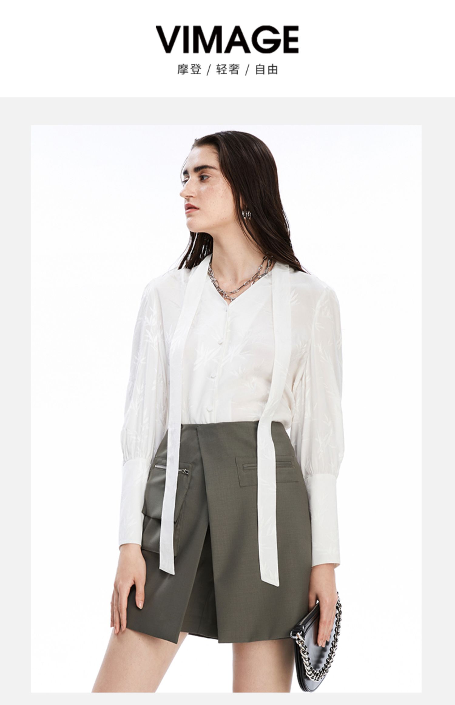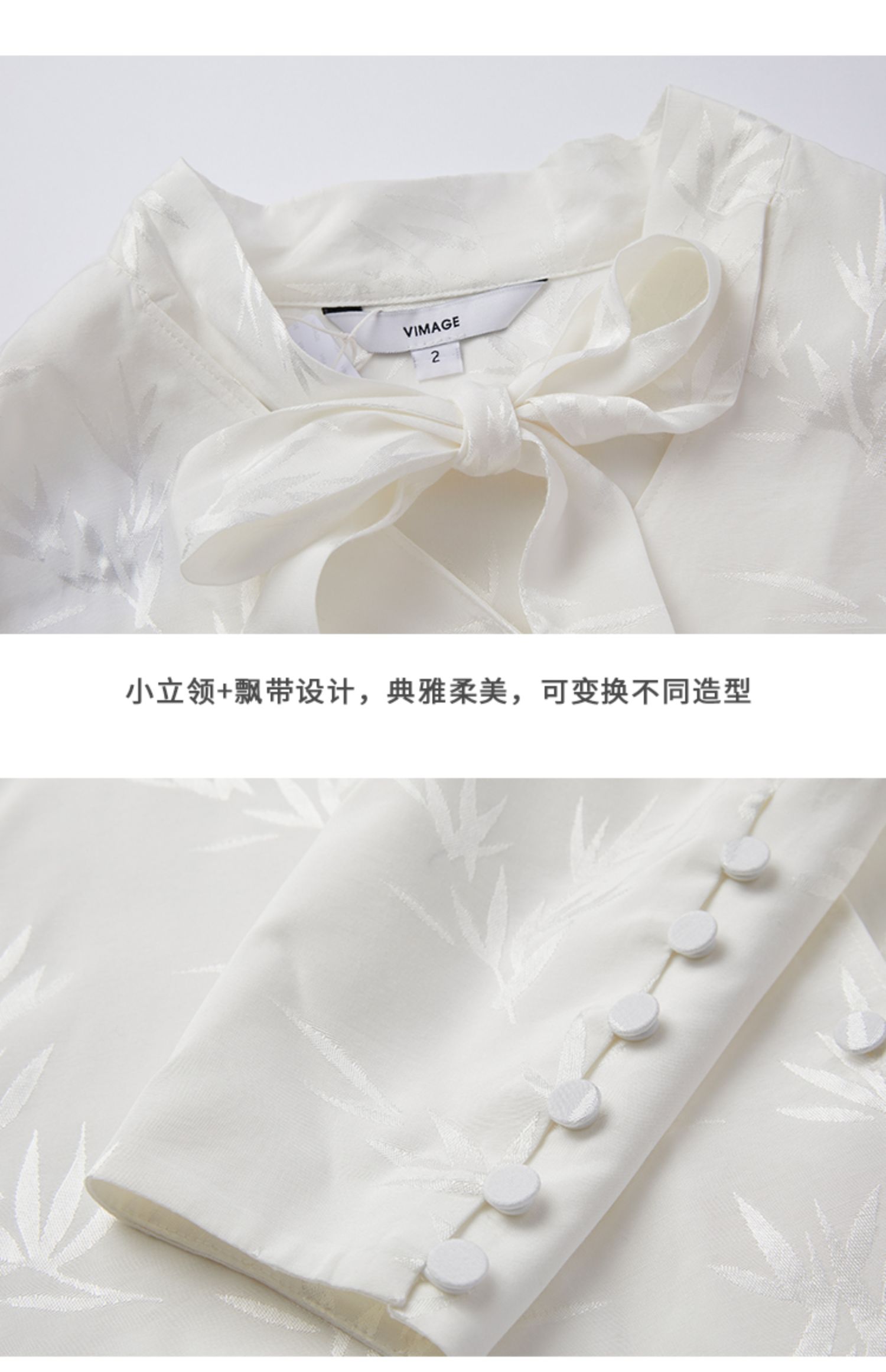 VIMAGE/纬漫纪秋款个性印花飘带宽松遮肉显瘦上衣女V1609202