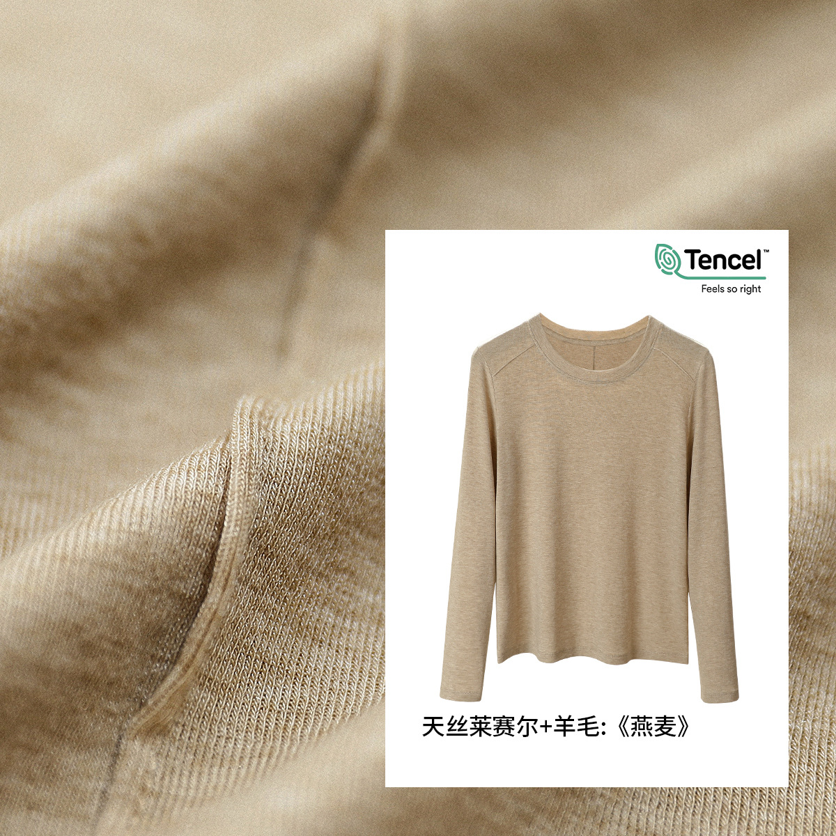 雀说莱赛尔天丝羊毛长袖t恤女显瘦上衣新款内搭鱼骨线打底衫ALM951