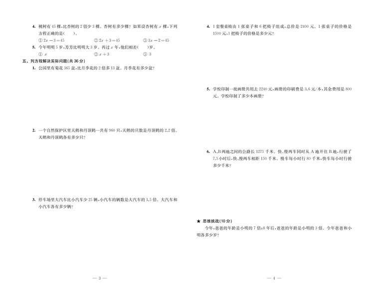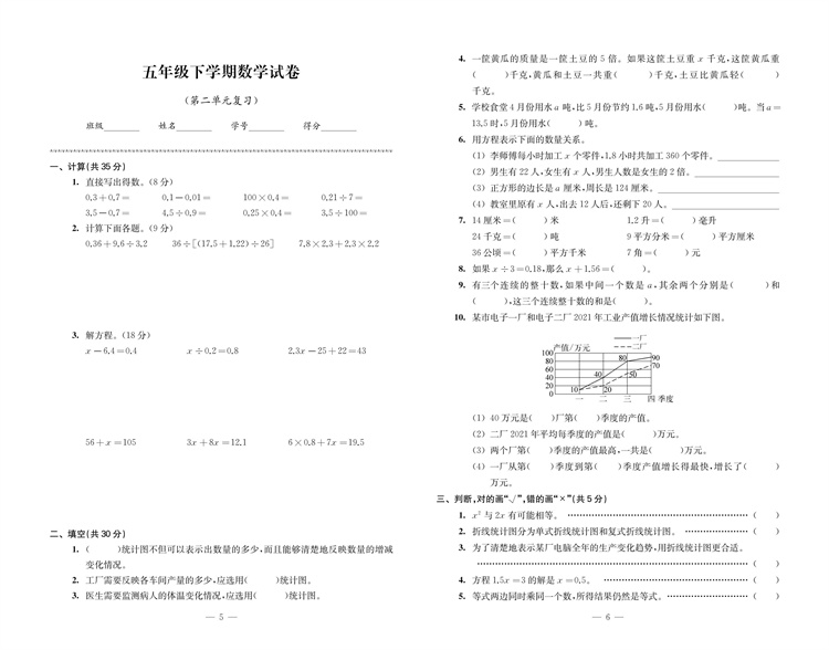 2025年春 小学数学练习与测试检测卷 五年级下册 苏教版 含电子答案 5下 小学教辅试卷 江苏凤凰教育出版社