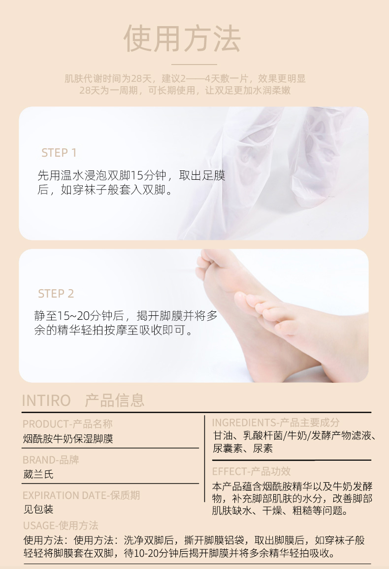 泰国葳兰氏VLANSE烟酰胺牛奶保湿脚膜30ml*6对