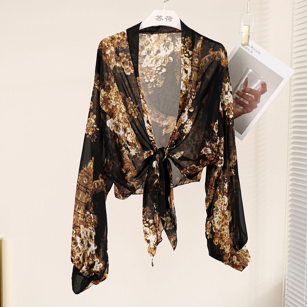 雀说 防晒披肩时尚印花宫廷袖时尚外披