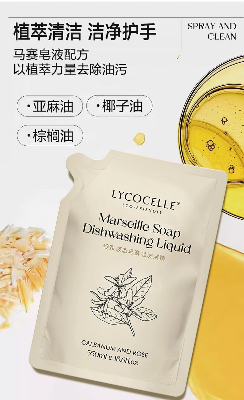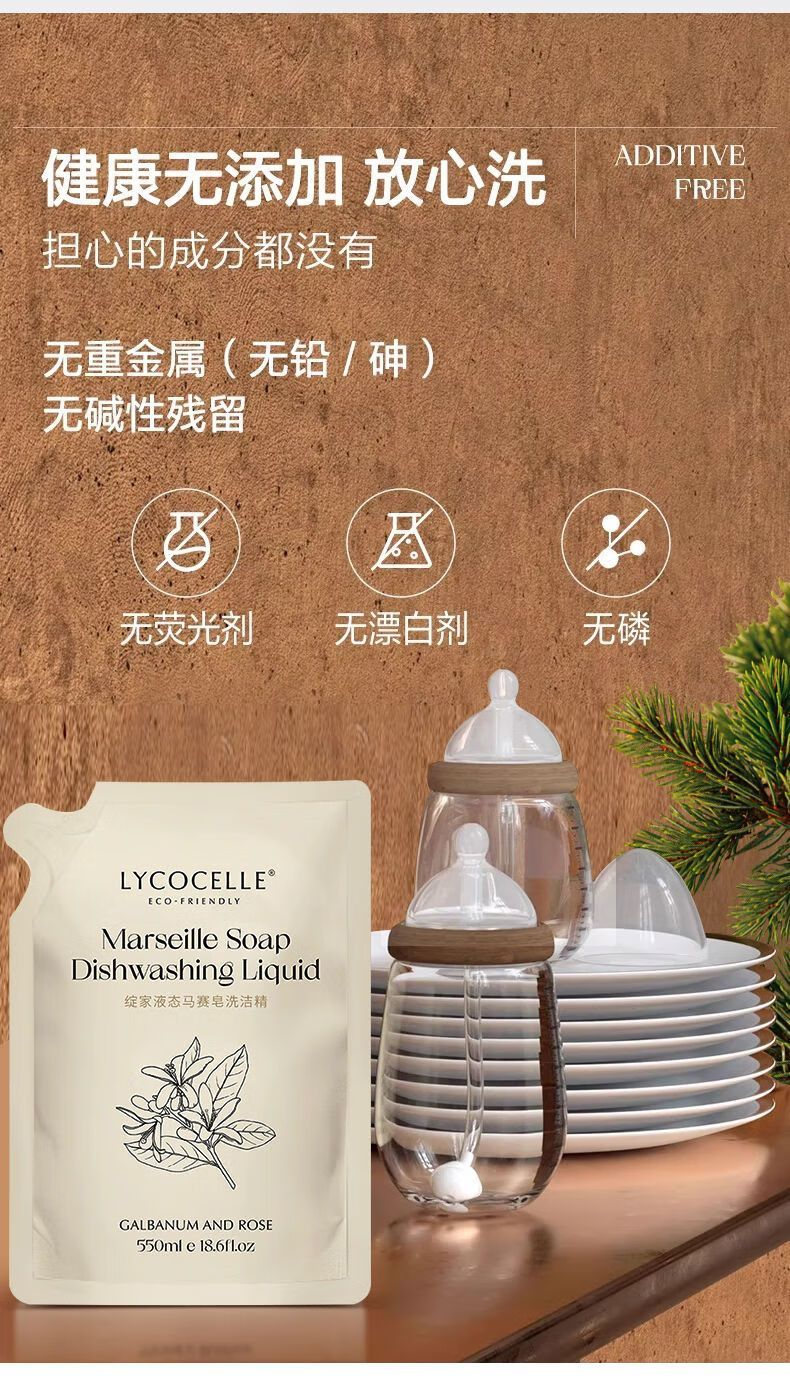 【限量清仓】绽家家用食品级液态马赛皂洗碗液550ml 补充装