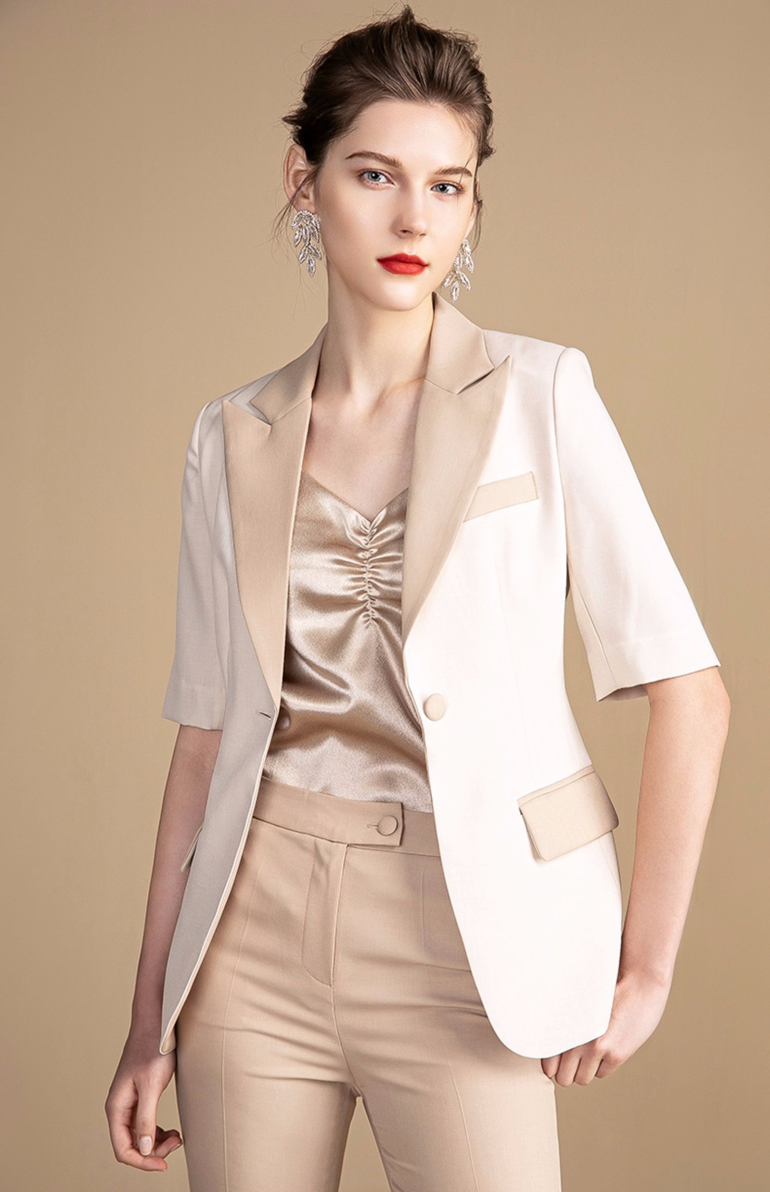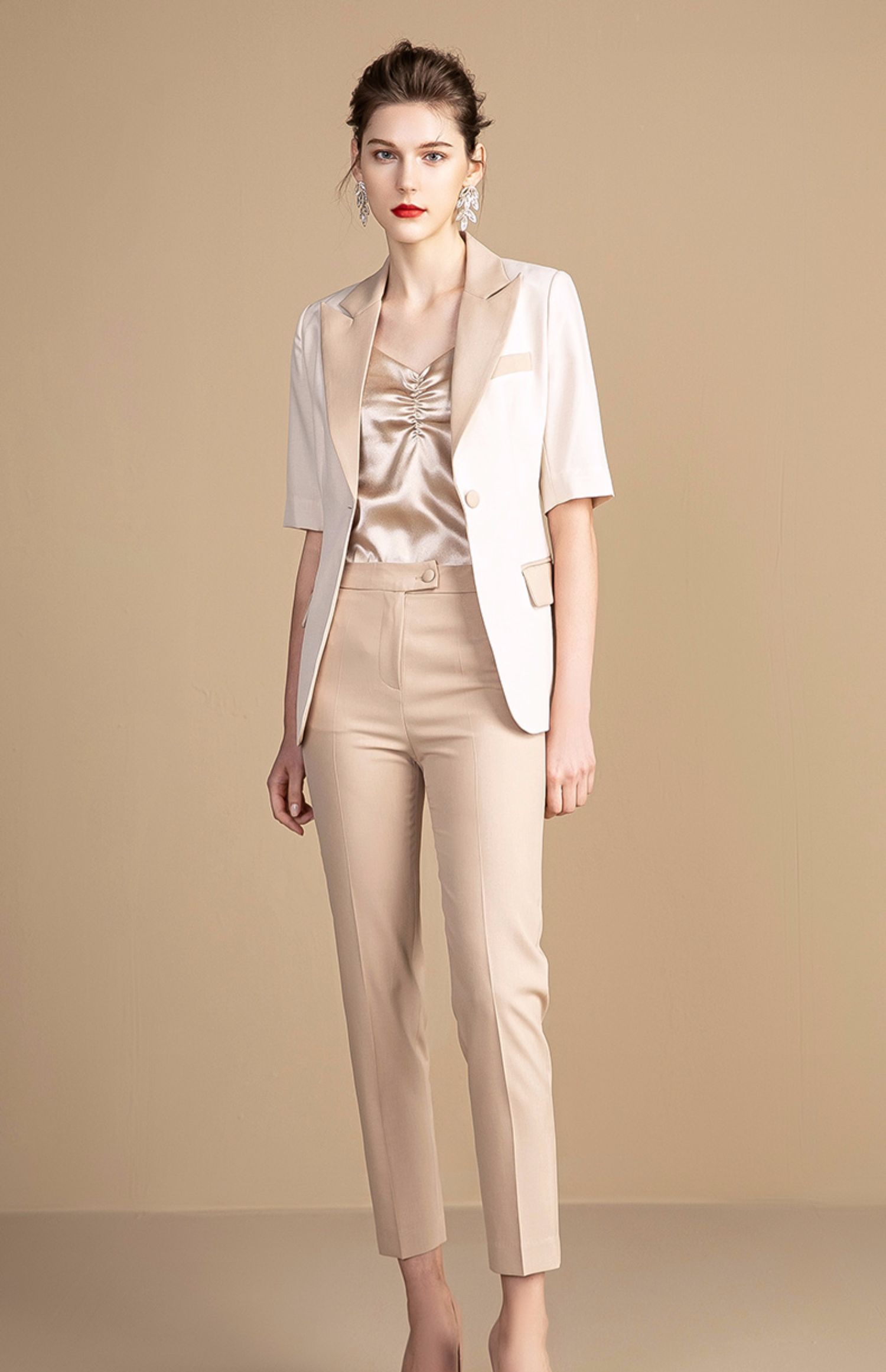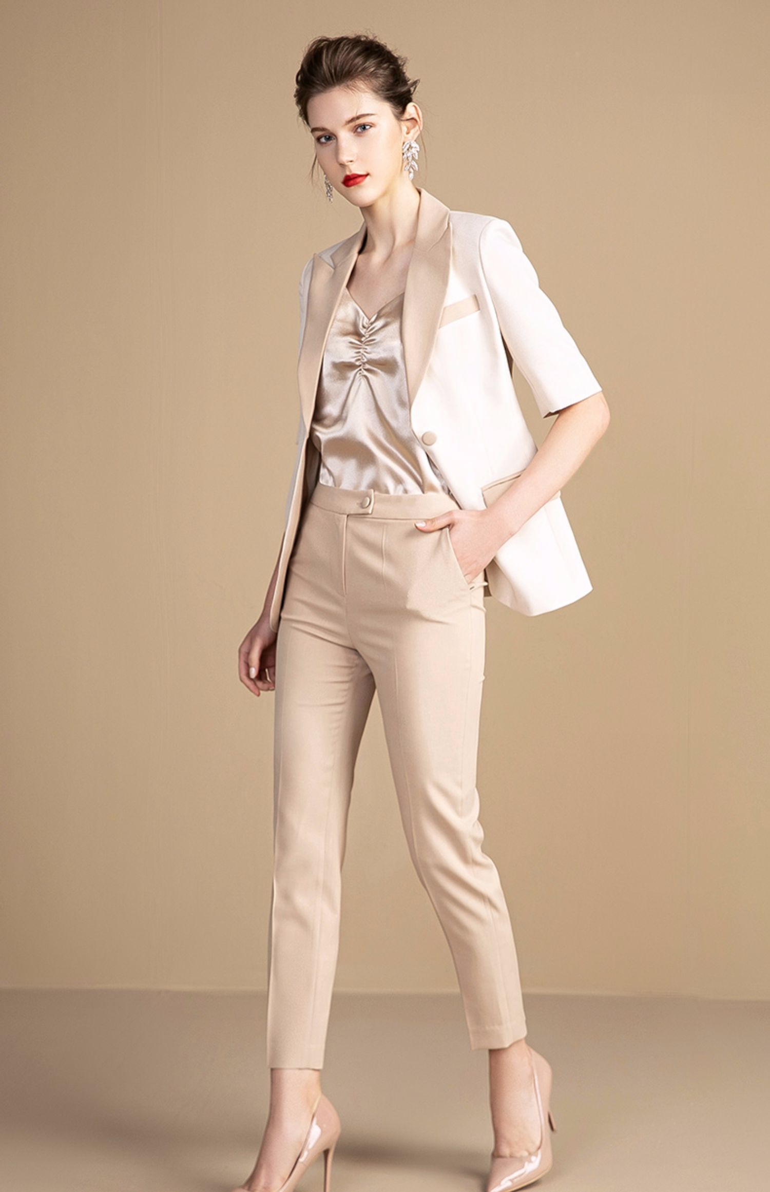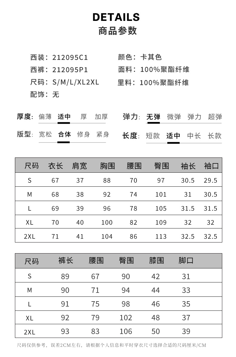 IWY/职业套装西装外套女卡其色小西装外套女时尚套装气质修身 212095C1+212095P1