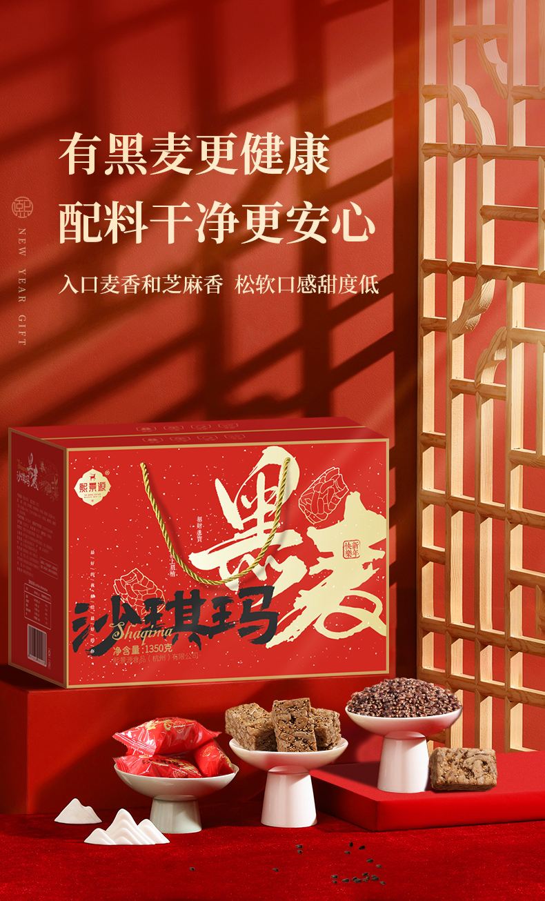 熙景源黑麦沙琪玛新年年货礼盒礼品过年送礼走亲戚送长辈健康零食