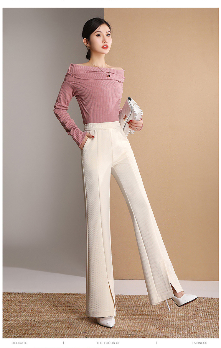 2022春秋新款拖地裤垂感高腰开叉直筒长裤 AL8208