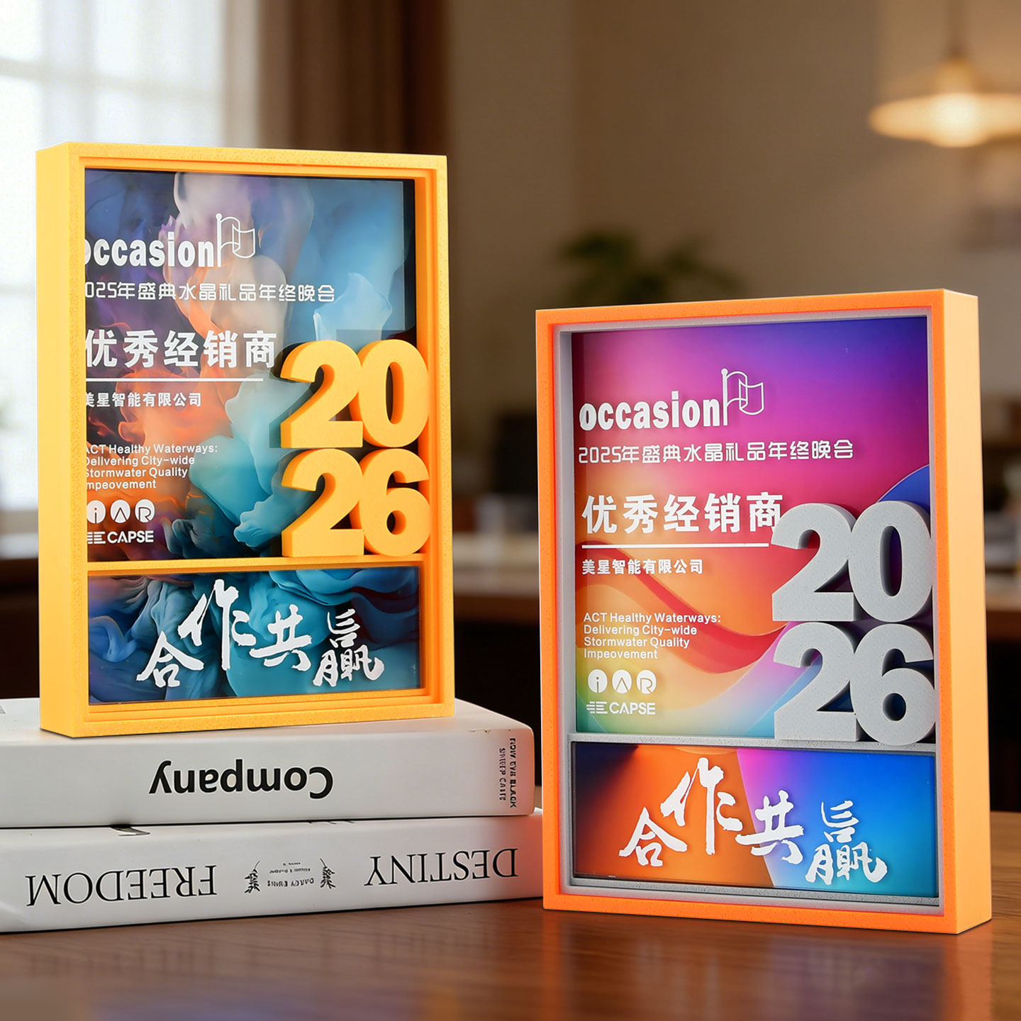 奖杯定制定做水晶授权牌经销商年会优秀员工刻字新款创意高端奖牌