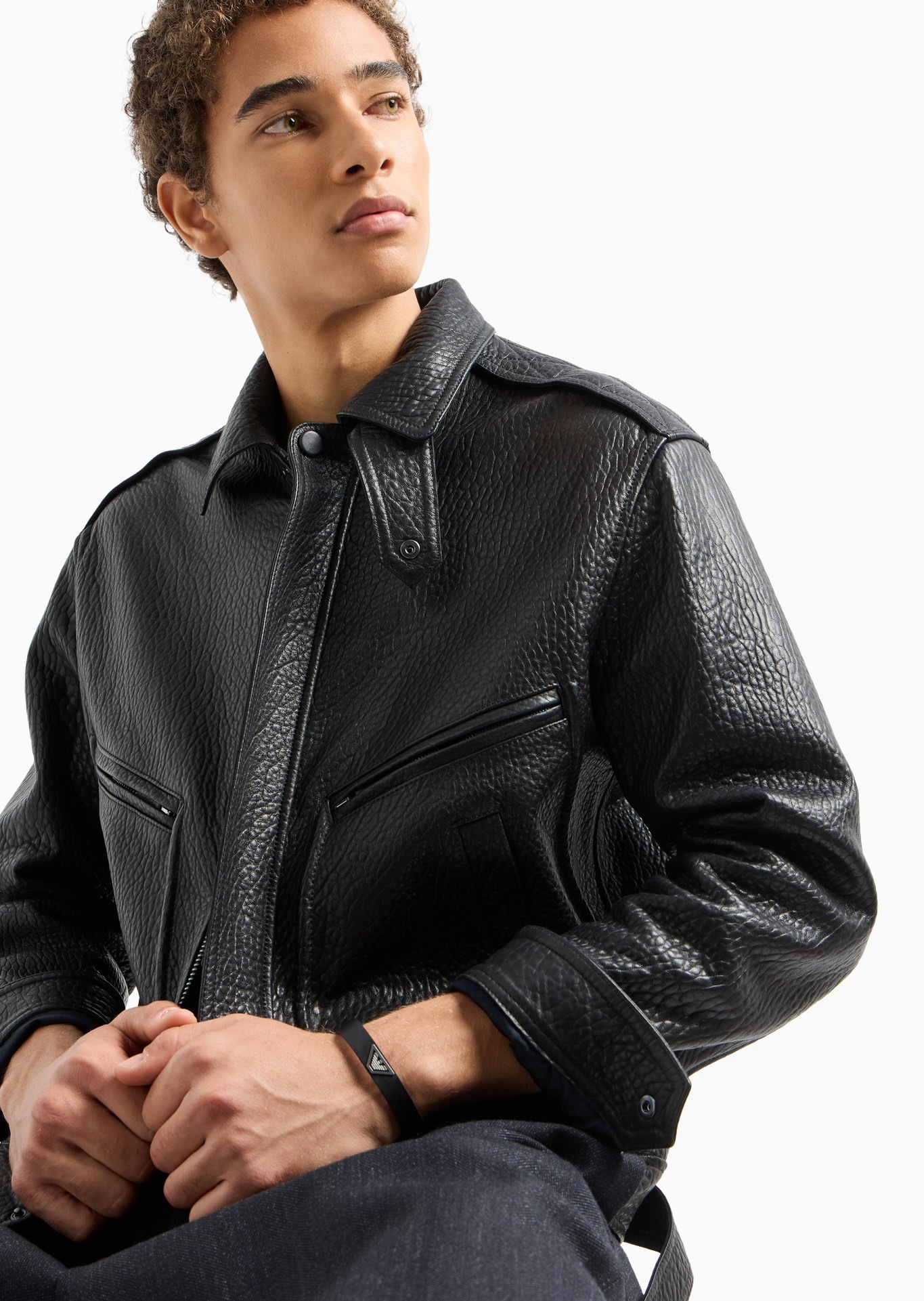 就三条,自留一条!新品 EMPORIO ARMANI 简约牛皮 不锈钢品牌鹰标手环