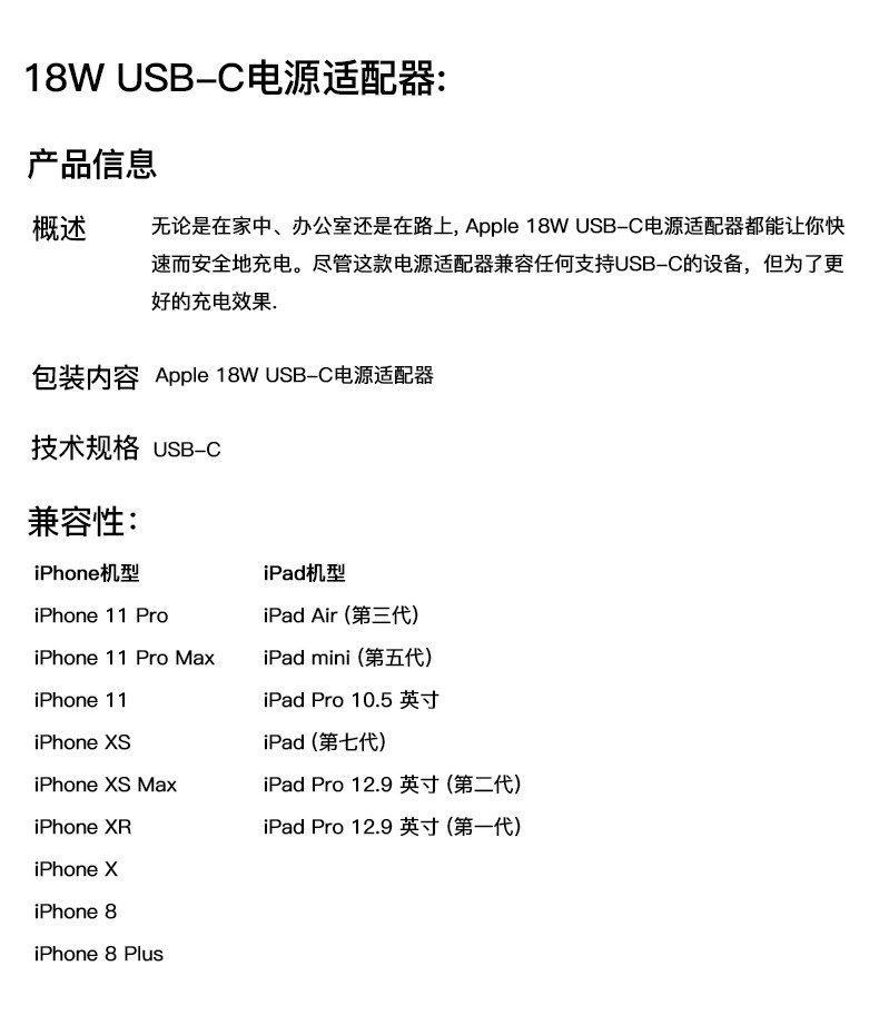 3、快充支持苹果8代以后的机型。8代以前机型也可用,只有ipad 12w充电器的速度。