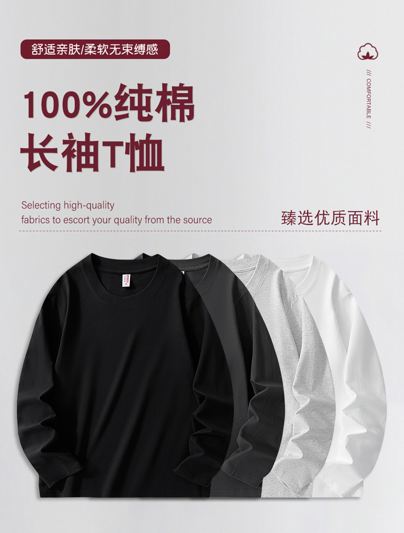 笙观相沐230克纯棉长袖T恤 正肩设计 立体裁切版型 亲肤舒适