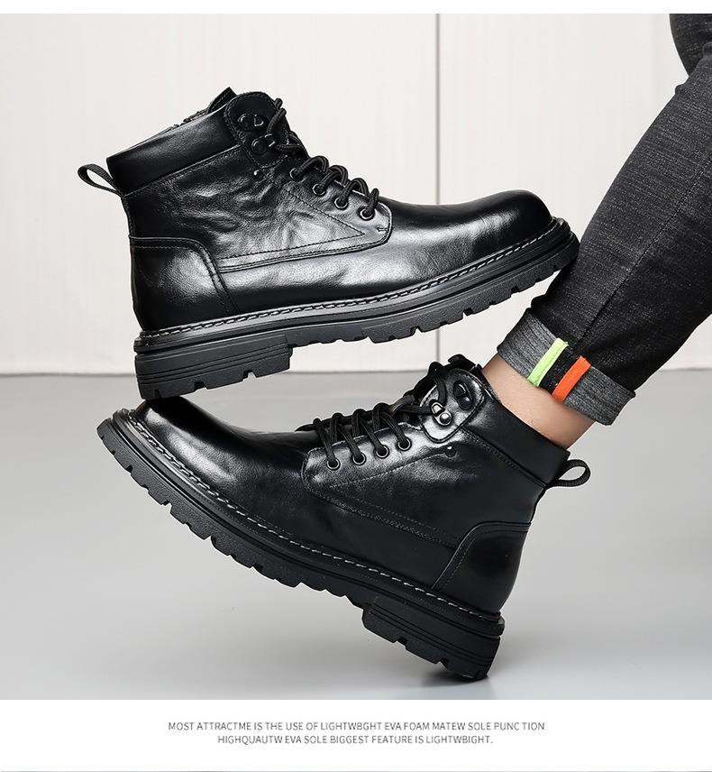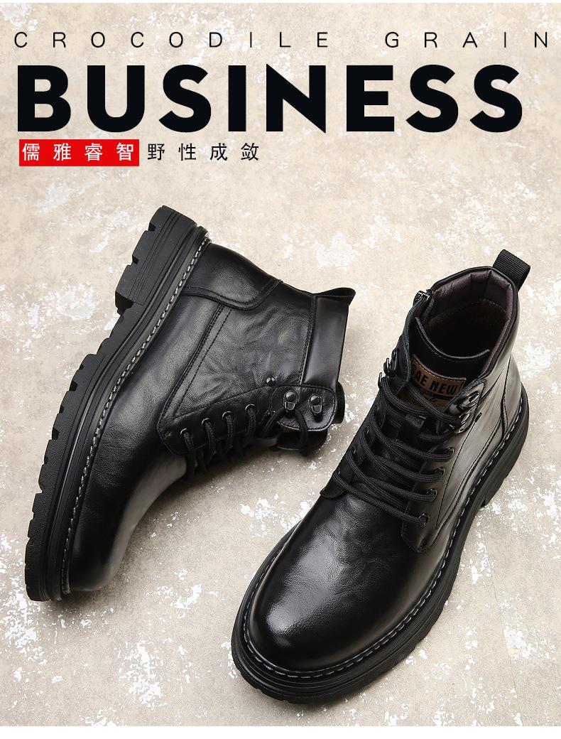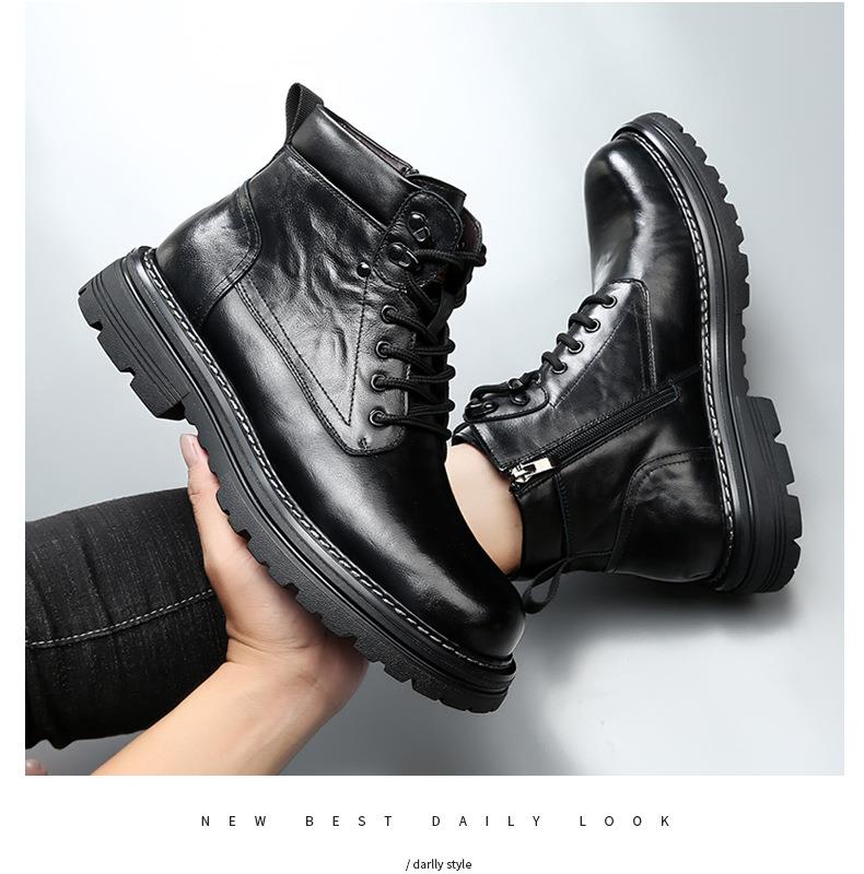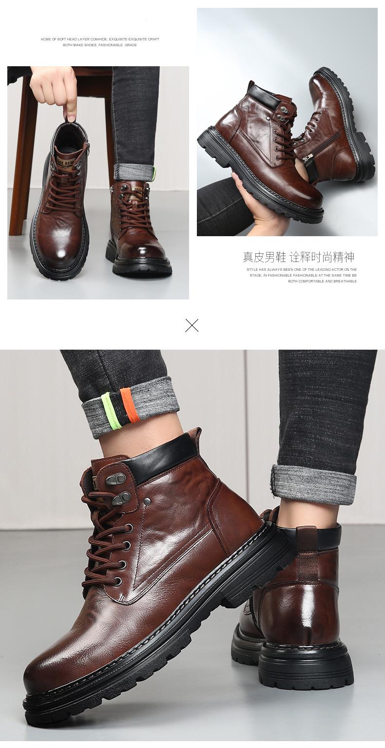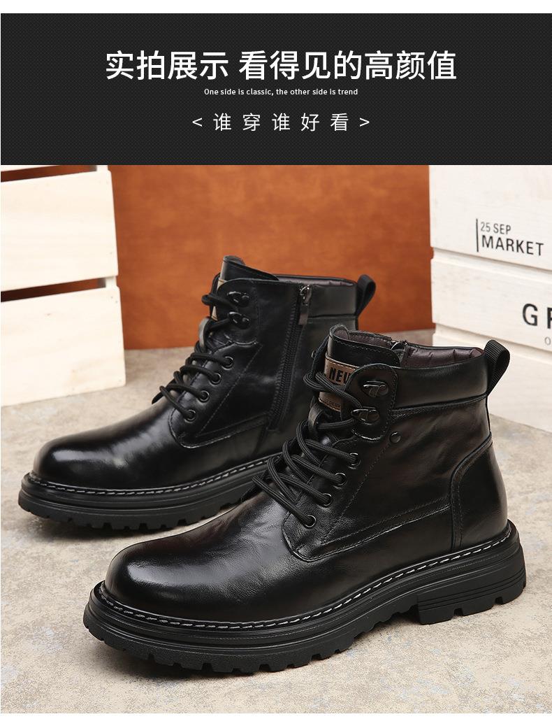 马丁靴男士潮款冬季外穿头层牛皮工装靴男式防滑厚底加绒保暖男鞋