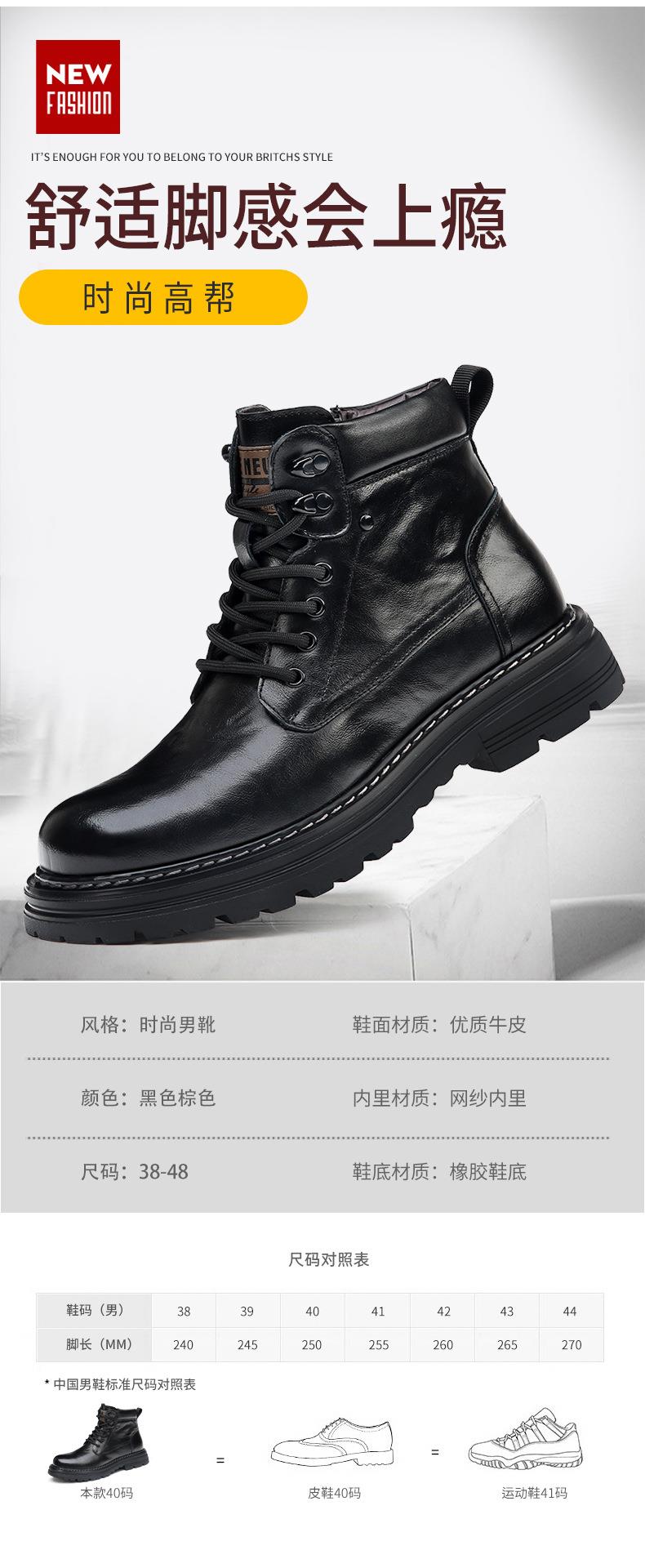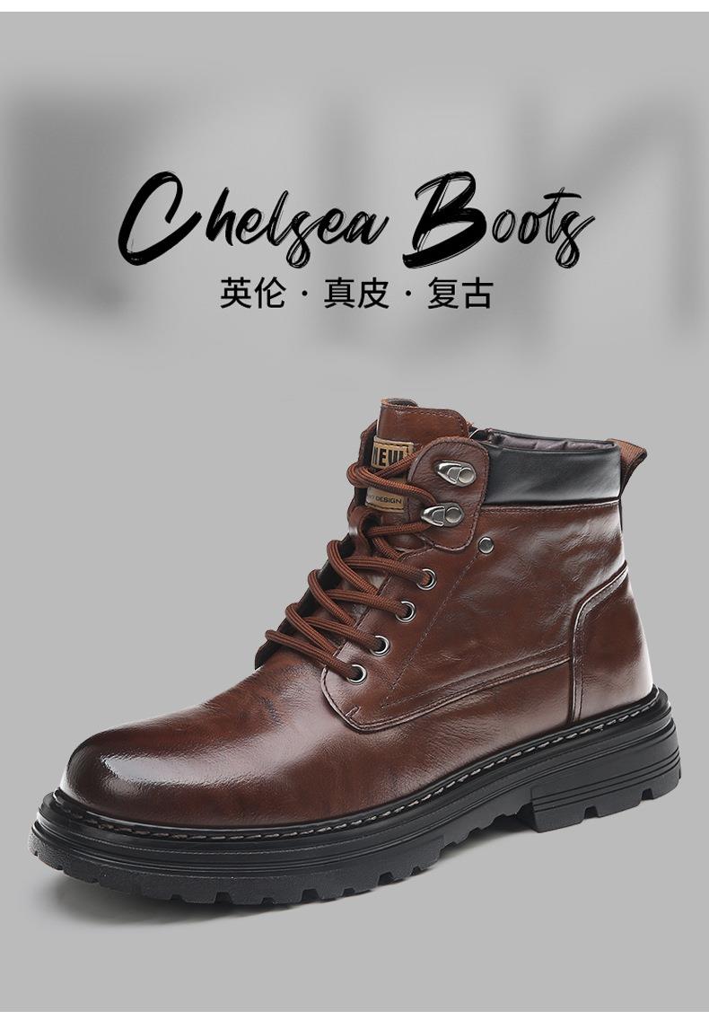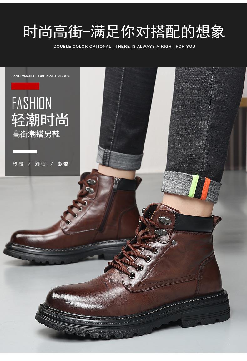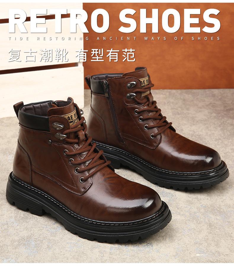 马丁靴男士潮款冬季外穿头层牛皮工装靴男式防滑厚底加绒保暖男鞋