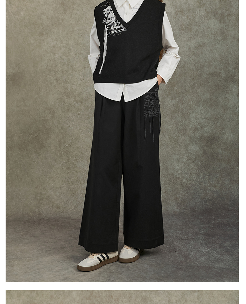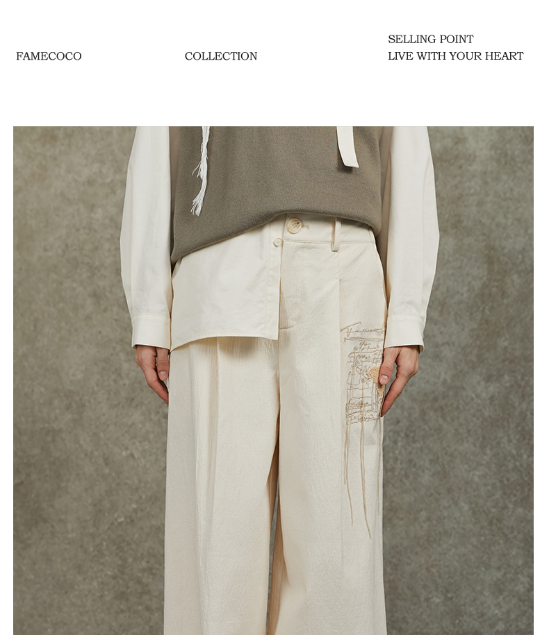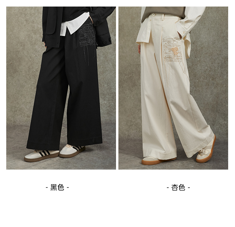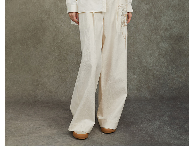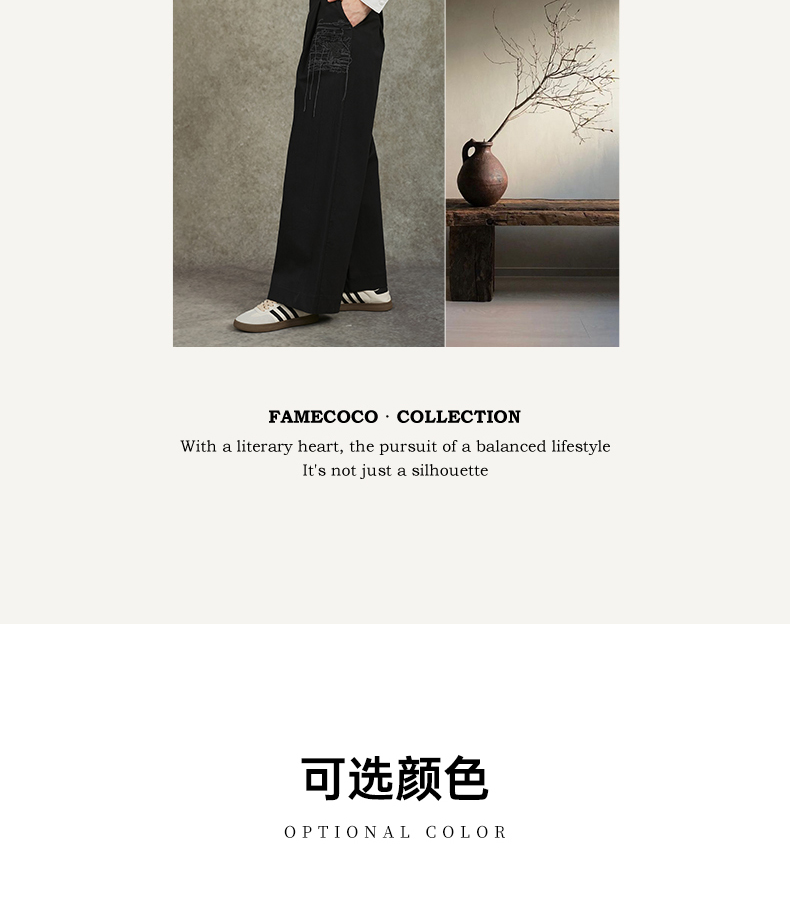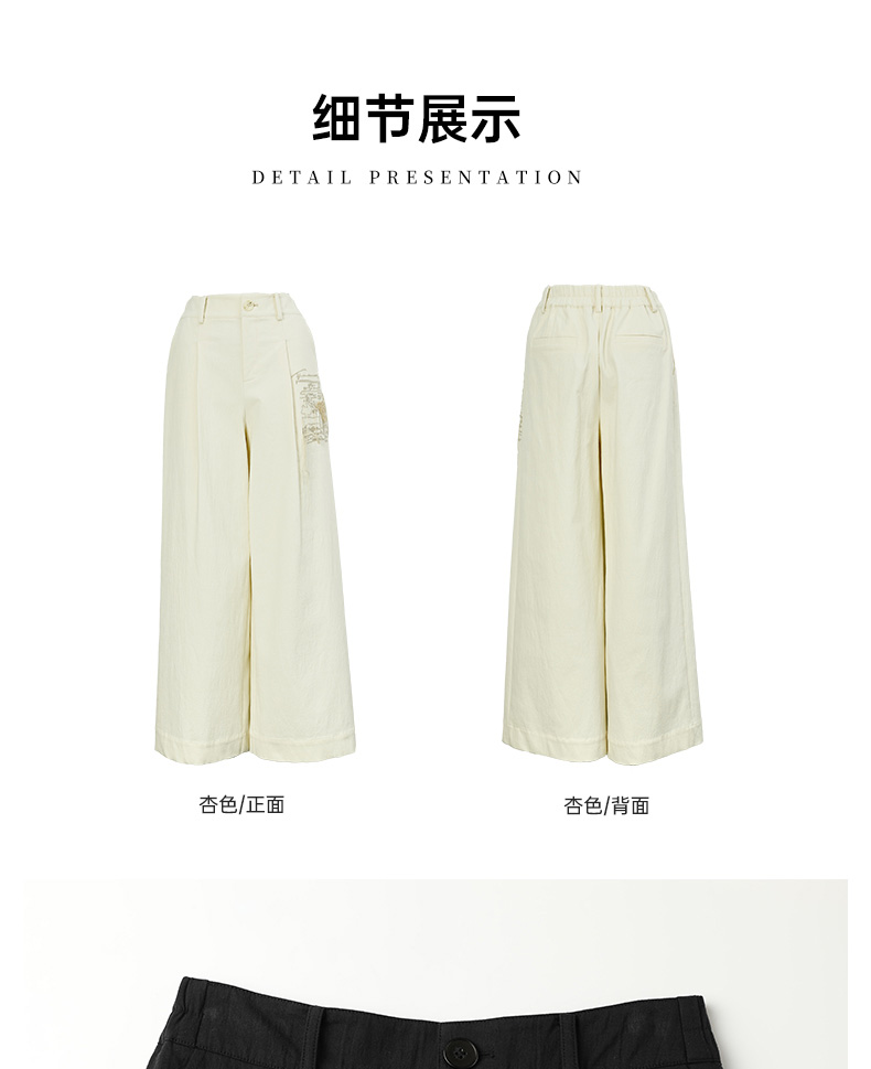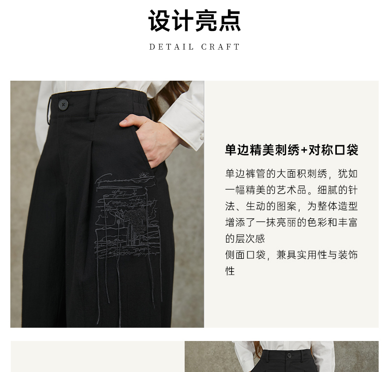 Famecoco范可儿天丝棉宽松阔腿裤立体绣花肌理感长裤FAC6GA015