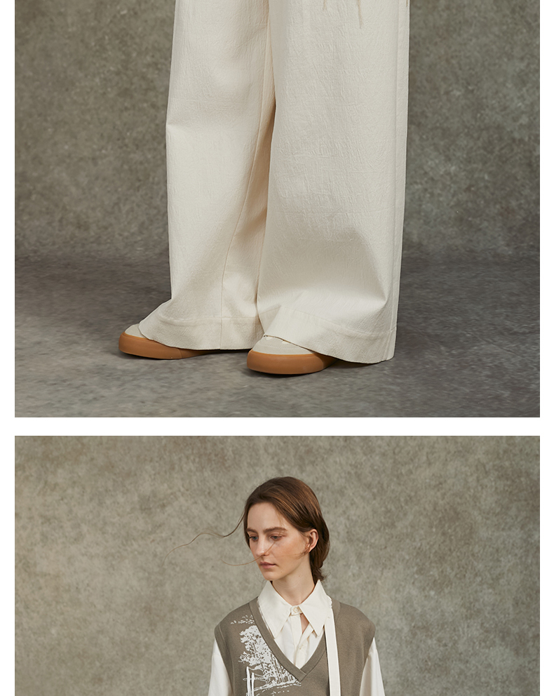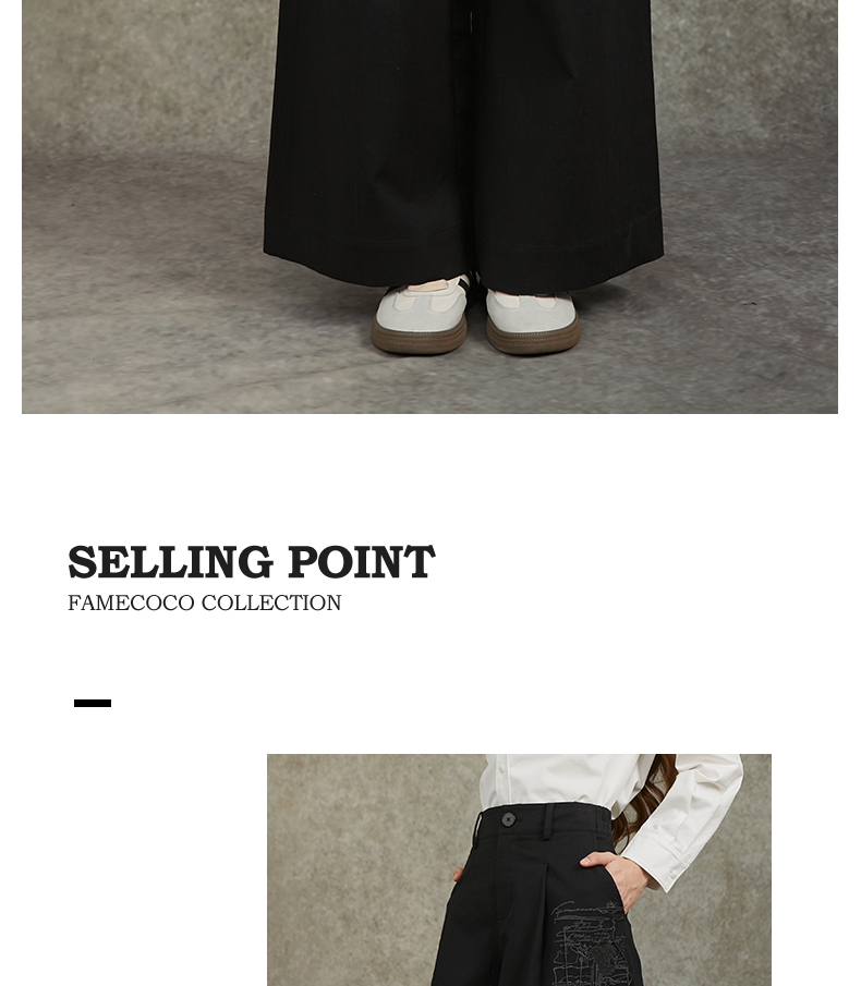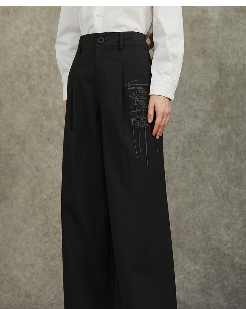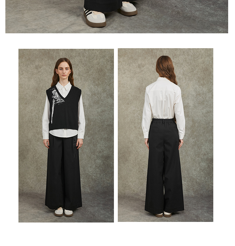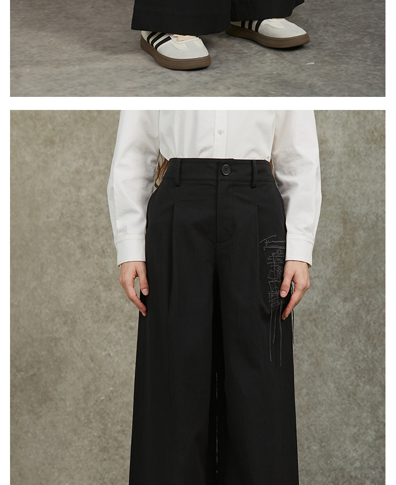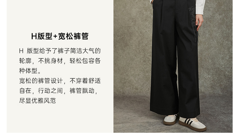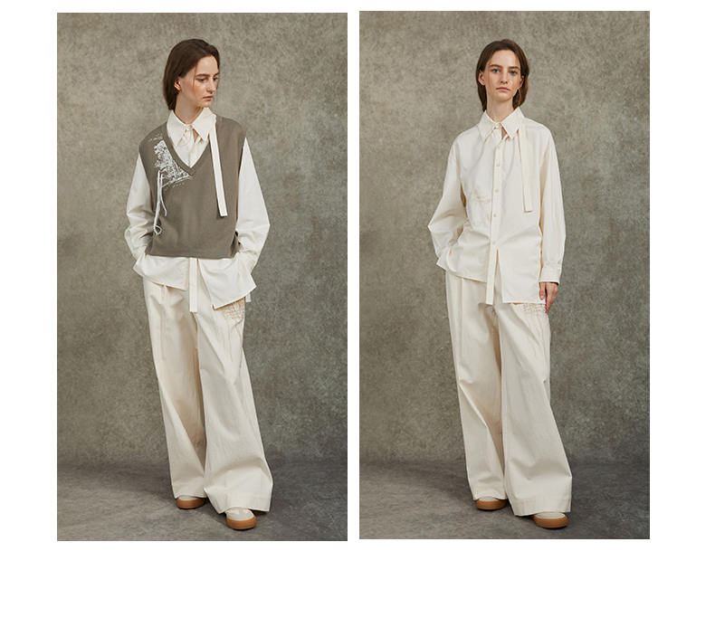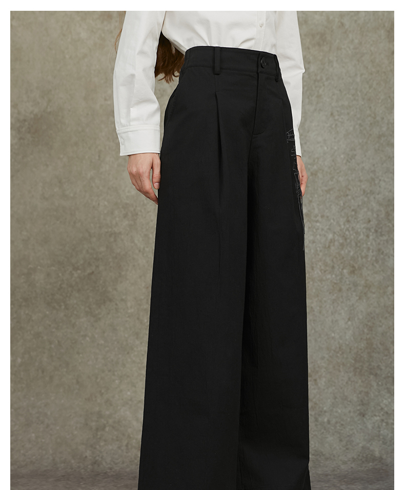 Famecoco范可儿天丝棉宽松阔腿裤立体绣花肌理感长裤FAC6GA015