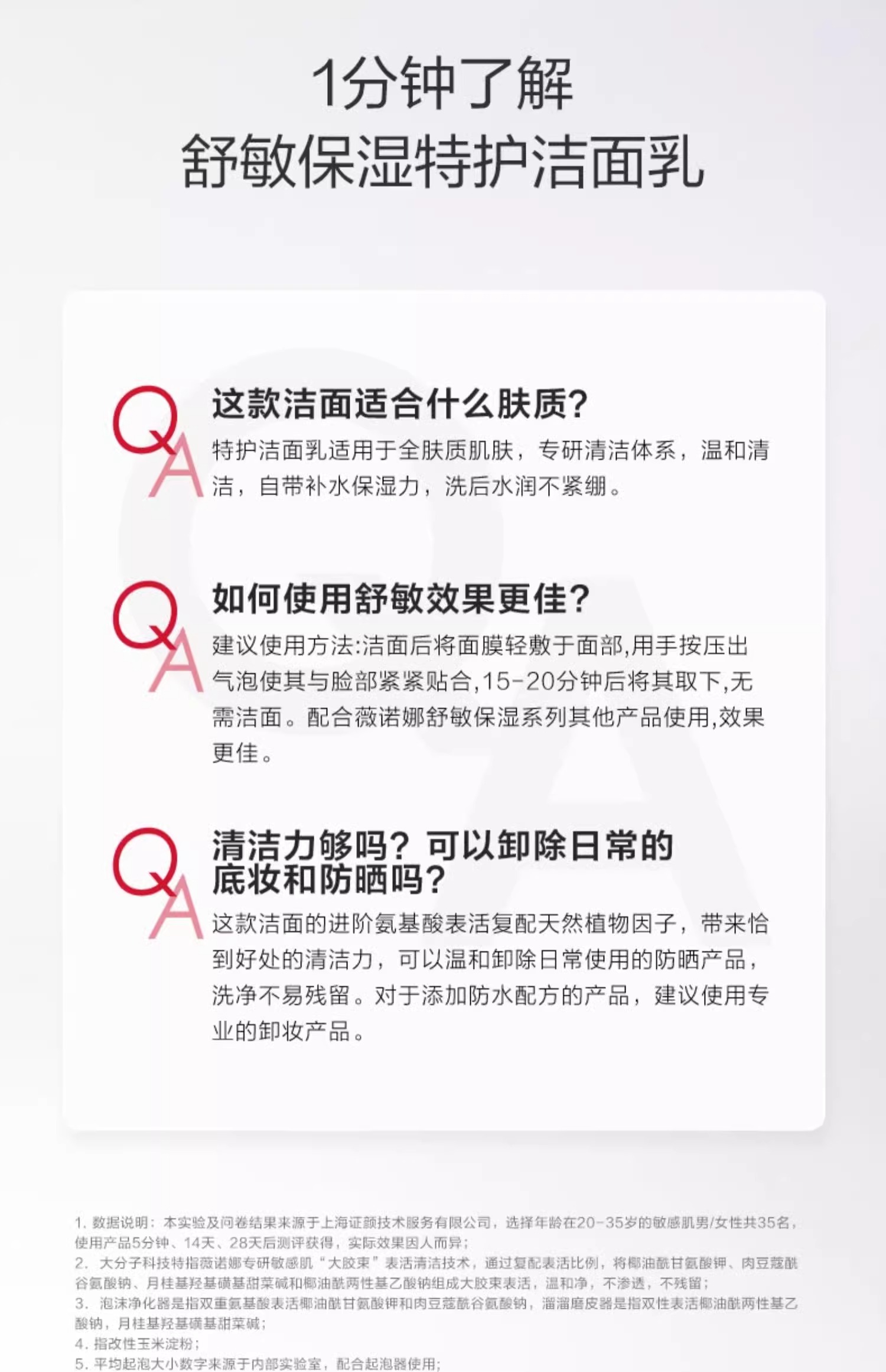 薇诺娜舒敏保湿特护洁面乳100g/支【舒敏洁面升级款】